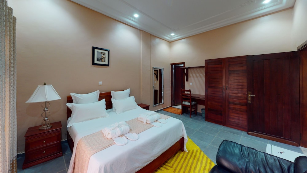 A fancy lobby with a sign outside saying 4 stars - but it was in a half built building with the rooms in other buildings on that street. Wifi not working - they were reluctant to give us the password. Hot water ran out before the end of our showers, and the water from the shower flowed into the room. There was also water on the room floor coming from the windows. No real restaurant although the chef was happy to help and we had a good dinner. But the next morning the breakfast was very expensive and we were told that the price of the breakfast varied depending on what building we were staying in and we were in an expensive building