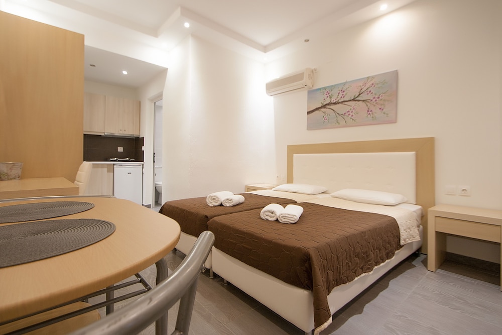 Feel at home in air-conditioned rooms with kitchenettes and private balconies. Entertainment options include 32-inch flat-screen TVs with satellite programming.