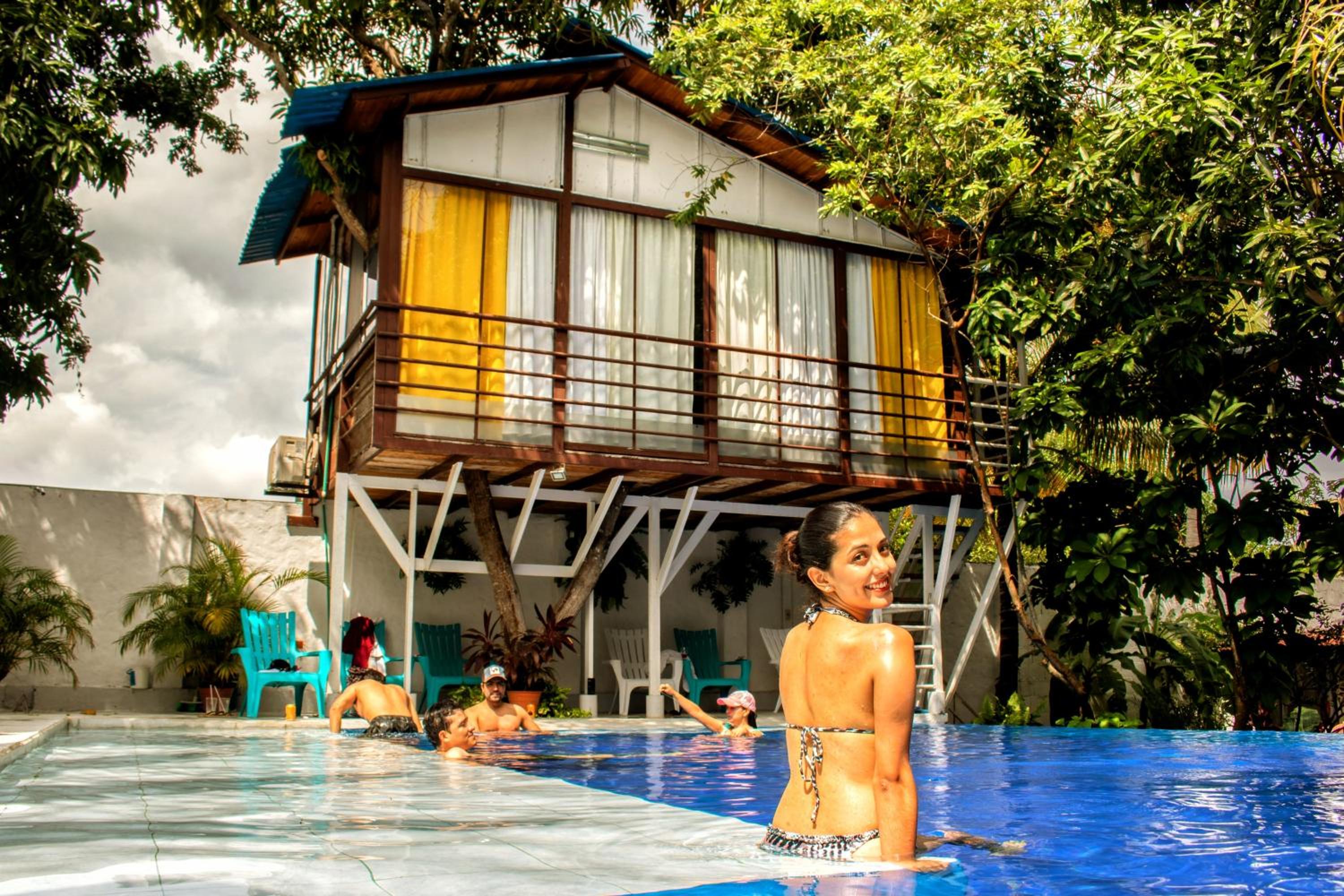 El lugar fue construido respetando los árboles que estaban, hay mucha naturaleza, es tranquilo, agradable, limpio. Cama cómoda, piscina grande y limpia; desayuno rico, personal amable. A 5 min caminando del puente Navarro.