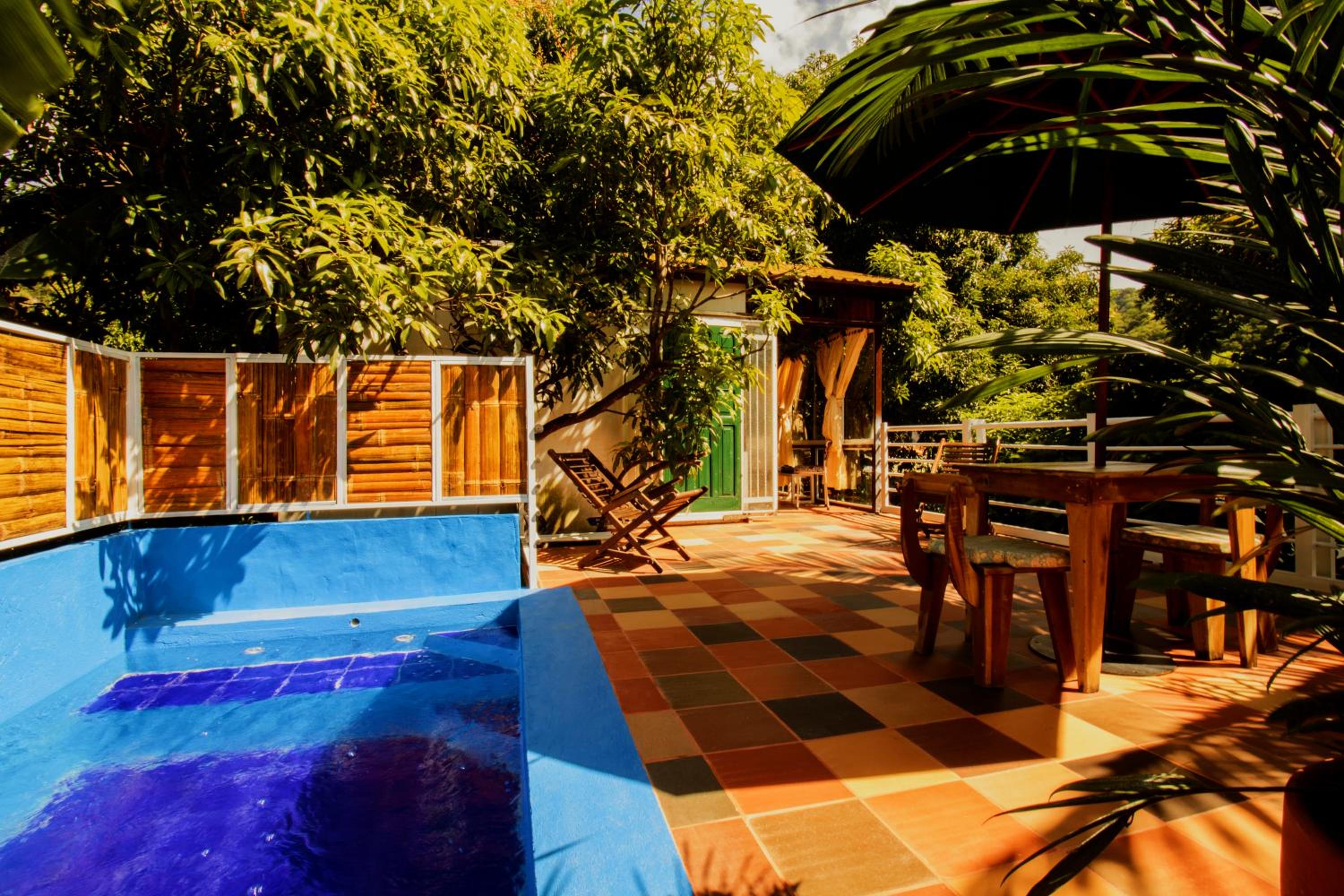 El espacio al aire libre dentro del hotel es muy bonito y acogedor. Mucha vegetación y pajaritos. Los árboles ofrecen un espacio muy fresco a pesar de las fuertes temperaturas. También me gusto mucho el trato de los propietarios