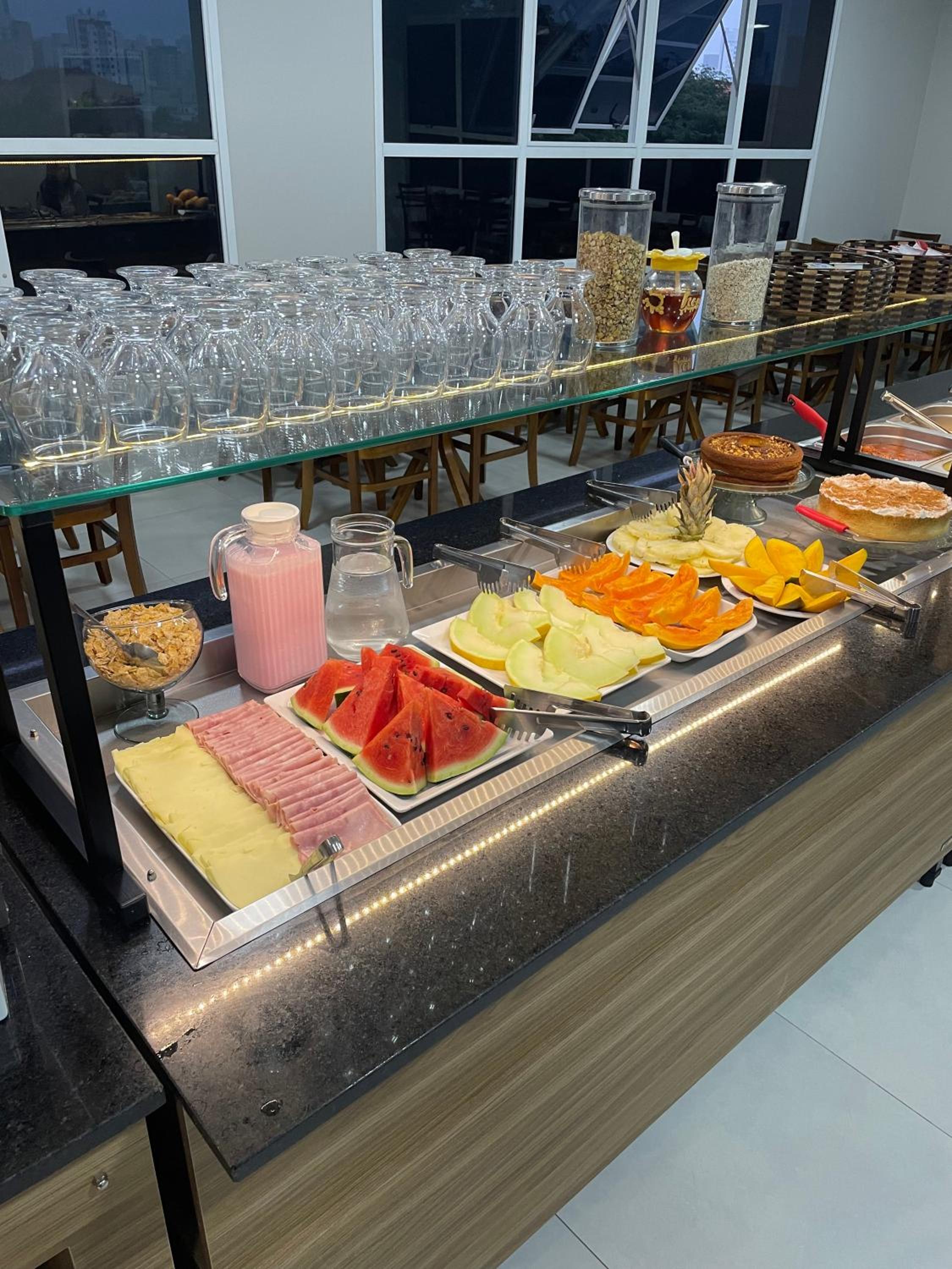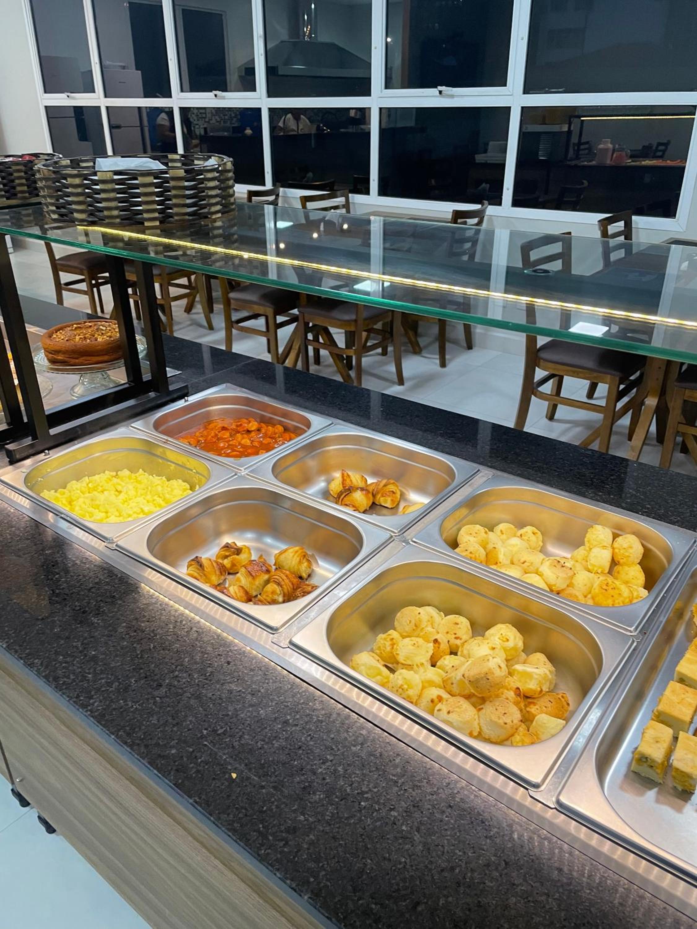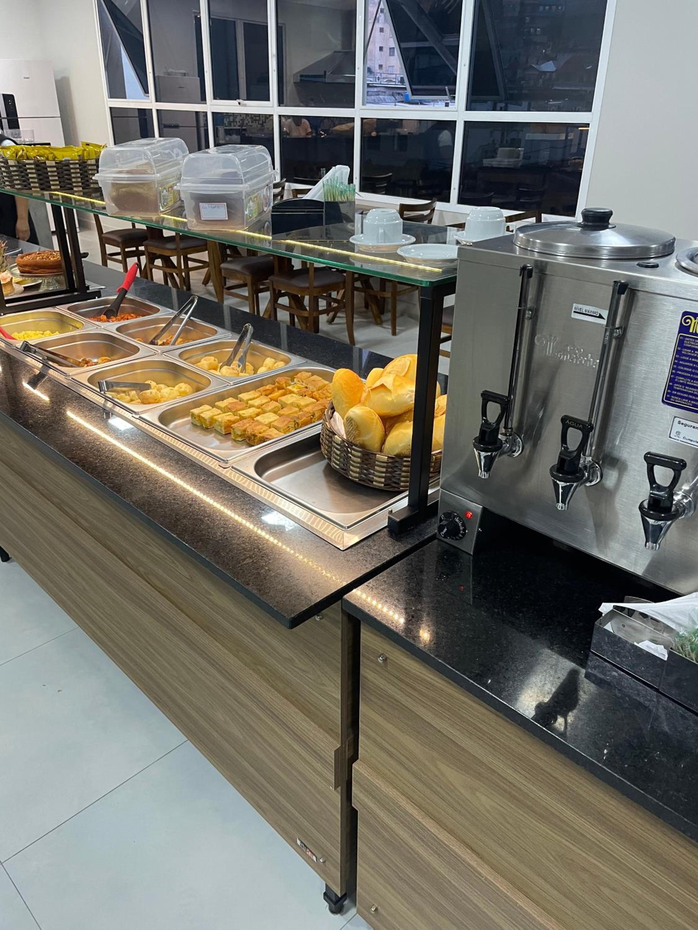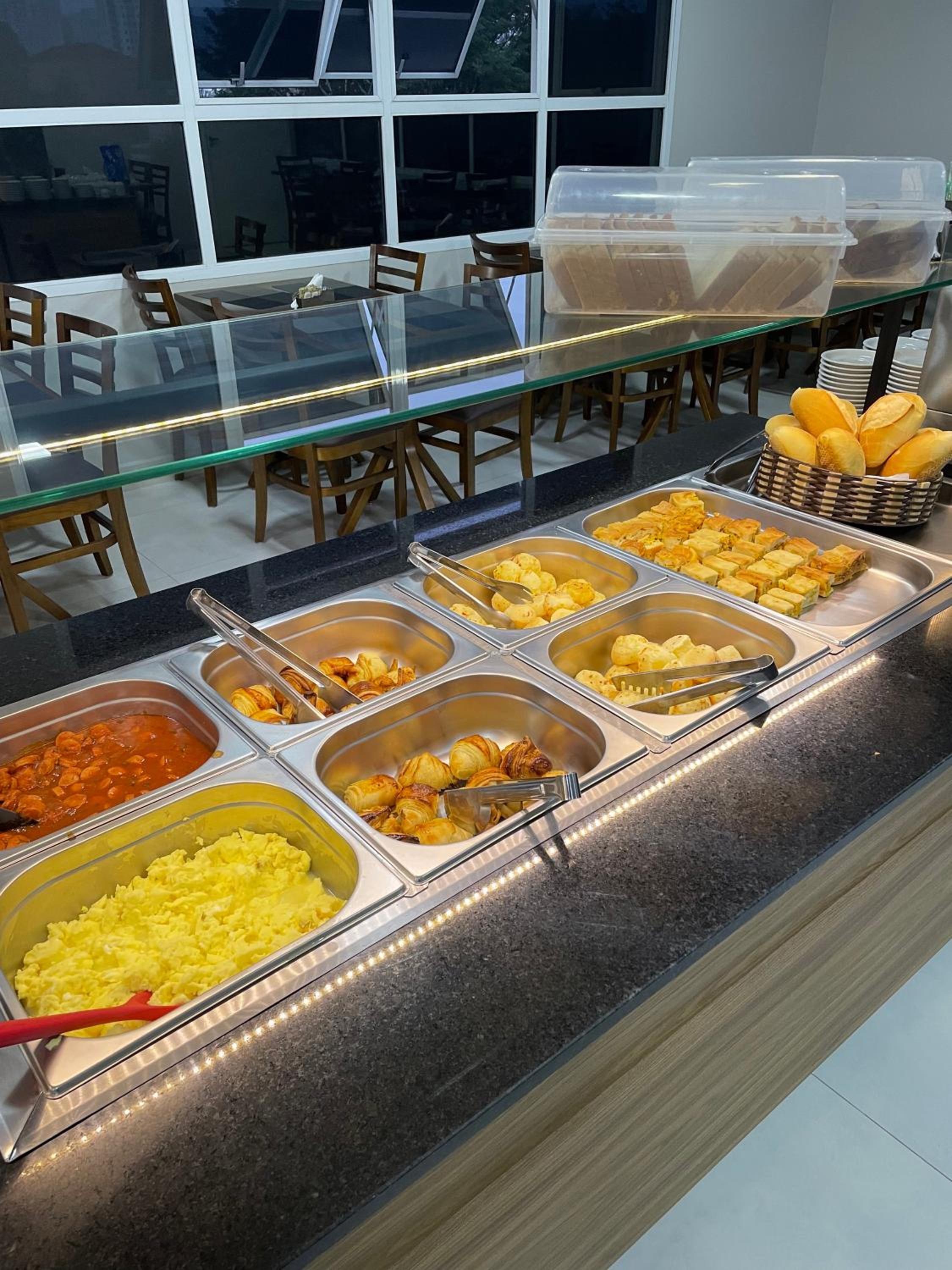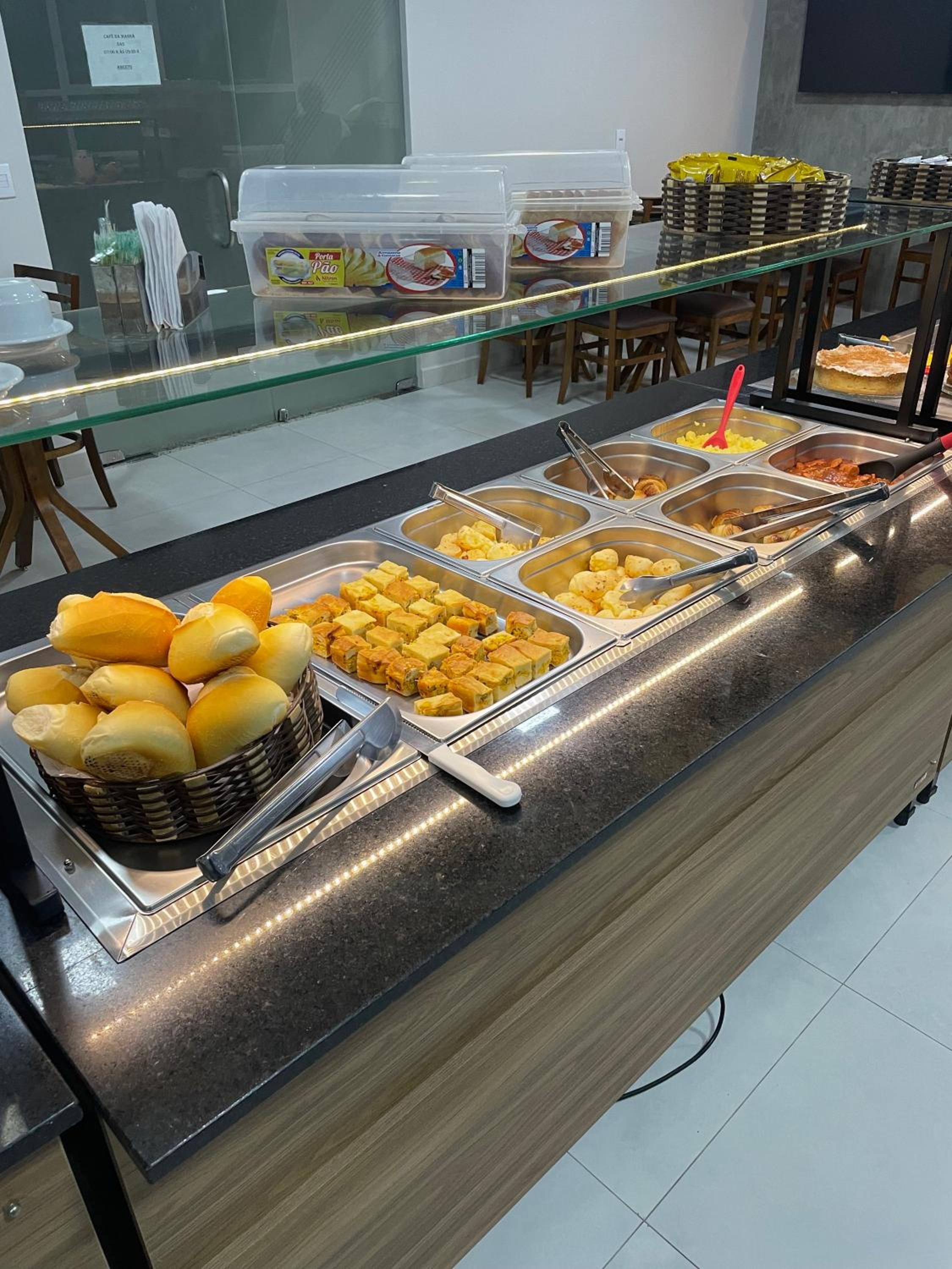 Horário do café da manhã podia ser mais extenso (vai até 9h30) e ter mais opções de comidas e bebidas.