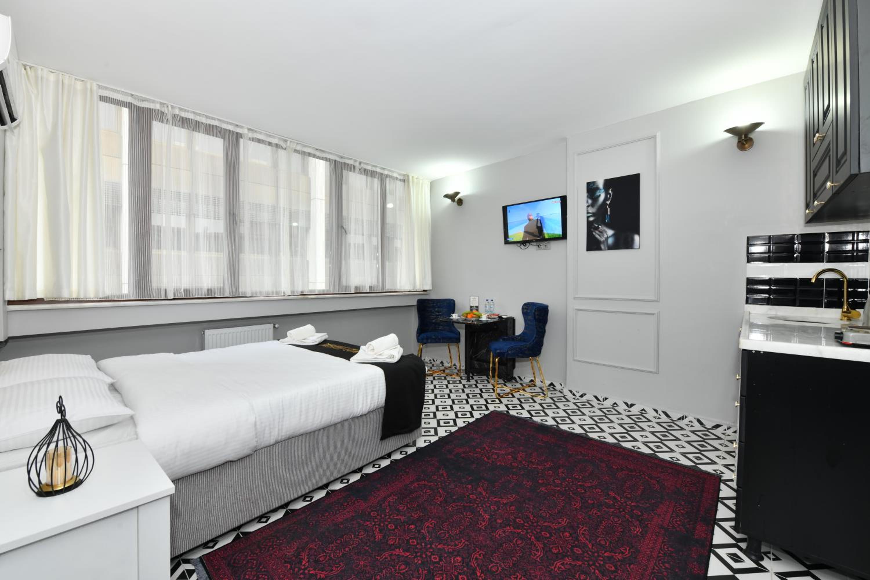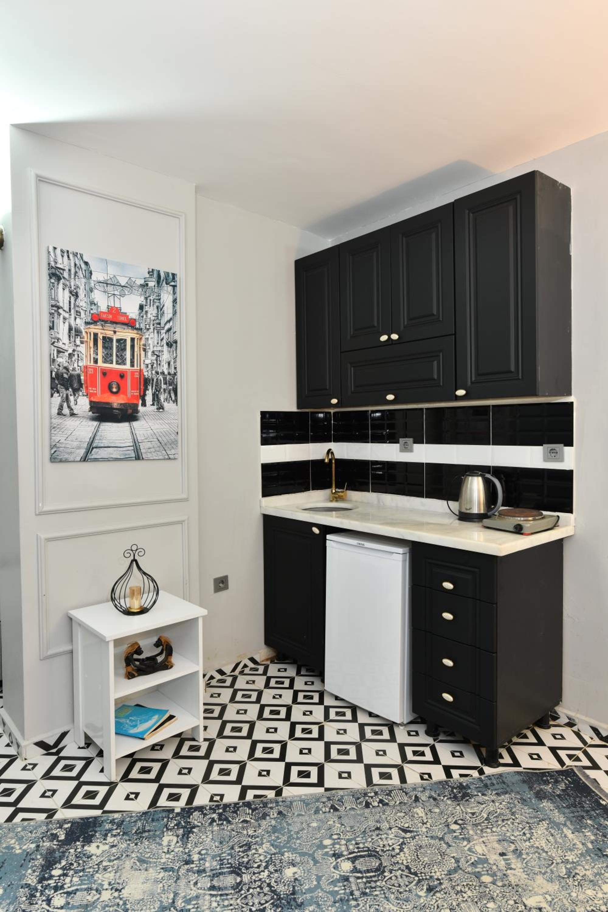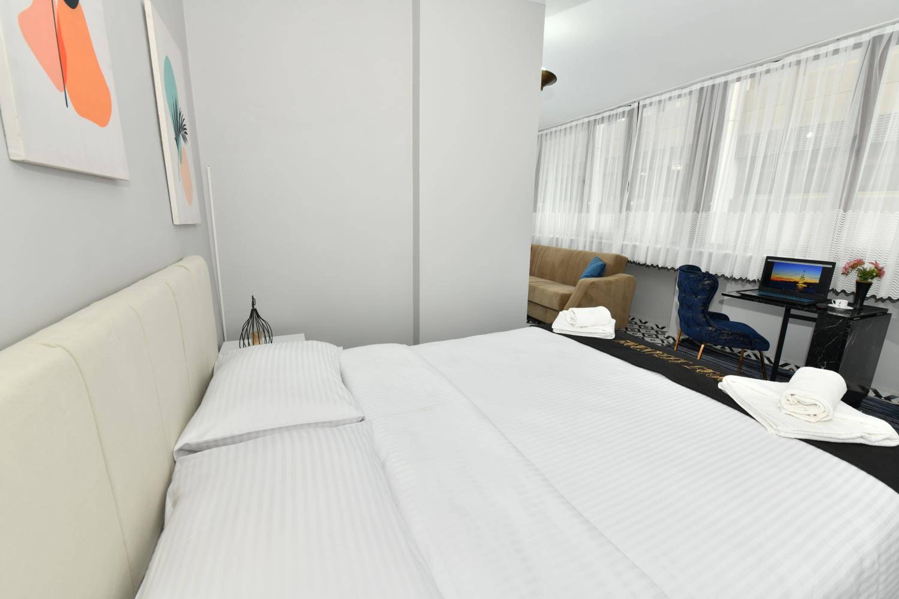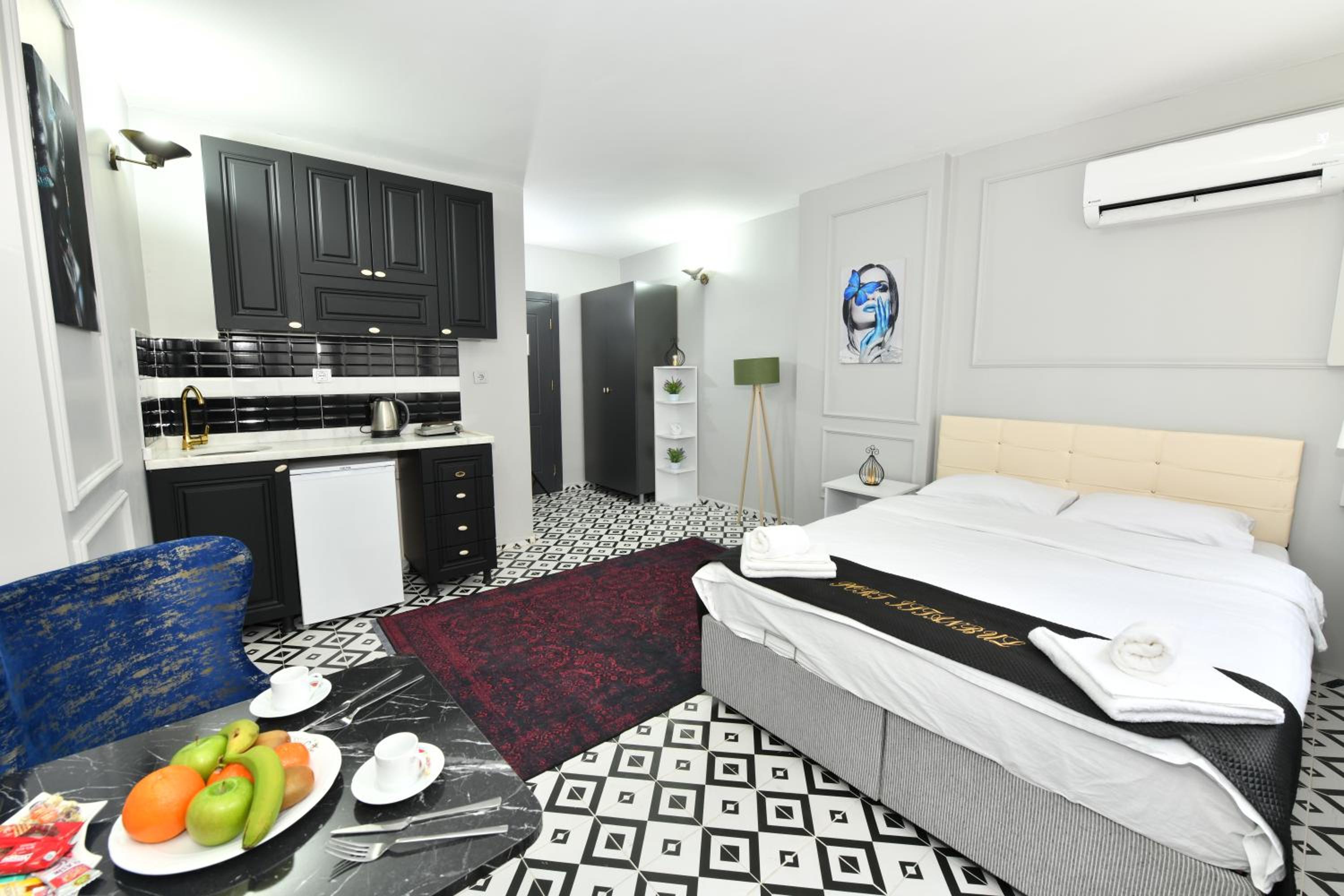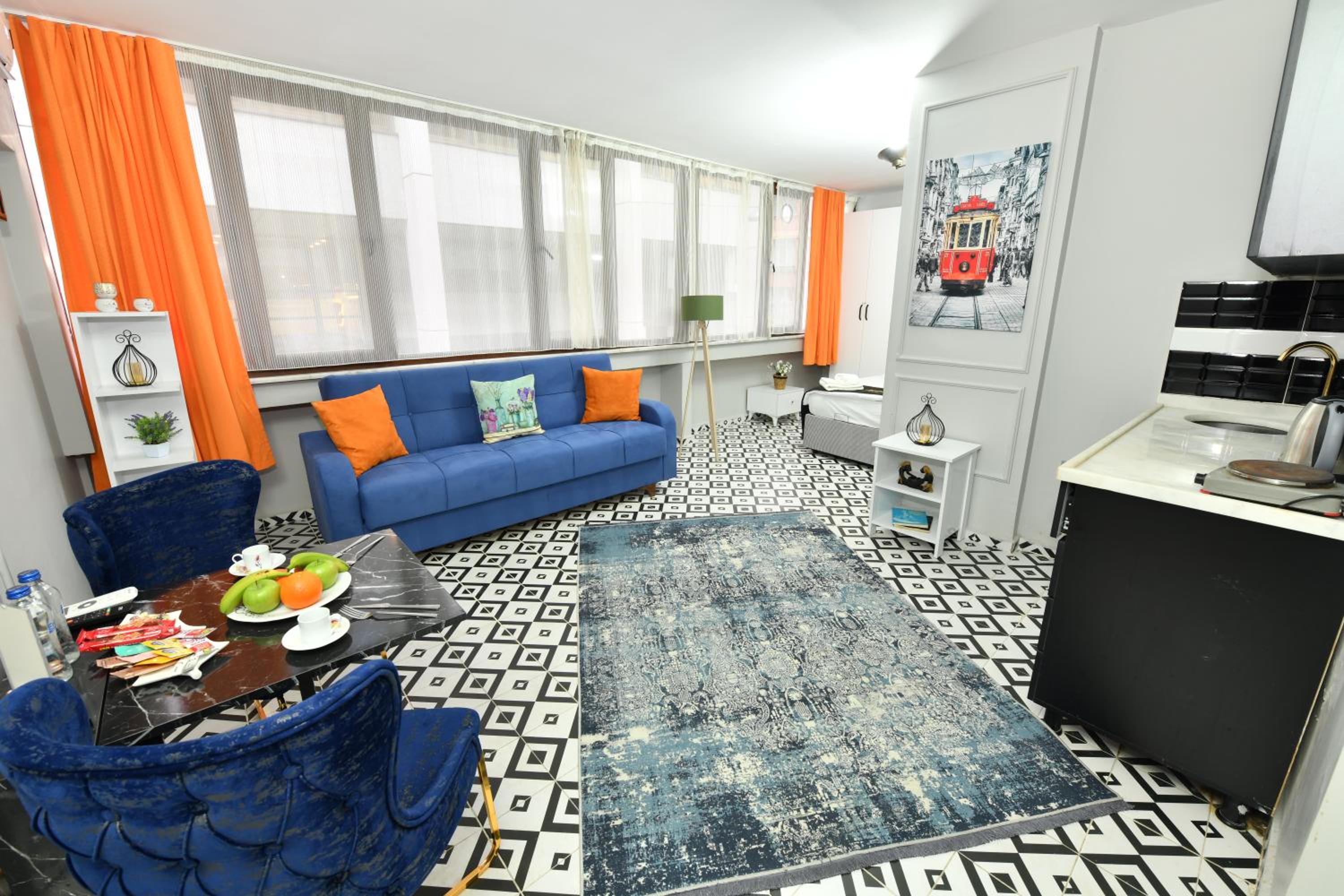 Ubicación, tiene cocina y muy cerca de un supermercado. El espacio es cómodo y muy cerca de Galataport