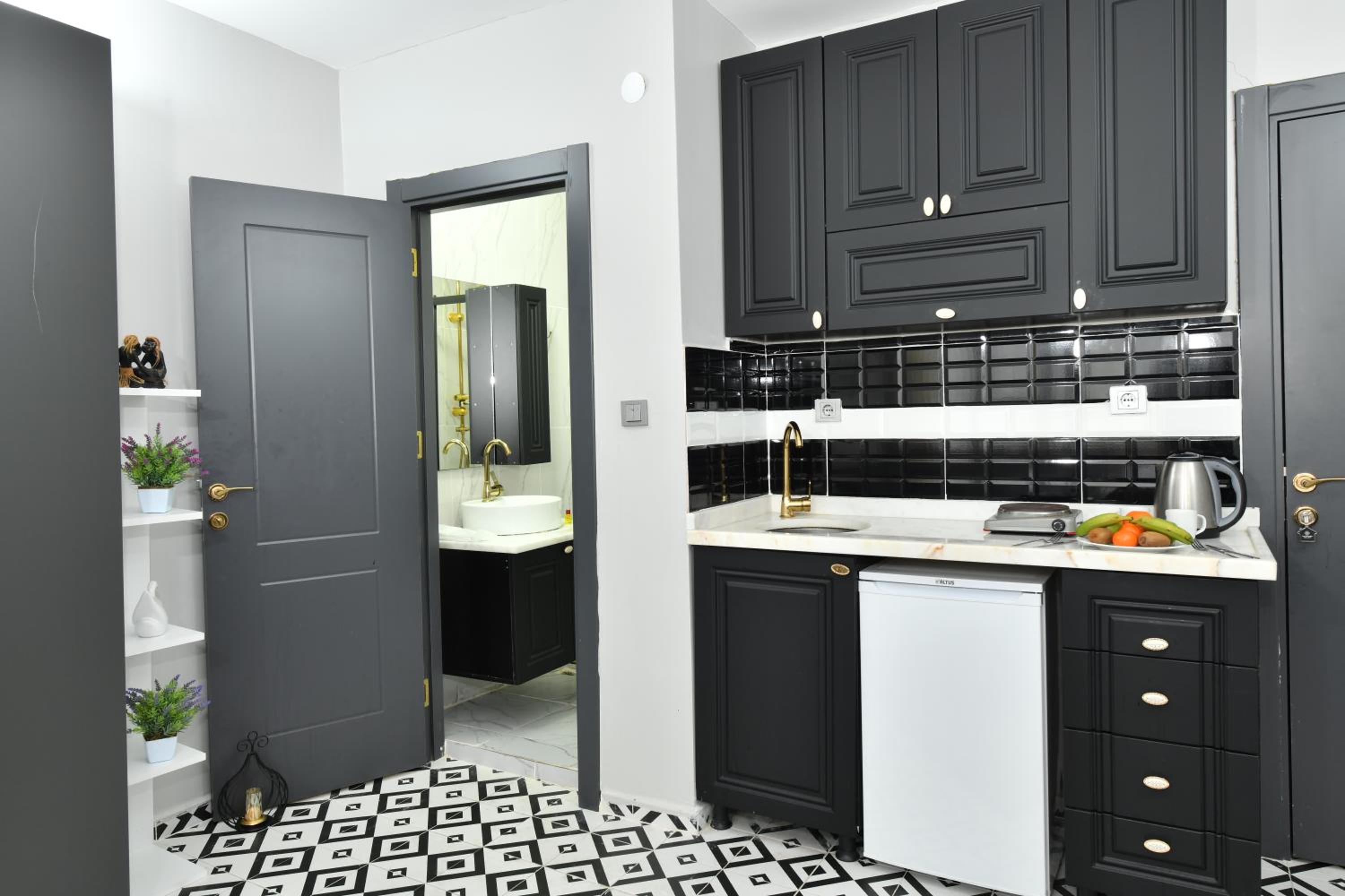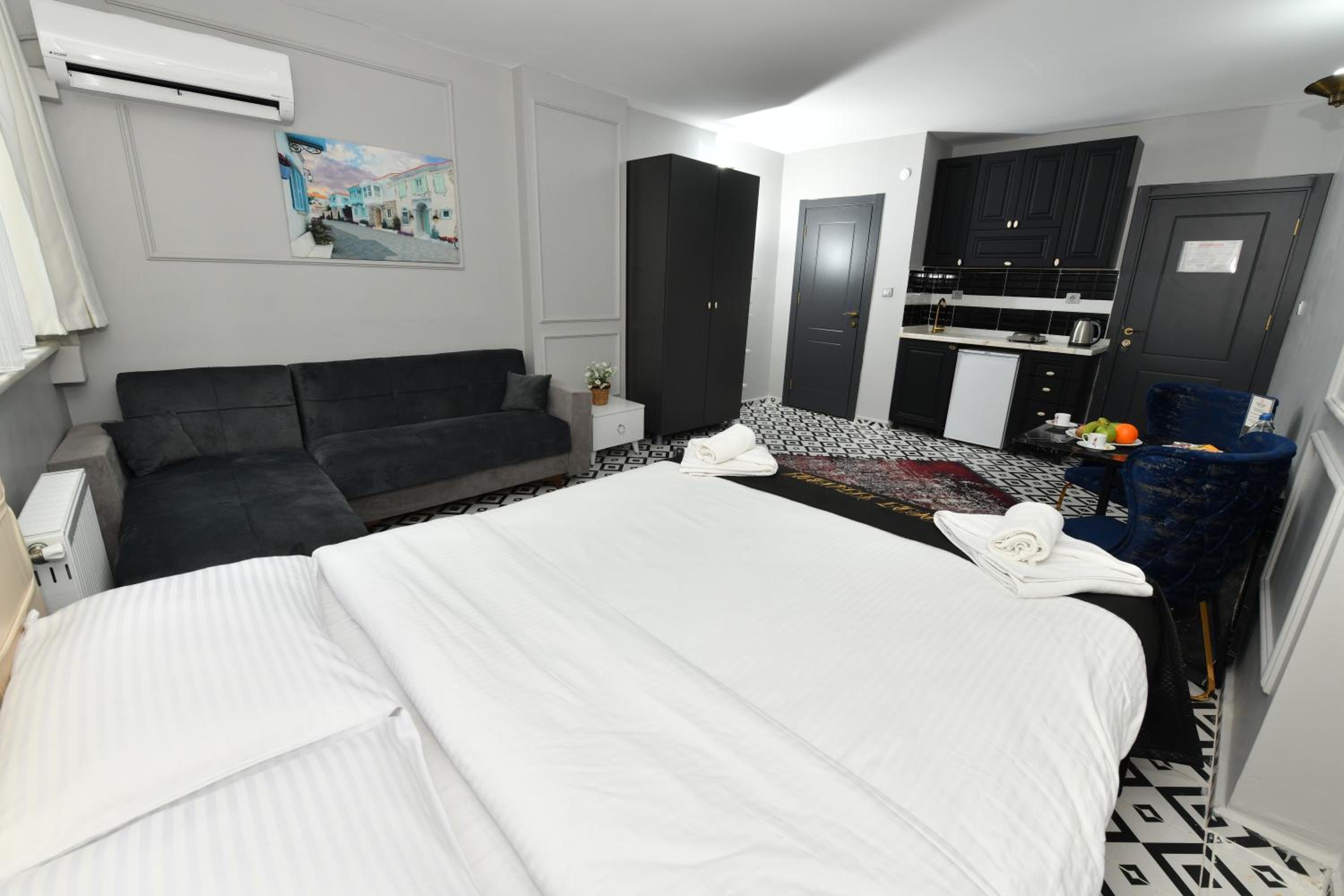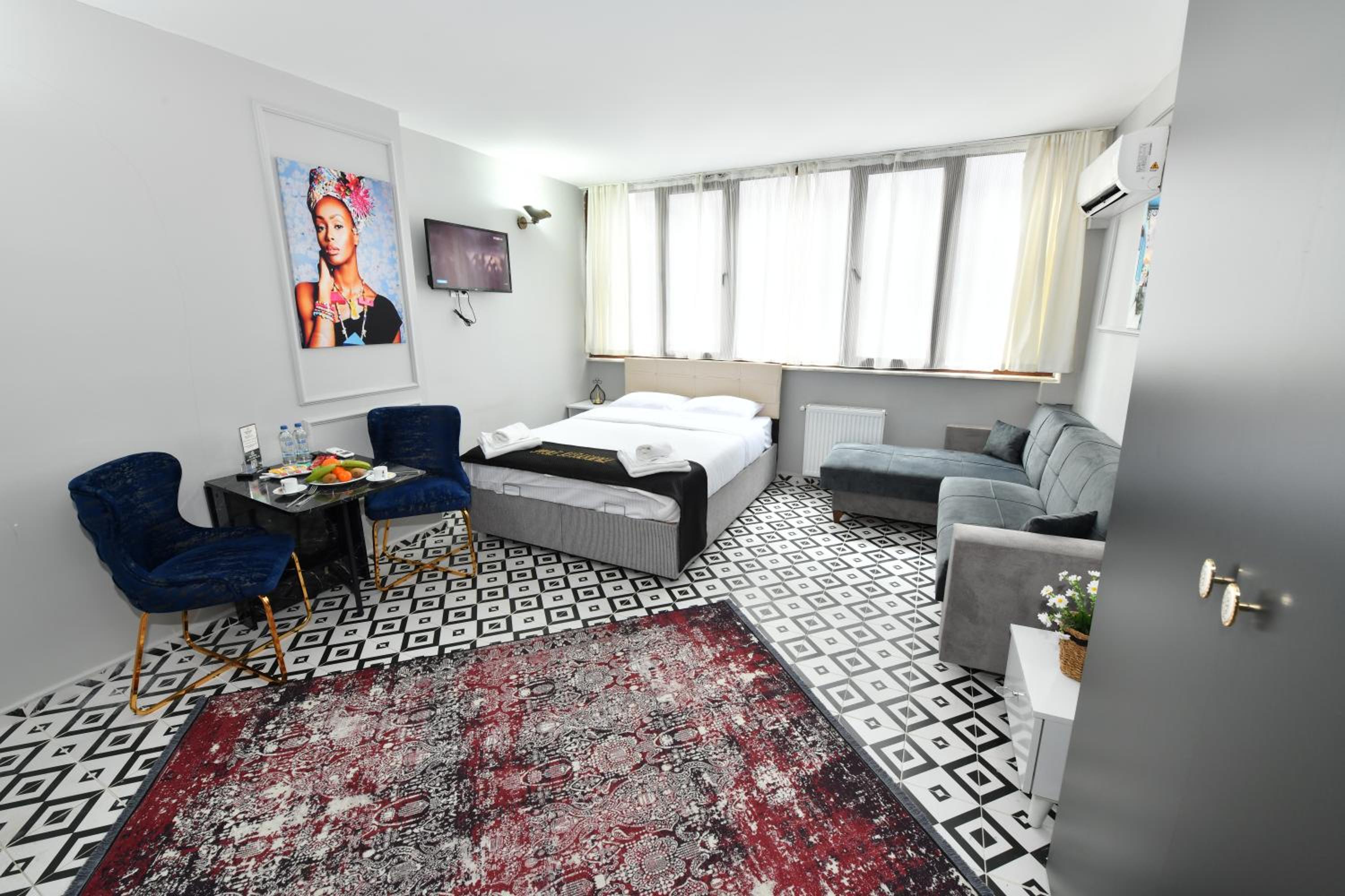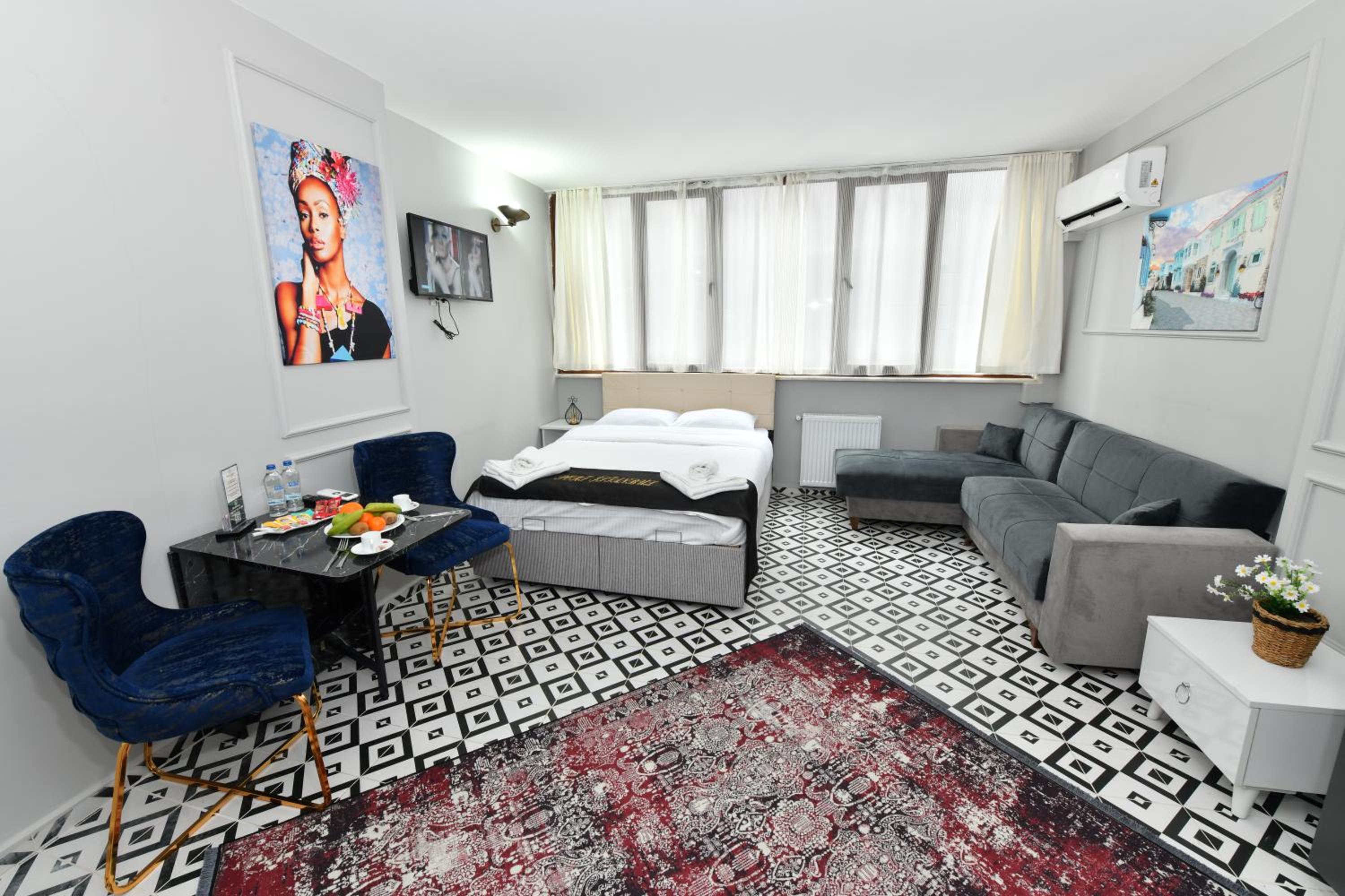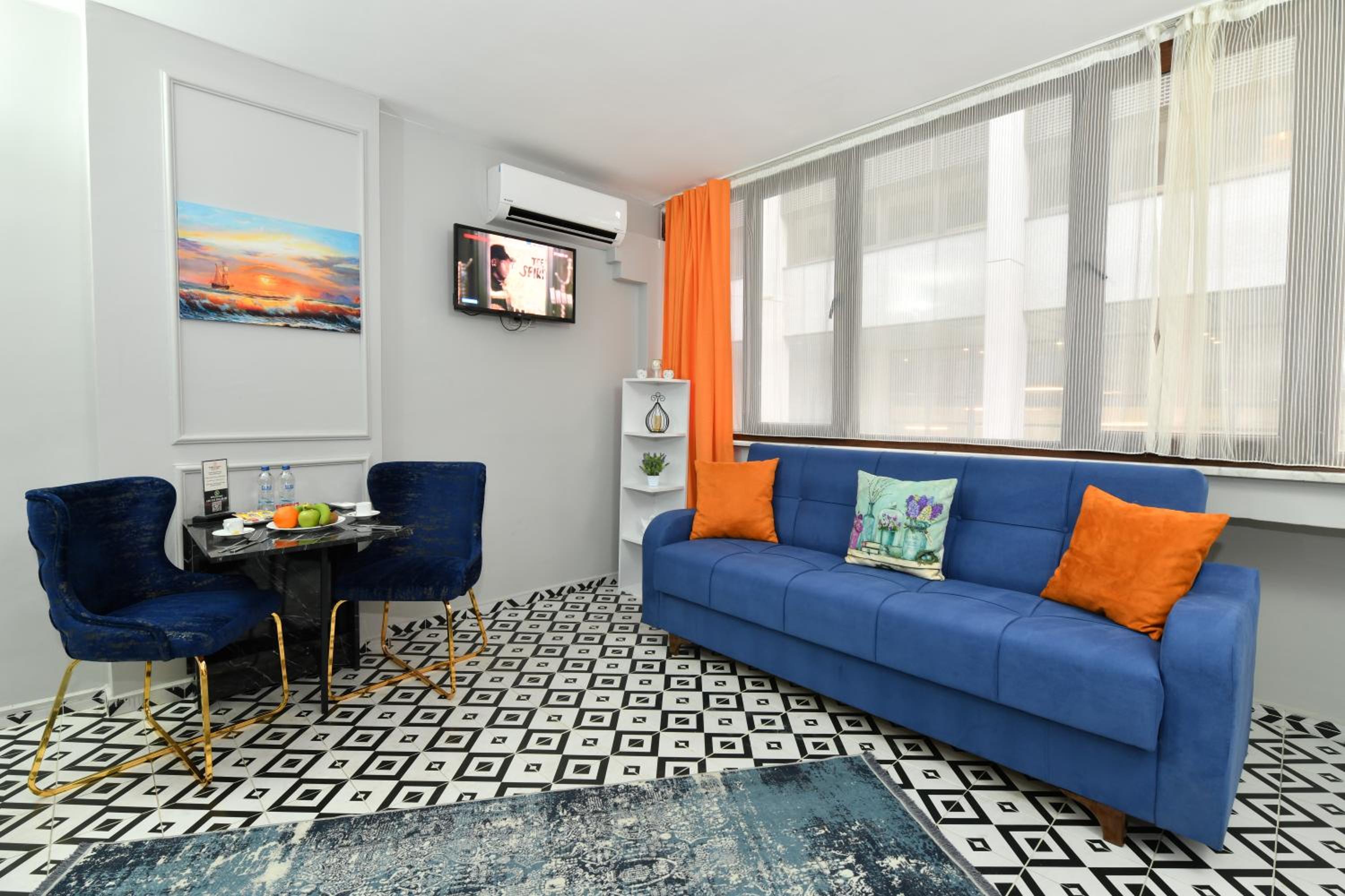 Ubicación, tiene cocina y muy cerca de un supermercado. El espacio es cómodo y muy cerca de Galataport