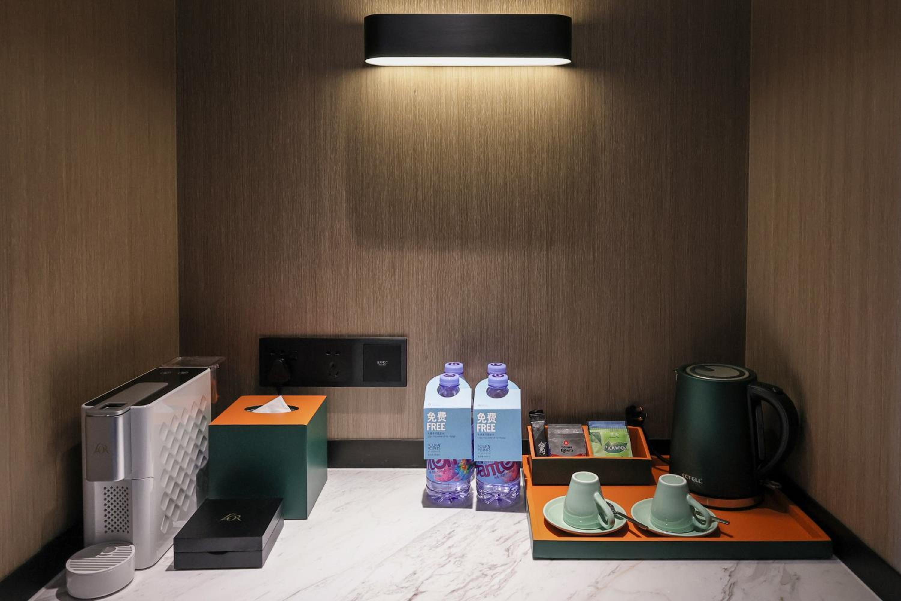 前枱職員有禮貌。房間舒適清潔,唯一處睡房燈光只有全関或局部関,若全関時連同地櫃感應燈都関掉,如果可以改善保留感應燈,不在全関範圍內就好!但整體滿意!