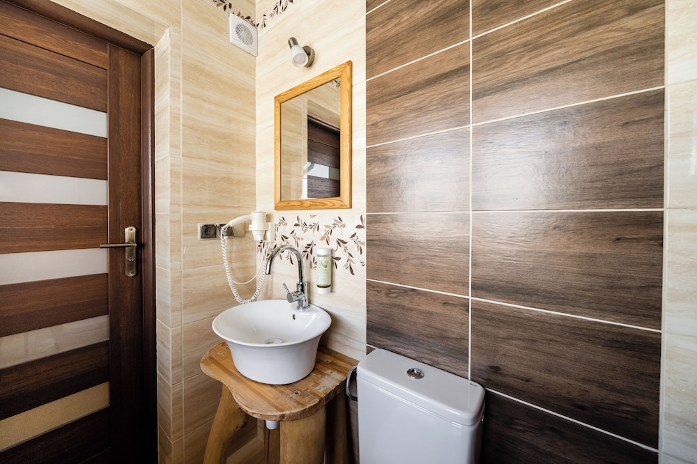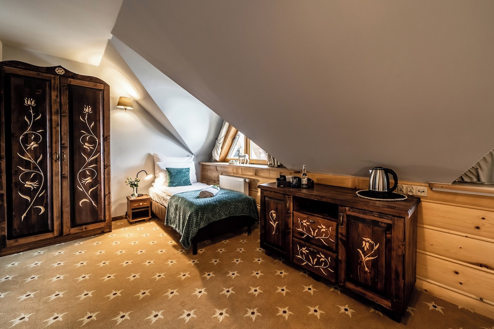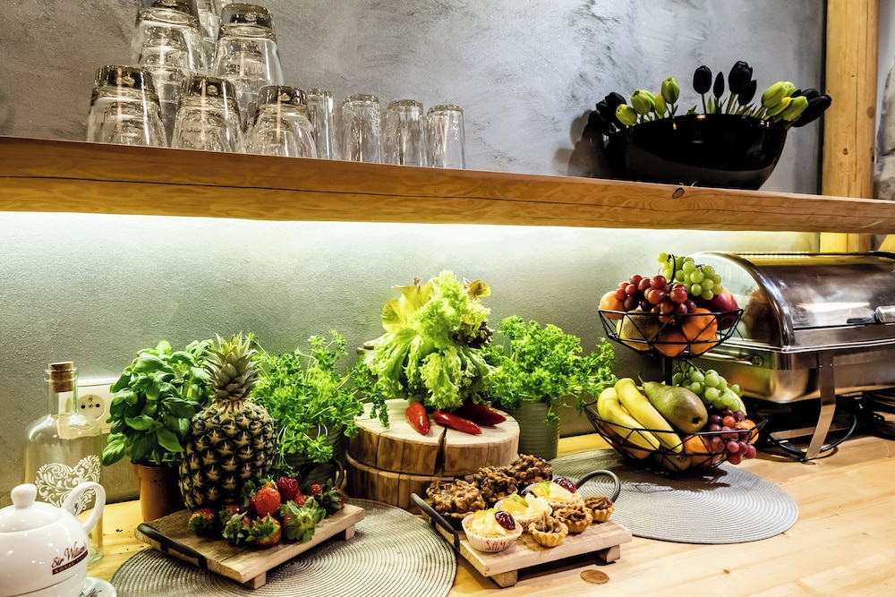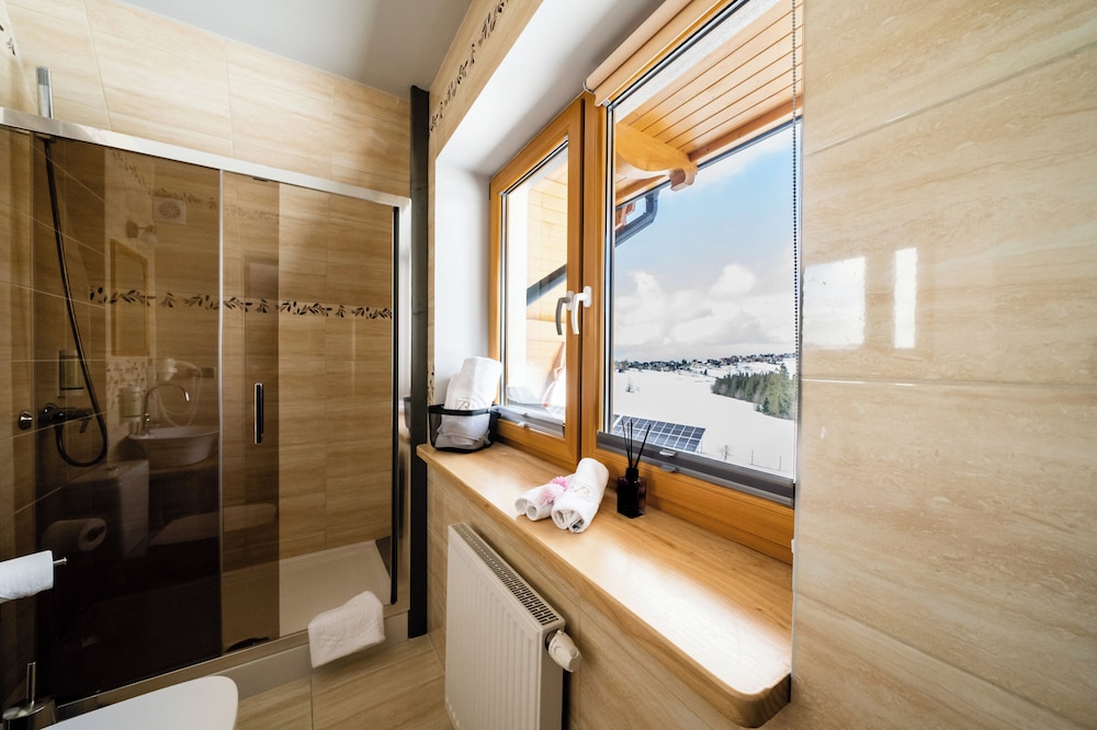 Hotel wygląda na nowy. Bardzo miła obsługa, śniadania bardzo dobre. Czysto. Jest sala z bilardem, barek i leżanki do odpoczynku. Jest też zewnętrzna sauna ale nie korzystaliśmy. Dają kupony zniżkowe do kanjpy i term. Jest też narciarnia z suszarką do butów. Korzystaliśmy, super.