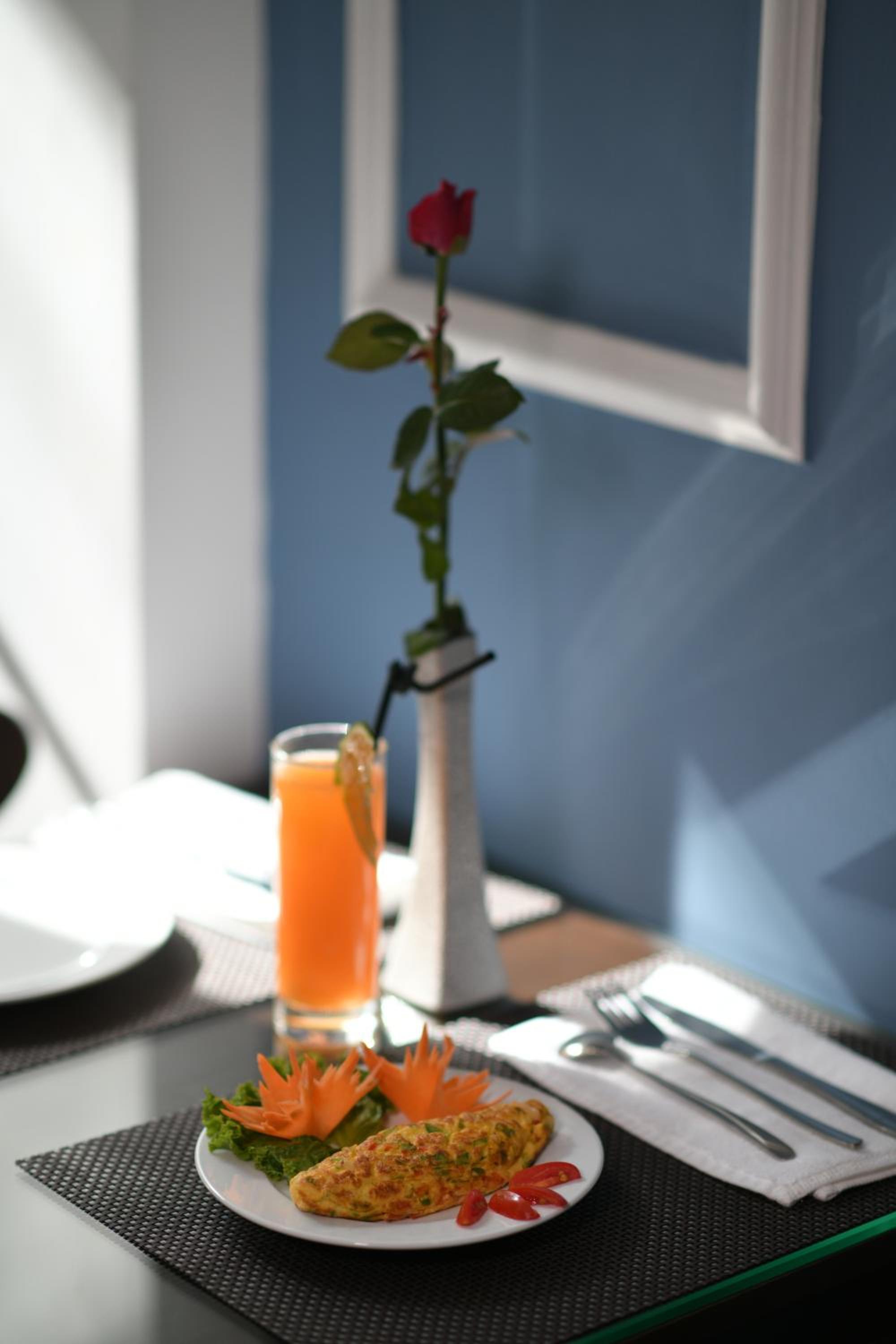 Experience comfort and convenience in our air-conditioned rooms equipped with modern amenities such as a flat-screen TV, safety deposit box, and a private bathroom. Enjoy a restful night's sleep and wake up to a delicious breakfast with various options to choose from.