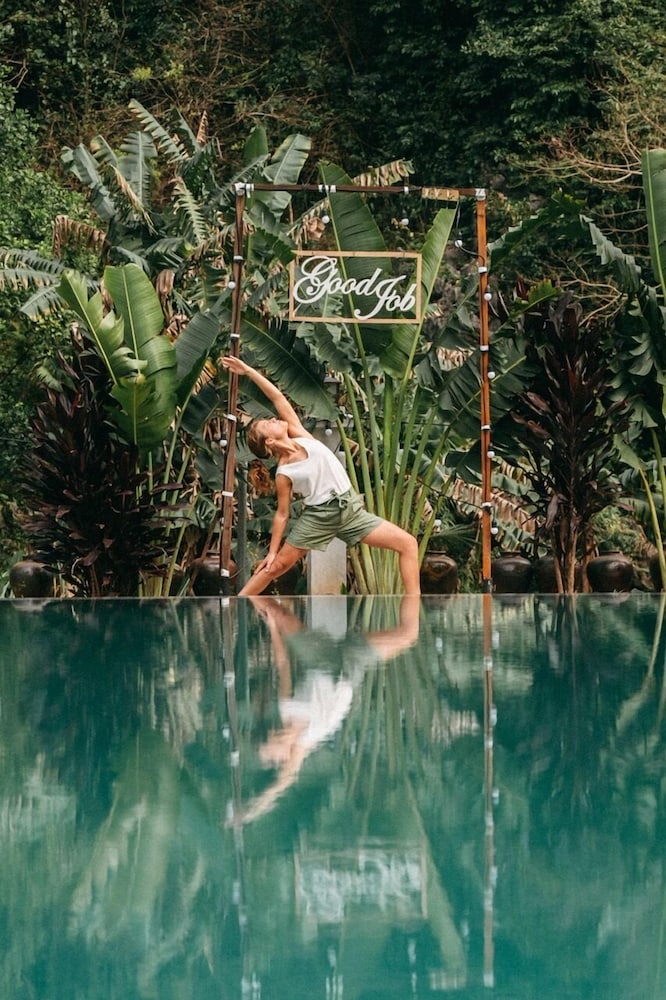 Calme, beau jardin, piscine, très bonne nourriture, très belle chambre bien équipée.