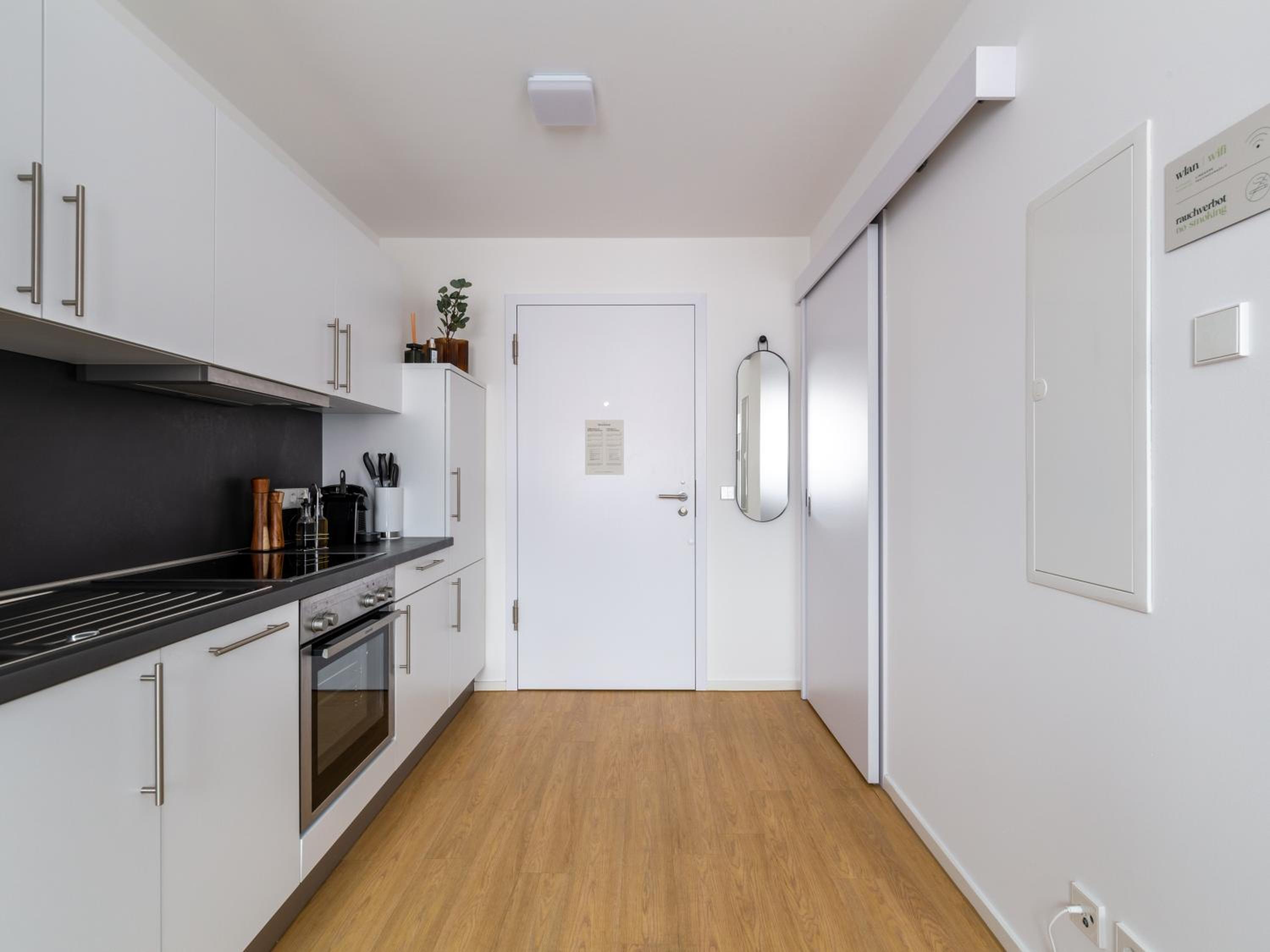 Toll ausgestattete Küche. Sehr sauber. Parkplatz nicht weit entfernt vor dem Mühlenbäcker und Bahnhof für 6€ je 24 Stunden.