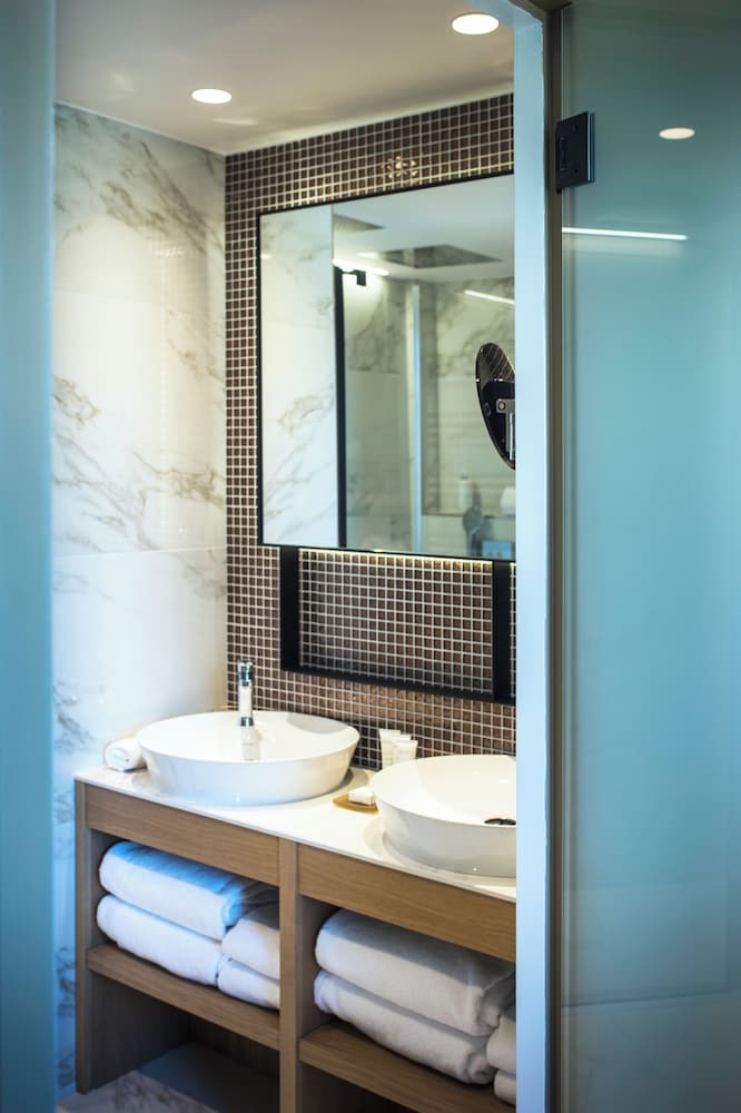 Everything: location, room, bathroom, spacious Apartment, wonderful boulangerie on ground floor, all facilities close, the modern buildings sorounfing the hotel, perfect stay. Looking forward to get back. Very rare in France to find such a Perfect combination, modern structure with no bath tub for reasonable pricing