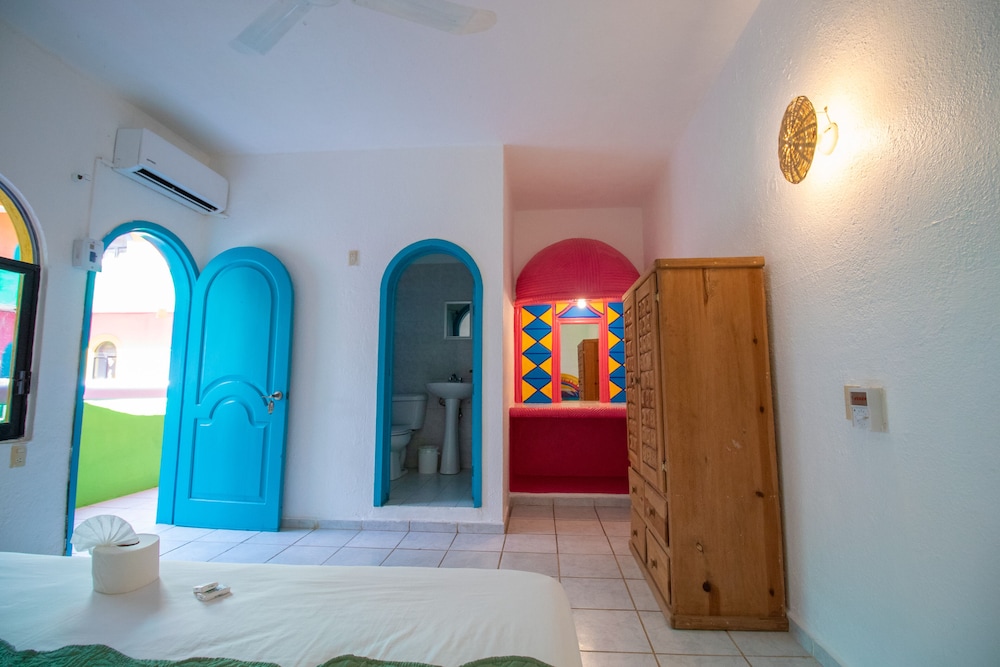 I wanted to like this property and was optimistic when I interacted with staff at check in. The outside and courtyard of the hotel were a cool vibe and beautifully colorful. The rooms were the reason that my friend and I turned around and rebooked at a different hotel without even staying a night. There is a lot of wear and tear within the rooms. There are visible holes and cracks in windows and the doors. There was already a mosquito in my room when I got there. The beach down the street was really pretty but we were looking for a little more happening spot and there wasn't much around.