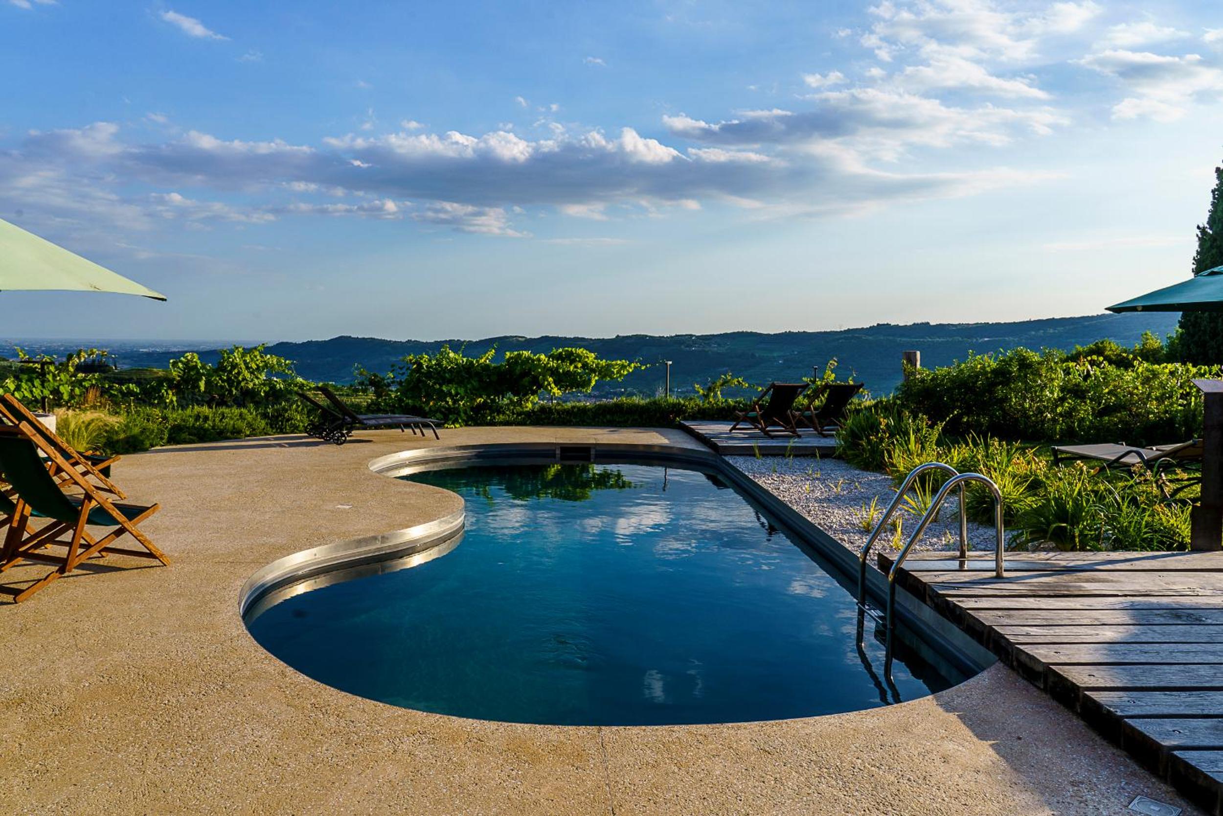 Enjoy the outdoor swimming pool and terrace, perfect for unwinding and soaking in the picturesque views of the surrounding hills.