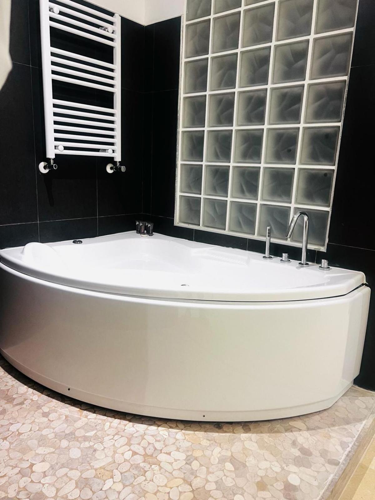 Baignoire avec jets dans la salle de bain.
