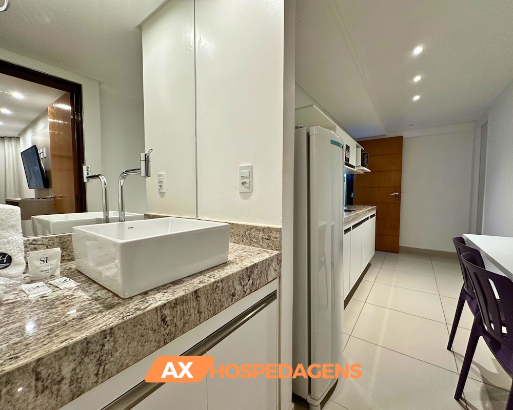 O Flat gold é incrível, atendimento excelente da recepção, o quarto que fiquei foi o 109 e foi maravilhoso, eu amei o quarto, e a acomodação, tem geladeira, cafeteira, sanduícheira, microondas, prato, copos e talheres também. 2 quartos e os dois com ar condicionado, banheiro maravilhoso, com agua morna. Espaço incrível do flat com armarios, os quartos com TV. A unica coisa que deixou a desejar foi o wifi pra quem for e precisa de um momento pra trabalhar e usar o wifi é ruim, nao pega direito. Fora isso foi incrível. A única comunicação que nao tive retorno, foi com o proprietário, pois tinha uma cadeira quebrada, avisei e ele nao deu nenhum retorno. Mas fora isso vale muito a pena, eu amei demais e super recomendo, tem estacionamento e é bem localizado tambem. Quem for não vai se arrepender, passei uma semana e foi maravilhoso.