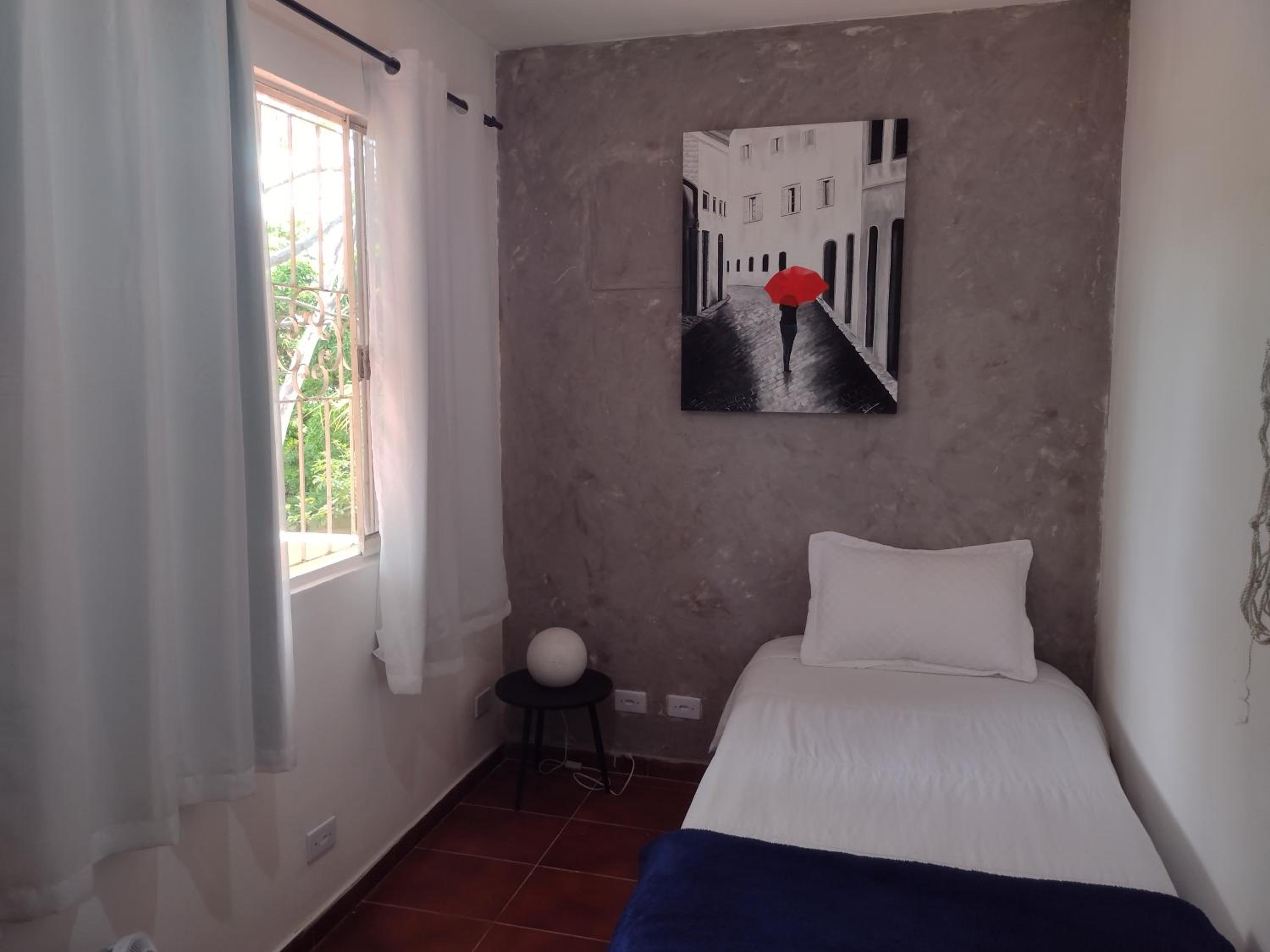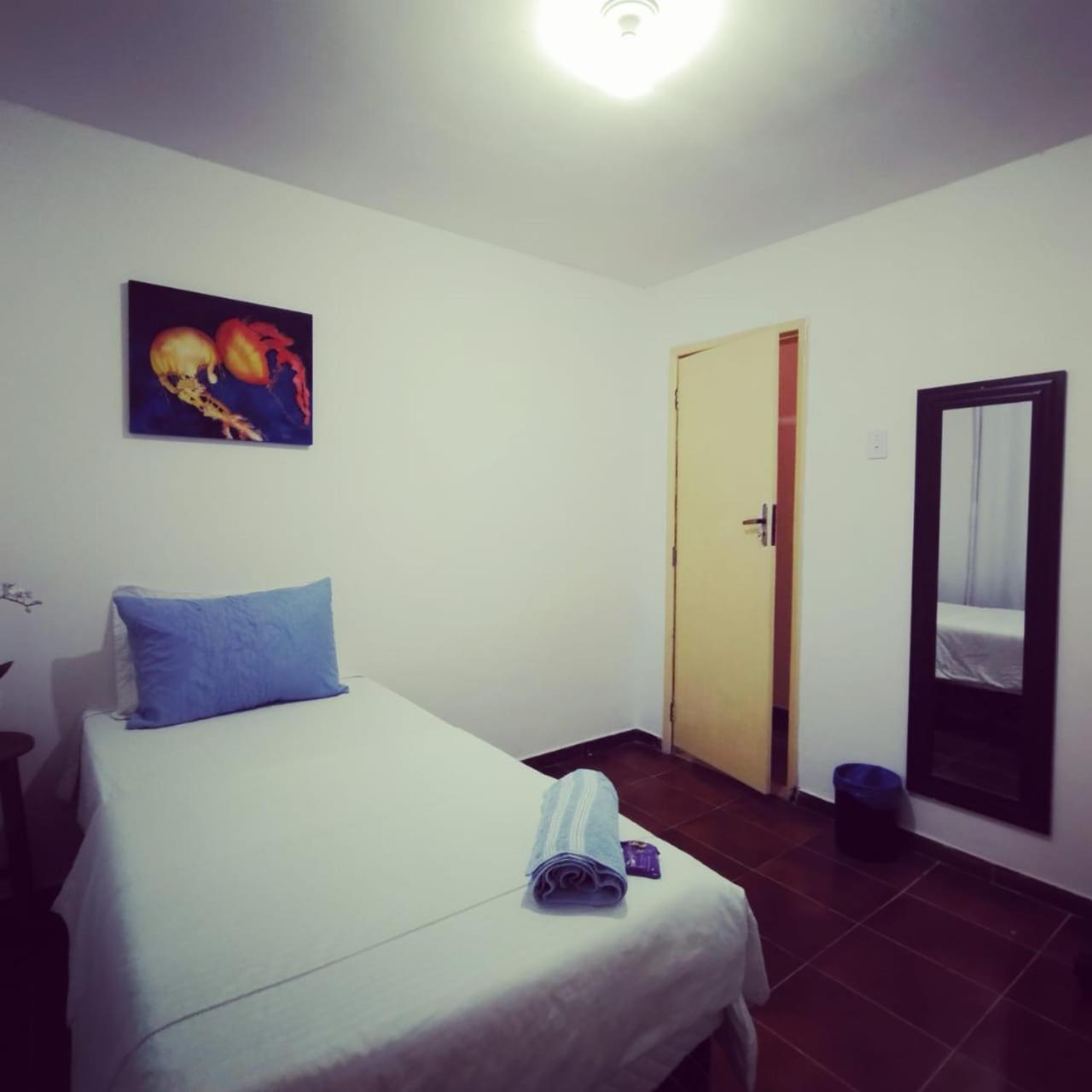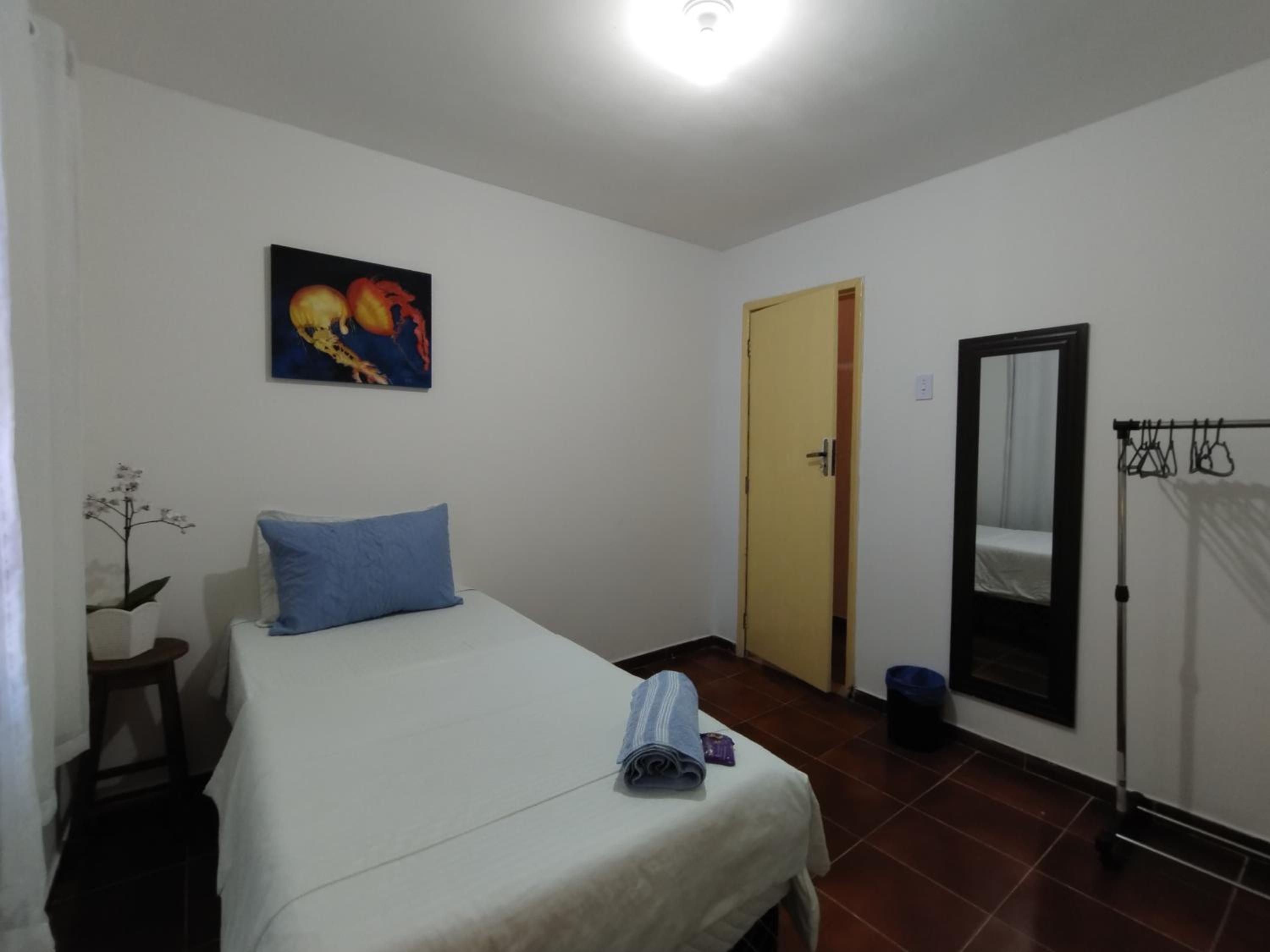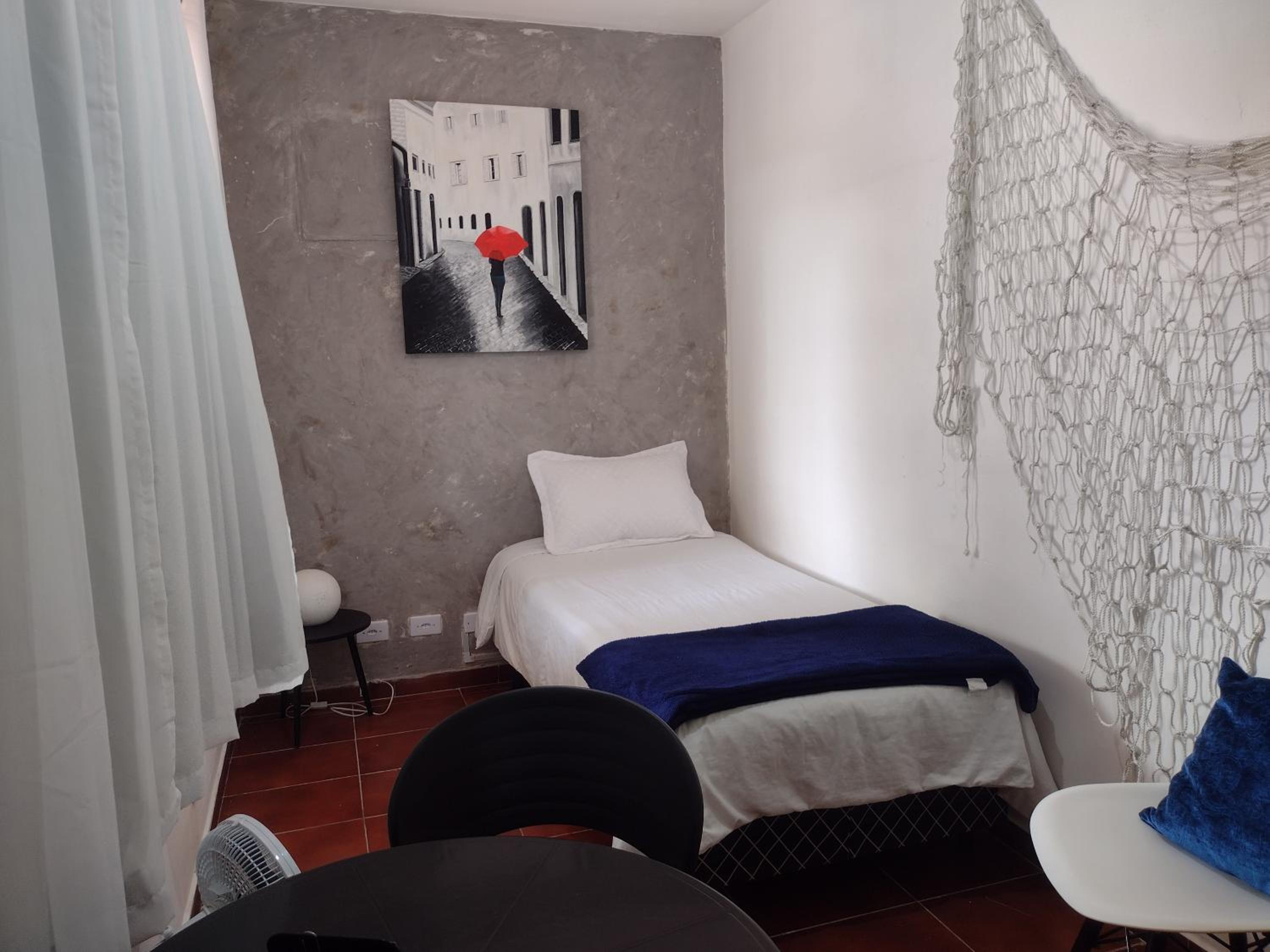 Quarto individual muito espaçoso, cama confortável, excelente custo benefício. Tem padaria e mercadinho em frente, tem mercado grande e shopping há uns 15min de caminhada.