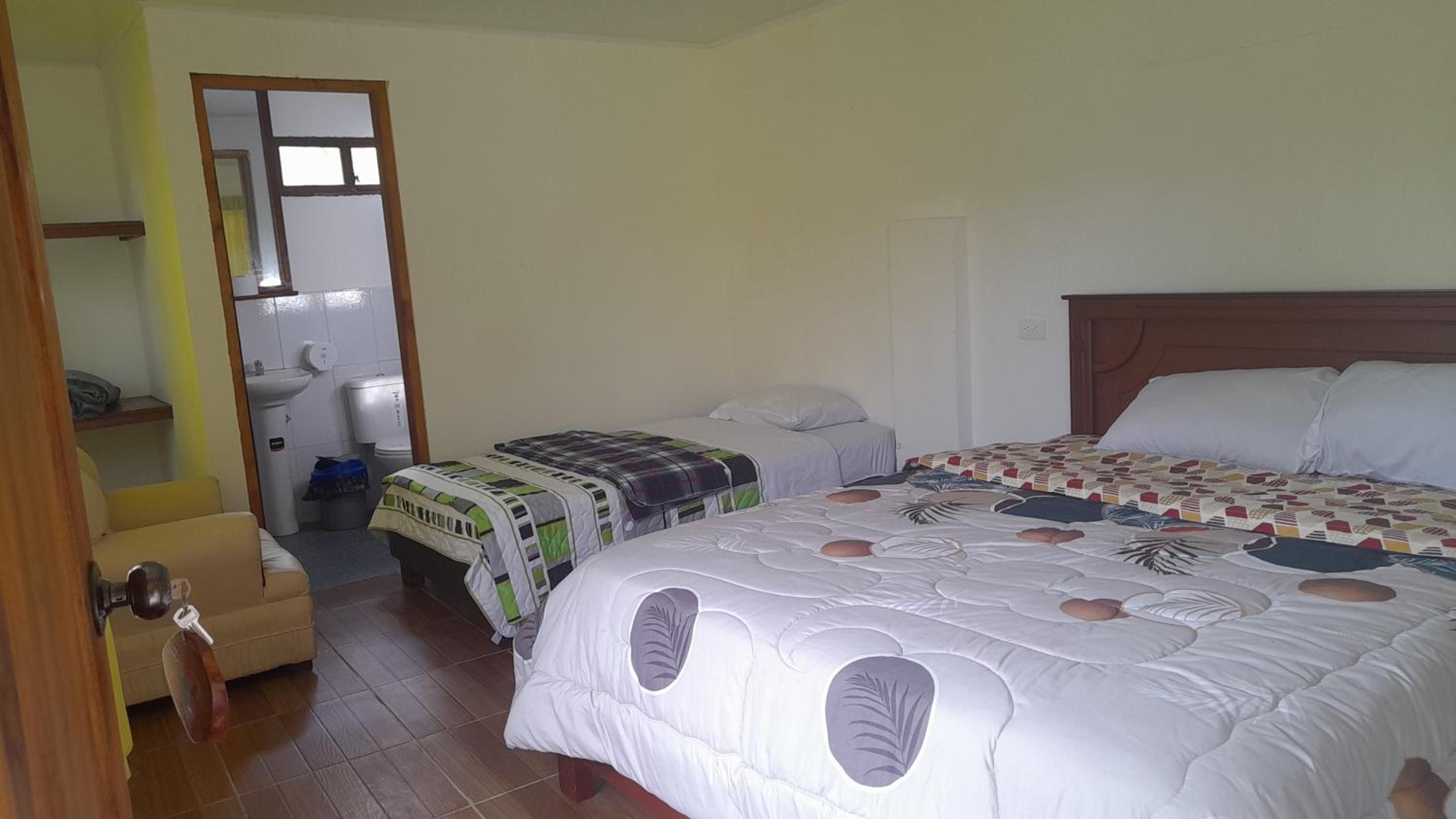 Un endroit au milieu de la nature avec des colibris et mammifères jamais vus ailleurs. Un accueil sympathique. Pas de cuisine dans les chambres au rez de chaussée mais un restau à côté. Plats pas chers et très bons.