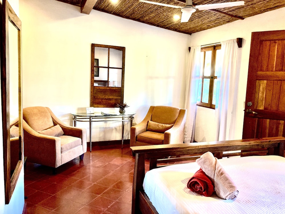 We truly enjoyed every moment of our stay here at Hotel Tranquillo . We had arrived in Las Penitas later than we had expected but Carmen reached out to make sure everything was okay . You can really tell Carmen and Jack really care about their guests and want to ensure that they feel accommodated and welcomed . The hotel grounds are beautiful . Quaint and feel like a little paradise . Rooms are spacious and so nicely decorated . It was very hot the days we were there but the property had many shaded areas you could sit and relax or play many of the games they have there at your leisure.