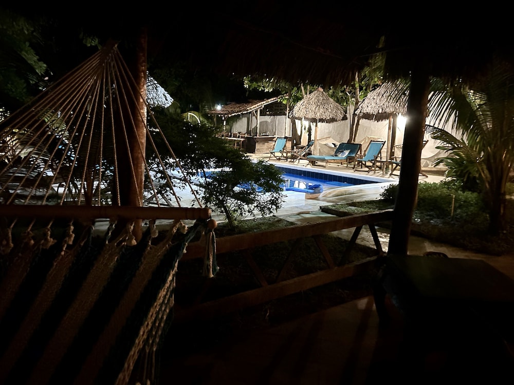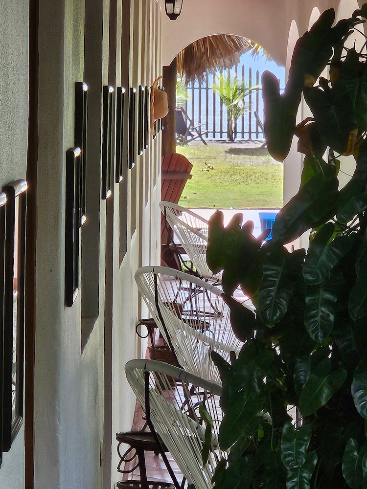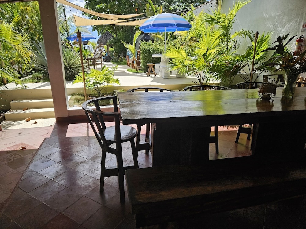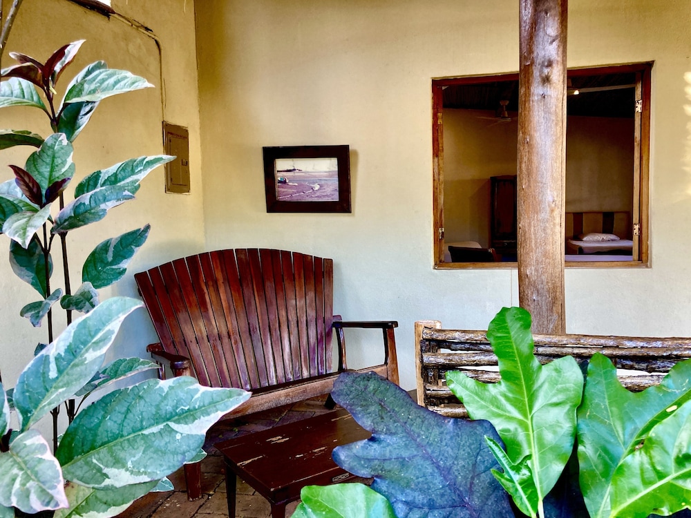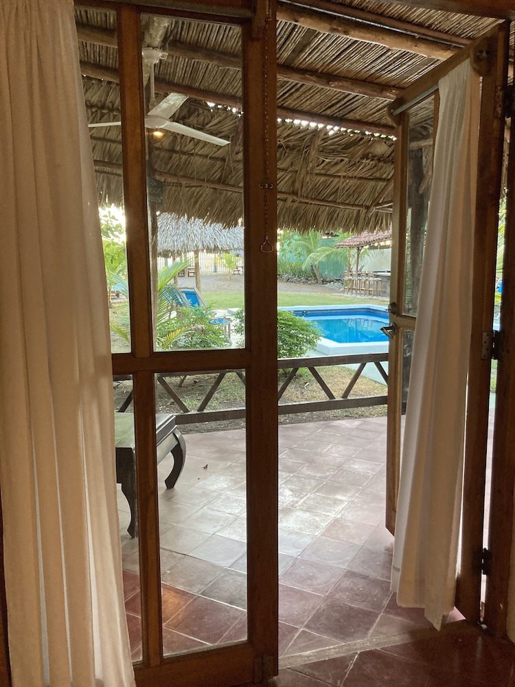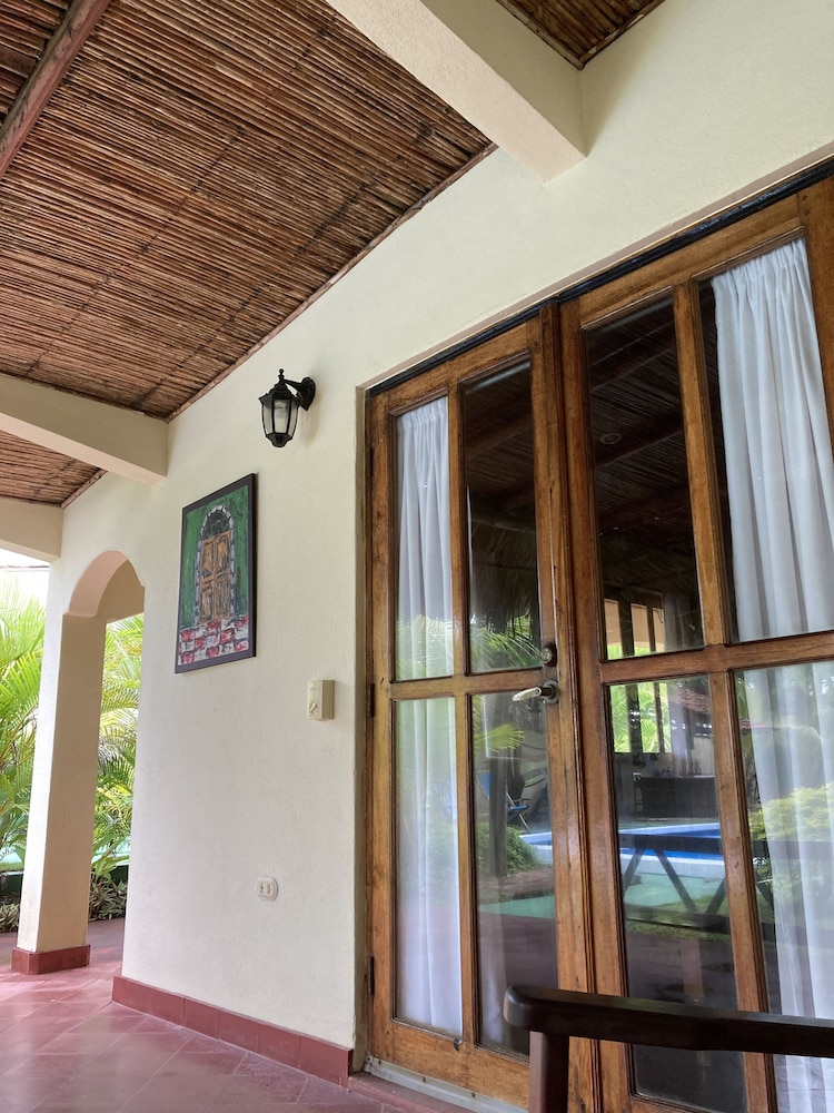 The outside area of the hotel is absolutely beautiful! The garden is designed with lovely details, different sitting areas, hammocks, plants and a wonderful upstairs patio from which one can enjoy the sunset. Only being there is relaxing. The pool is quiet large and very clean. The hotel is directly at the beach right between Las Penitas and Poneloya. One can take beautiful walks in the morning.