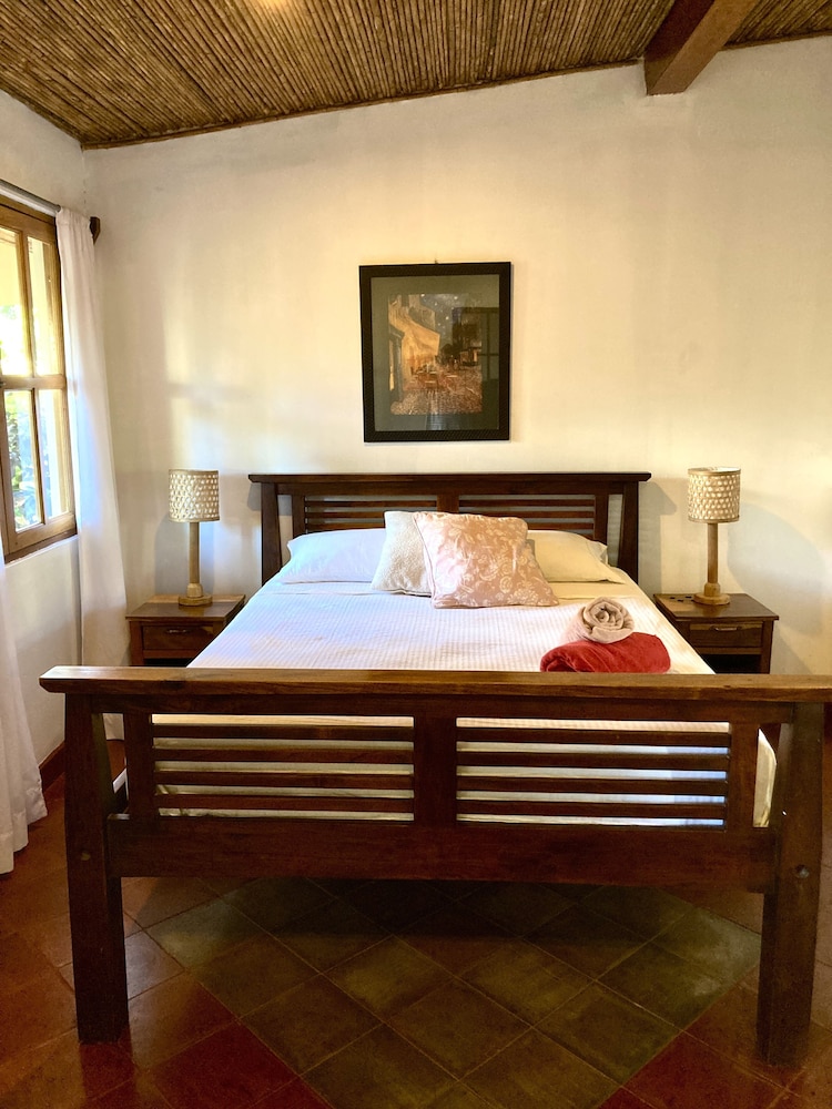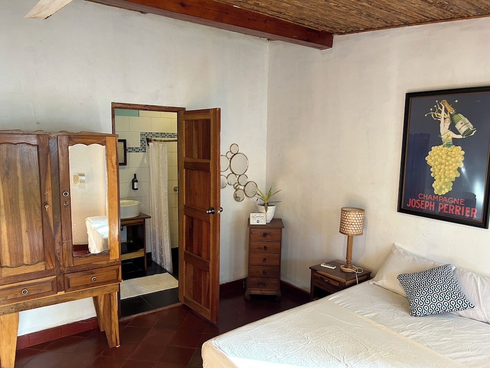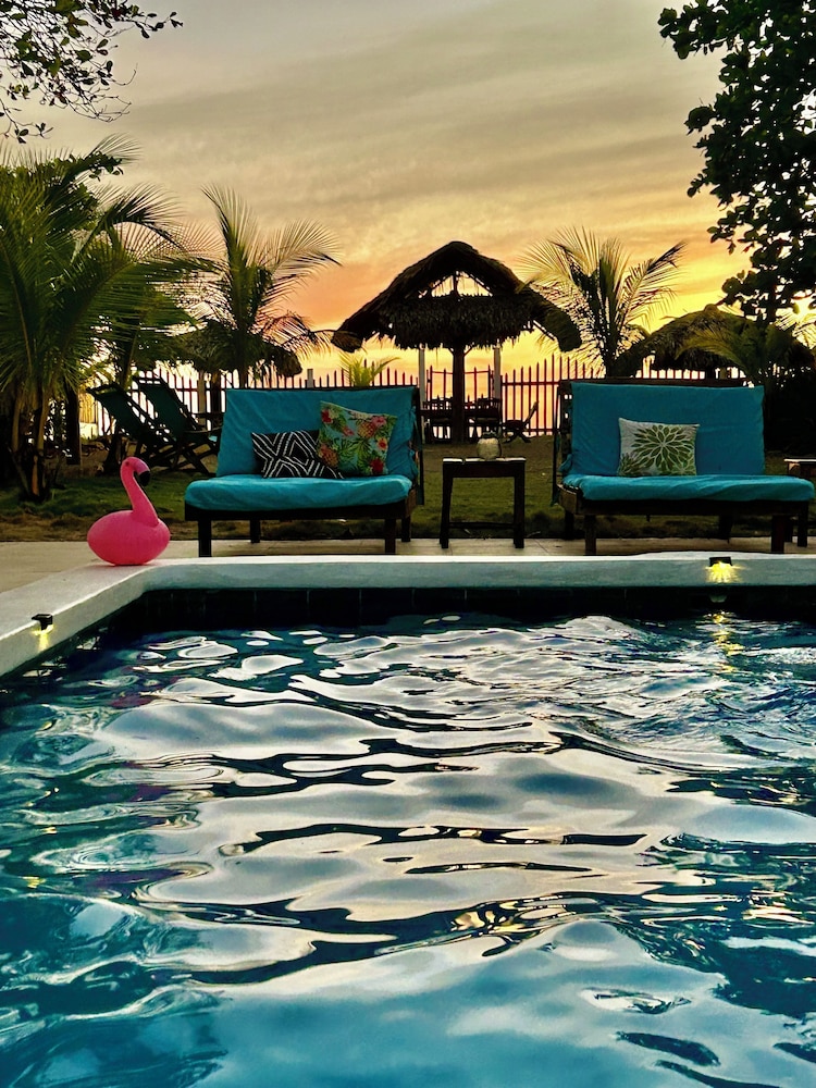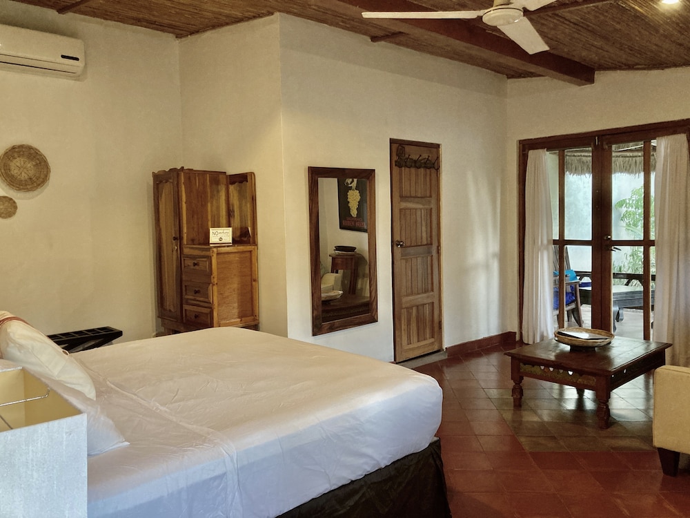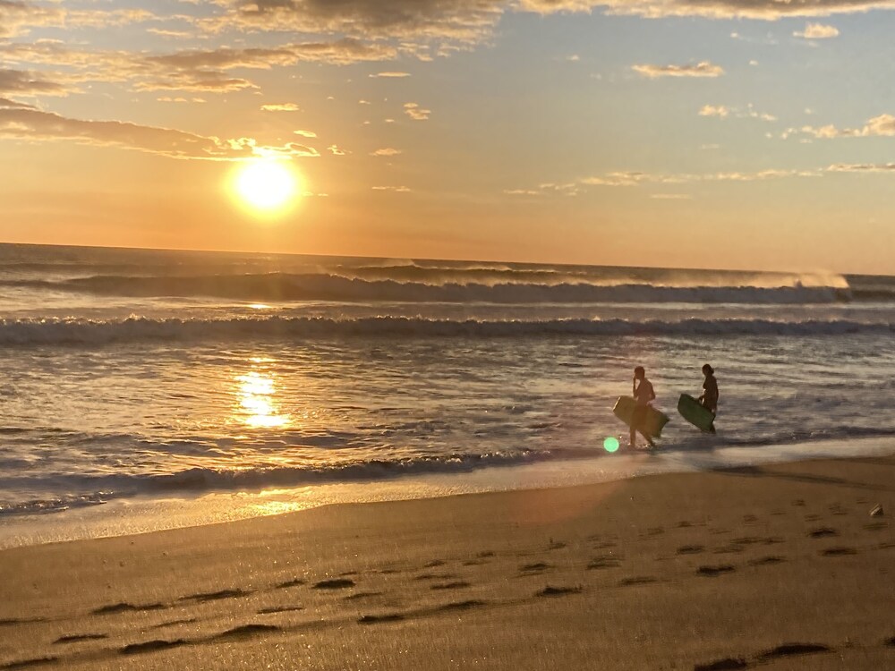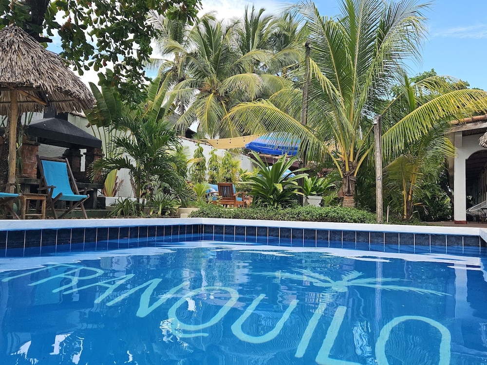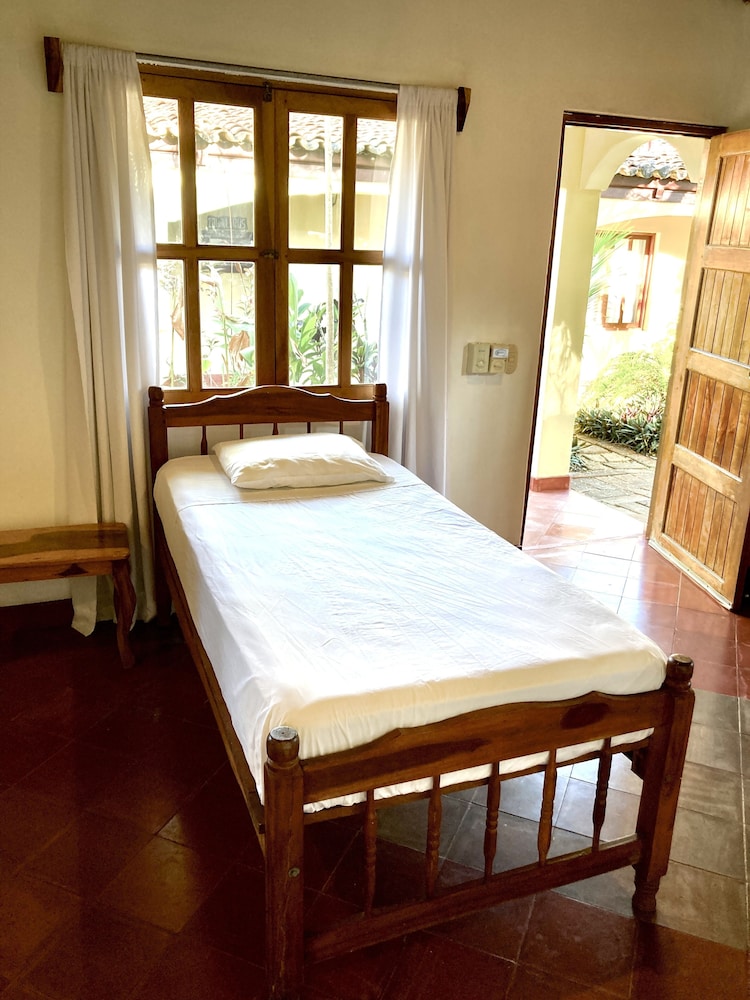 The outside area of the hotel is absolutely beautiful! The garden is designed with lovely details, different sitting areas, hammocks, plants and a wonderful upstairs patio from which one can enjoy the sunset. Only being there is relaxing. The pool is quiet large and very clean. The hotel is directly at the beach right between Las Penitas and Poneloya. One can take beautiful walks in the morning.