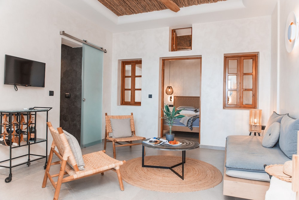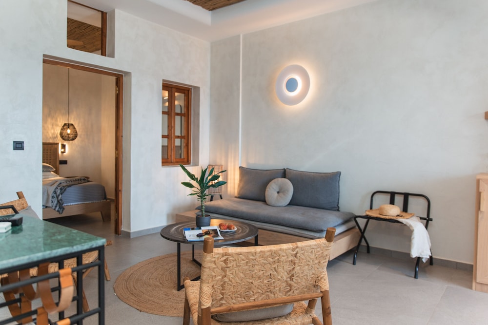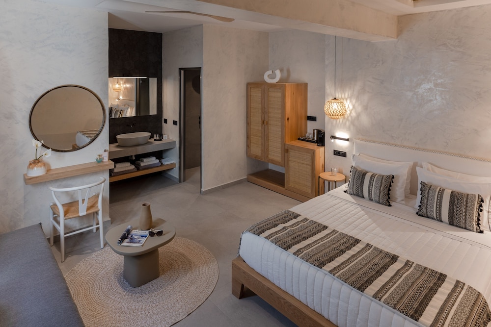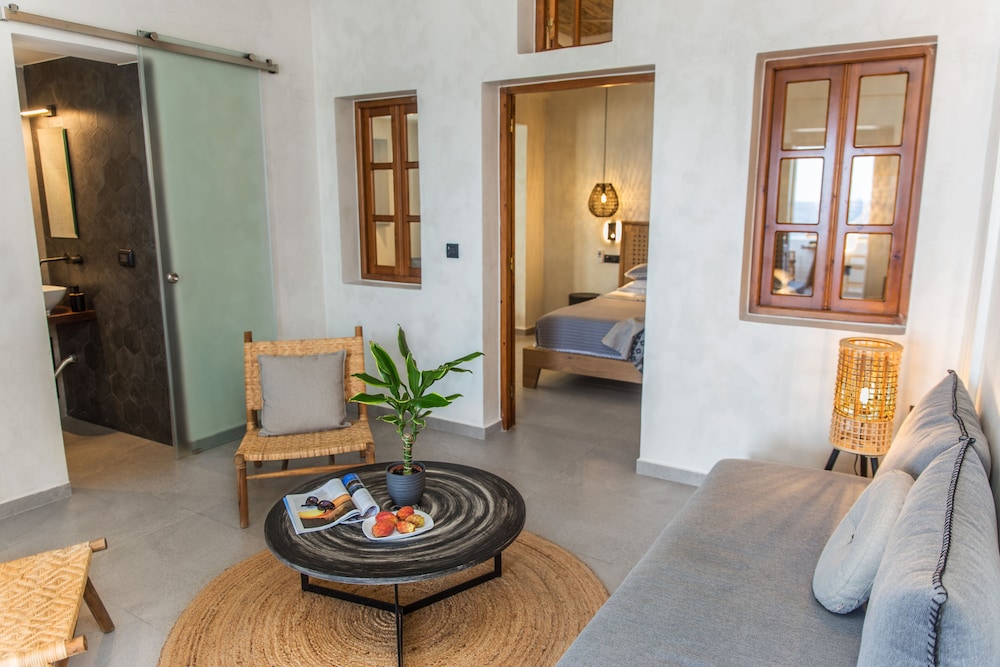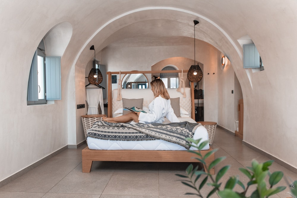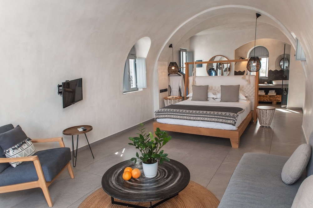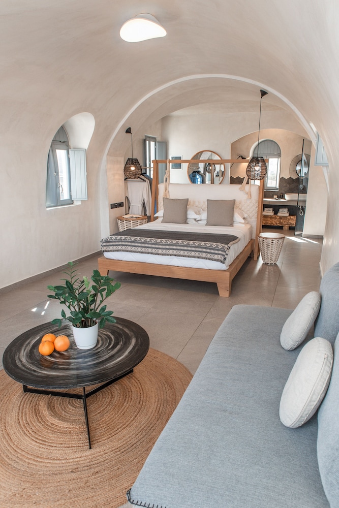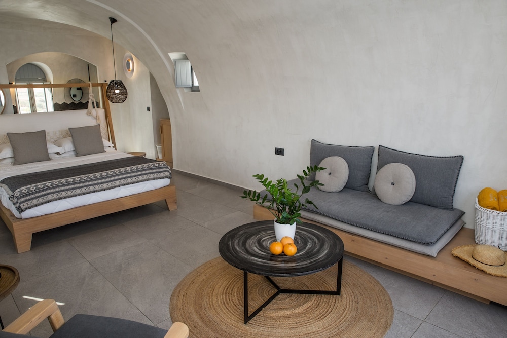 Located on Baxedes Beach, Almyra Oia Suites offers a serene getaway just minutes away from iconic landmarks like Oia Castle and Santorini Caldera. Book now for a relaxing seaside escape.