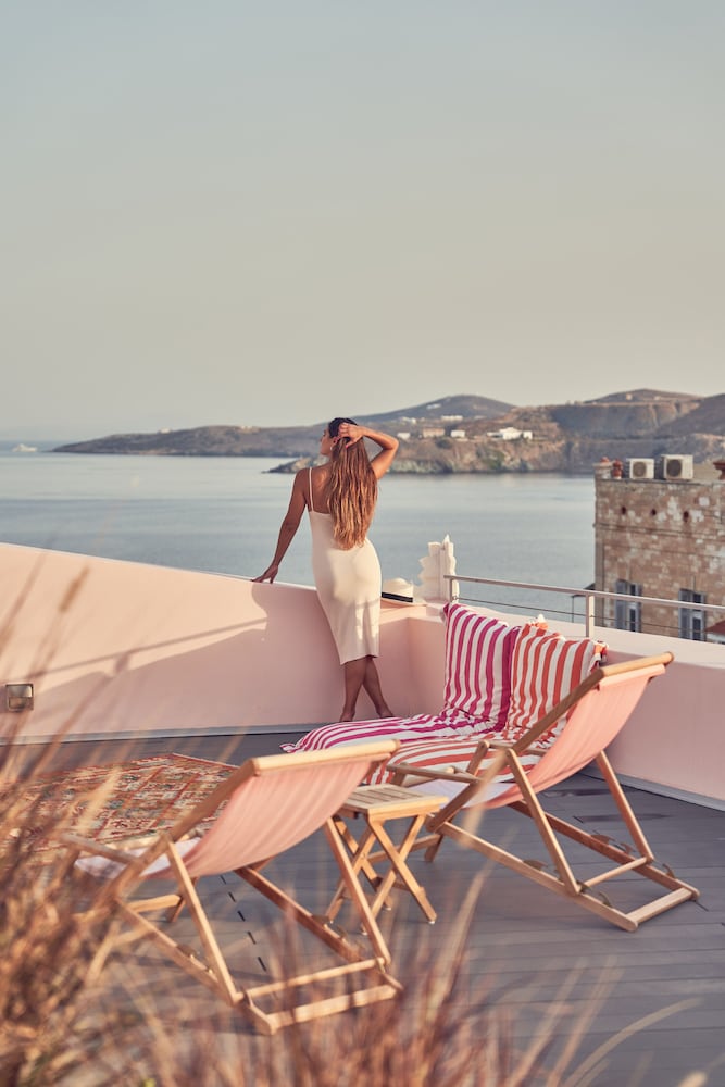 Enjoy breathtaking views from our terrace, a perfect spot to unwind and take in the beauty of Syros.