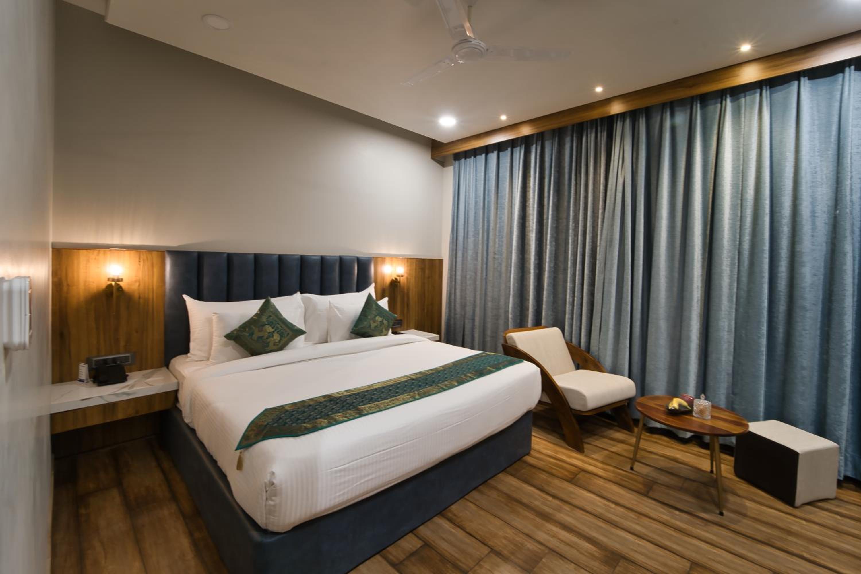 Luxurious Accommodation: Enjoy comfortable and stylish rooms with modern amenities and beautiful city views. Each room is equipped with a desk, flat-screen TV, safety deposit box, and more.