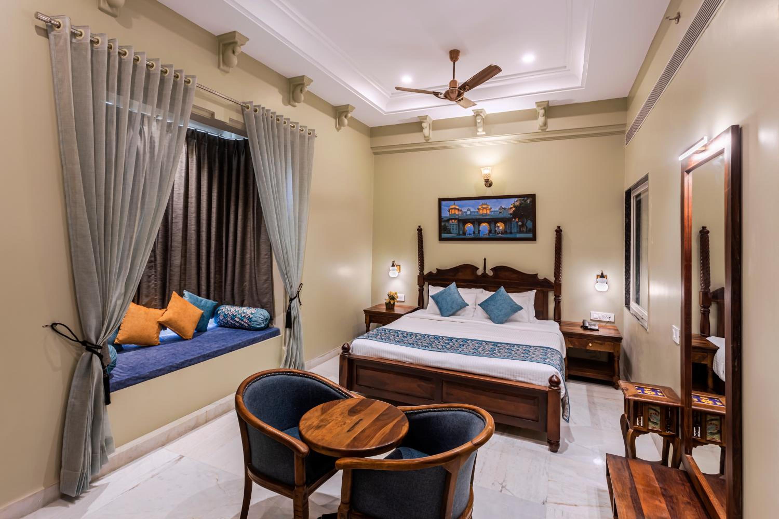 Rawla Sagrun Kumbhalgarh offers air-conditioned rooms with modern amenities, ensuring a comfortable stay. Each room is equipped with a flat-screen TV, safety deposit box, and a private bathroom, providing a relaxing retreat after a day of exploration.
