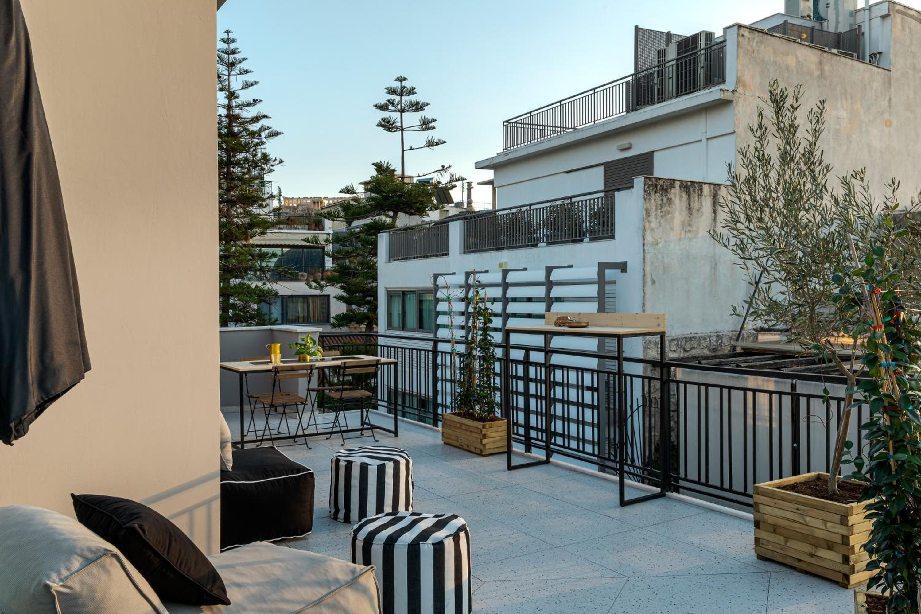 Great location within walking distance to major areas and 15 min walk to the acropolis. There are multiple restaurants right outside the front door of the hotel with the best bagel shop in the city around the corner. We rent the suite for 3 of us which had a full pull out couch which was pretty comfortable and this massive outdoor balcony for us. The hosts were super friendly and helpful. Worth the value, clean and location.