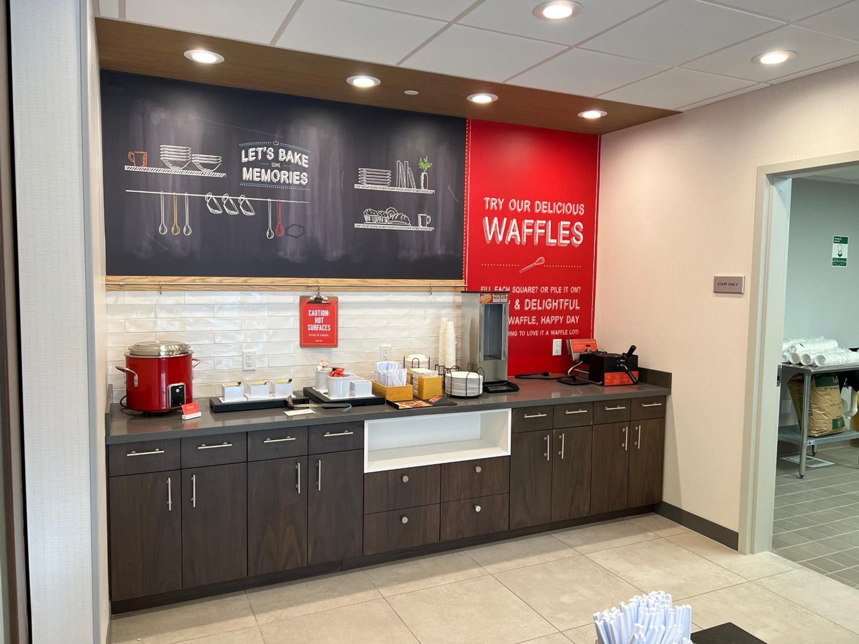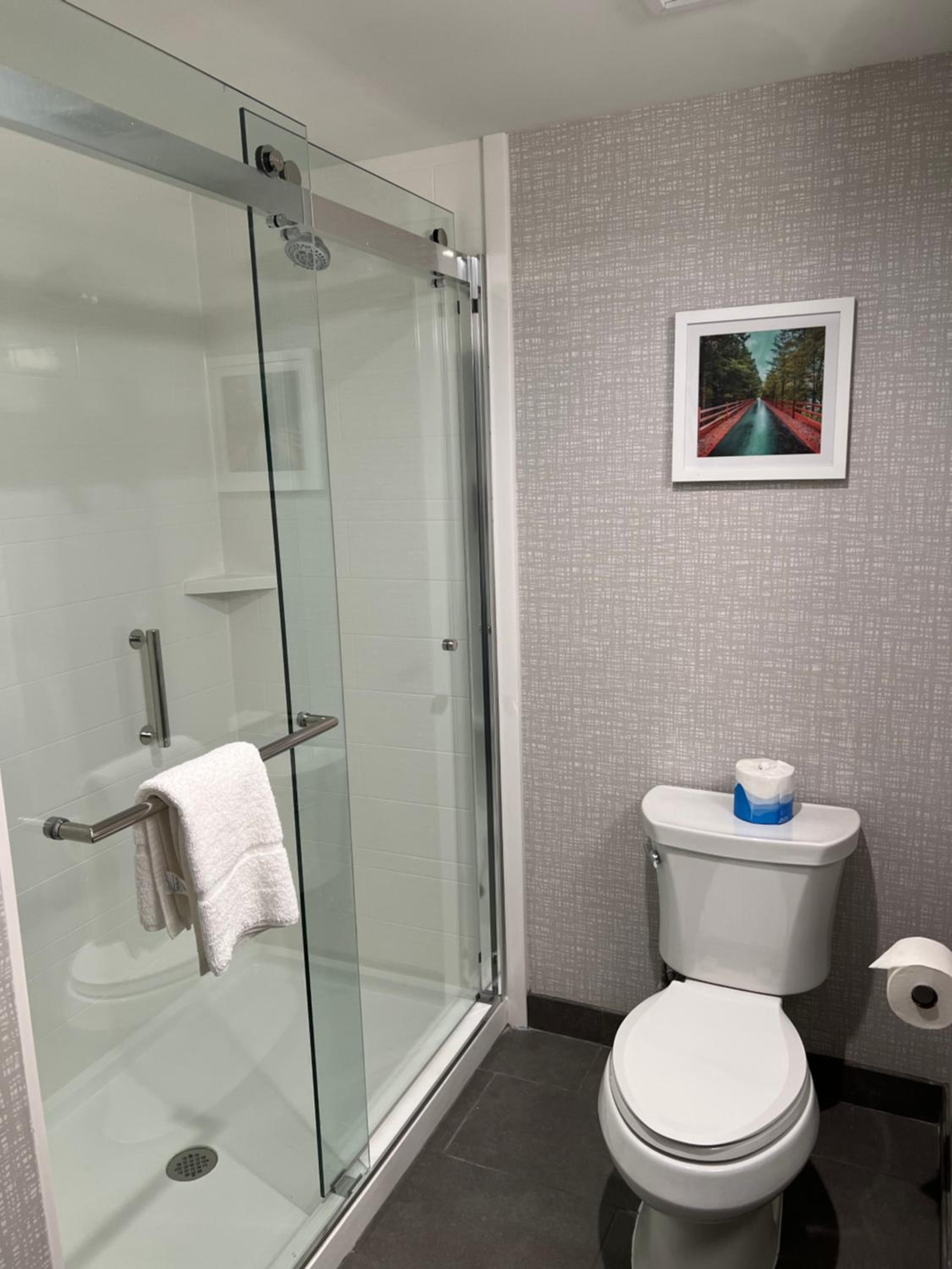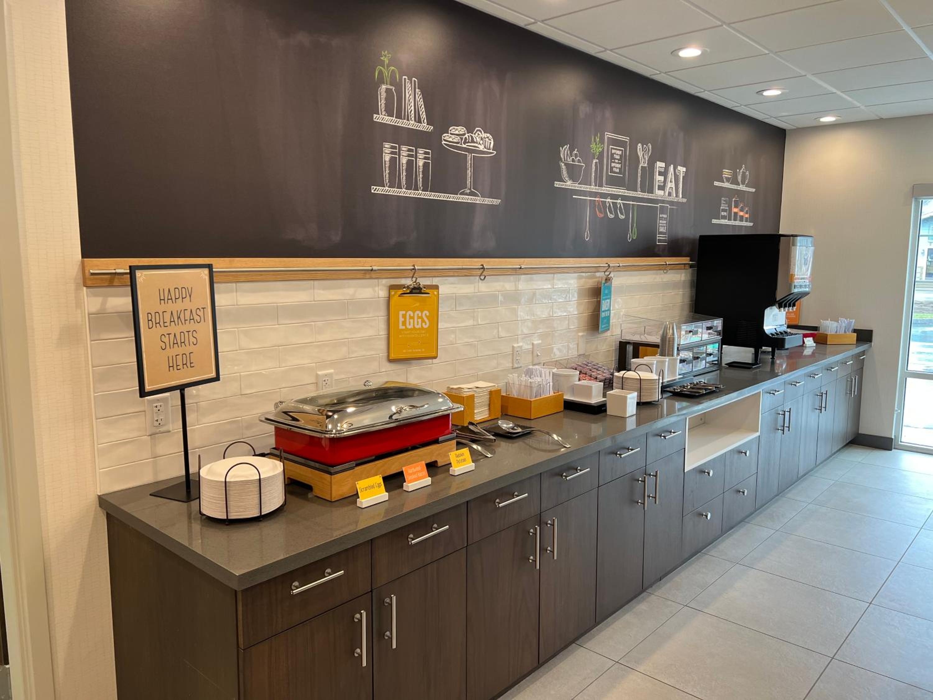 Kudos to the staff (David) who helped us still get a room when I had screwed up the date. Lovely, clean room with comfortable bed, nice tv, refrigerator, roomy shower, etc. Shampoo, conditioner and soaps all provided. The shampoo was fantastic! Decent breakfast with options like eggs, sausage, waffles, muffins, bagels, and cereal. Very convenient location. Would definitely stay there again!