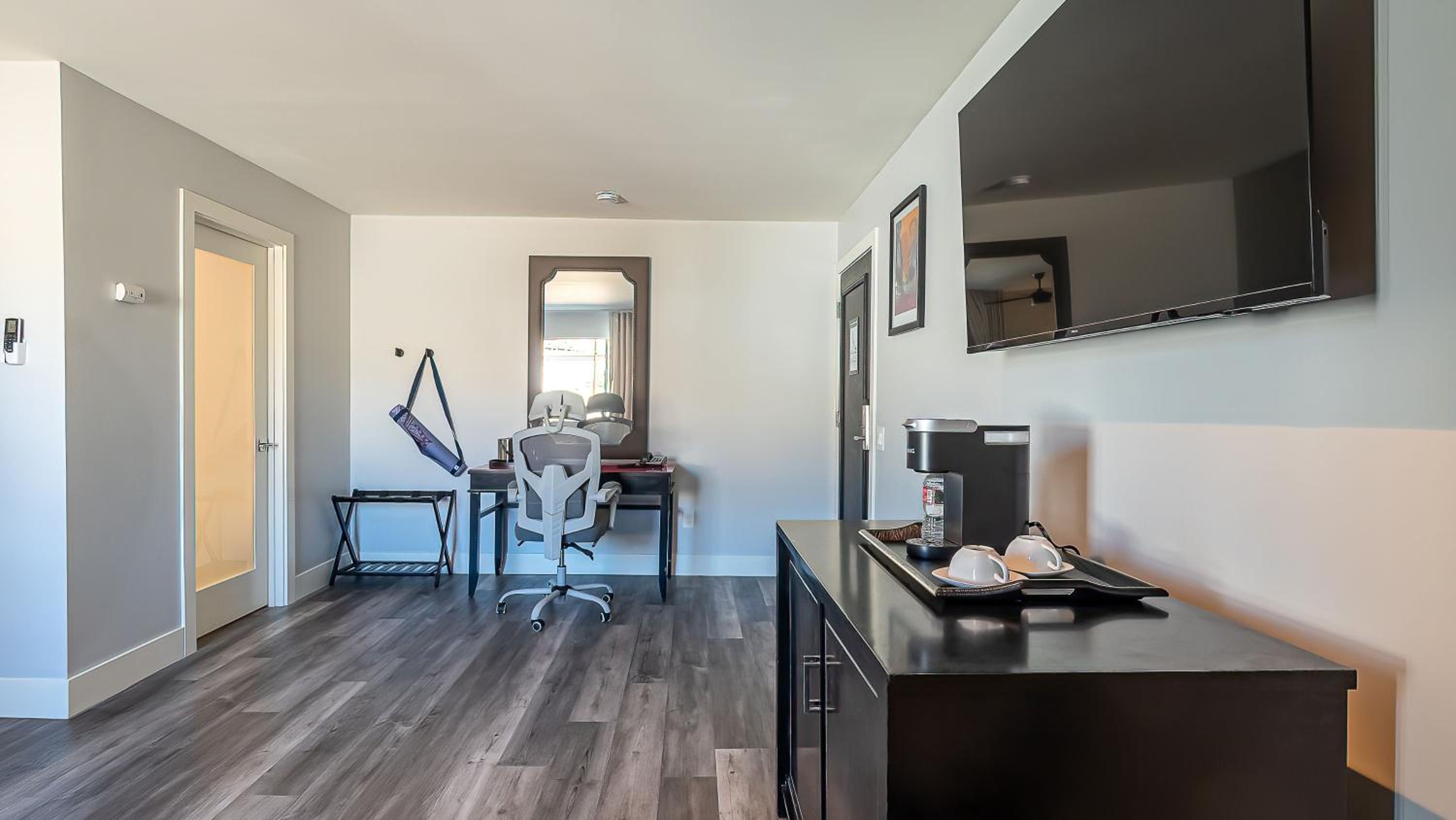 Has a nice spa vibe with yoga mat in the room and patio. Large room size and modern updates. Comfy bed. Good breakfast.