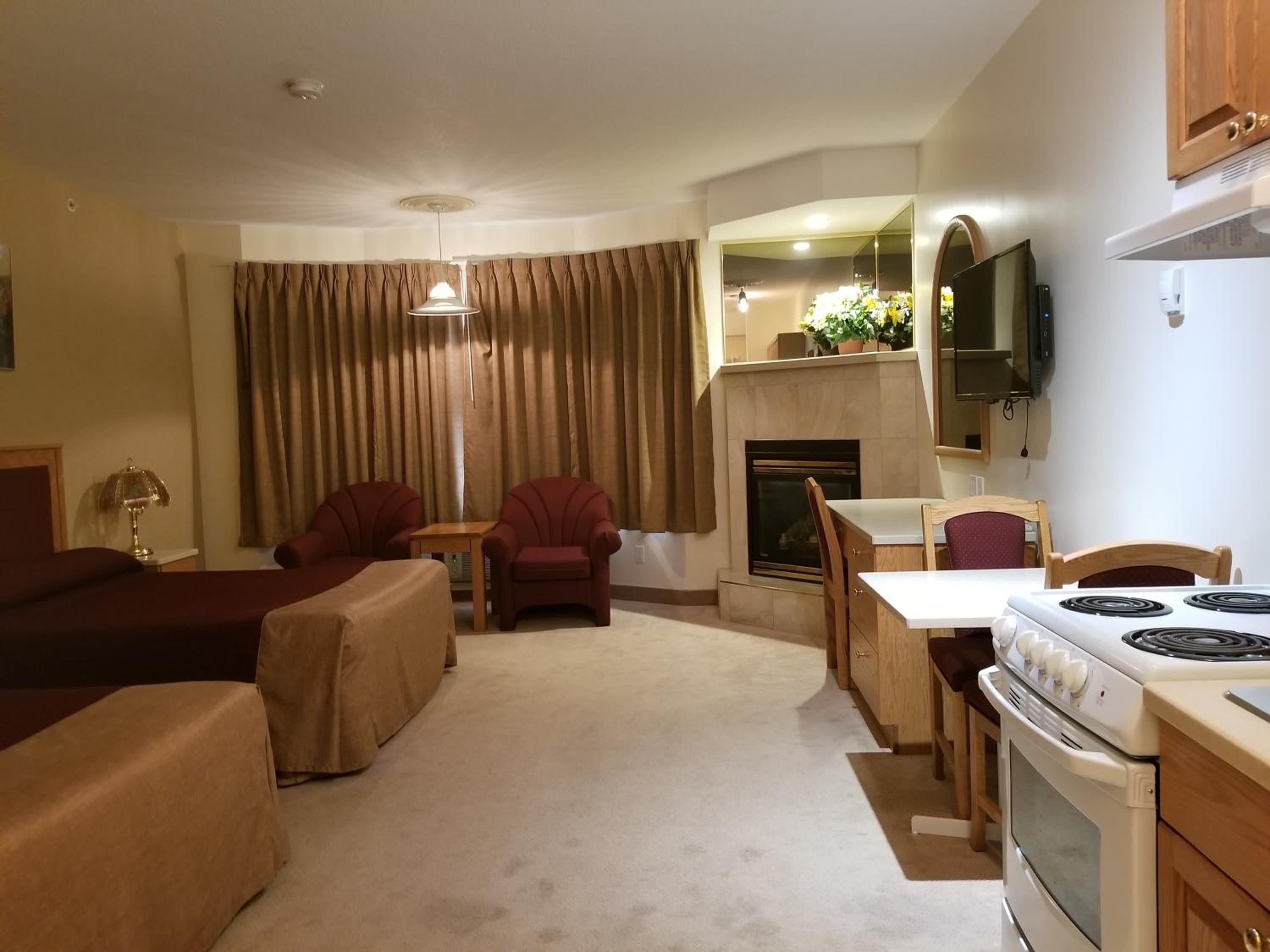 Great room very spacious and the fireplace added to the ambience! Bed extremely comfortable. Very clean and good continental breakfast to start the day.