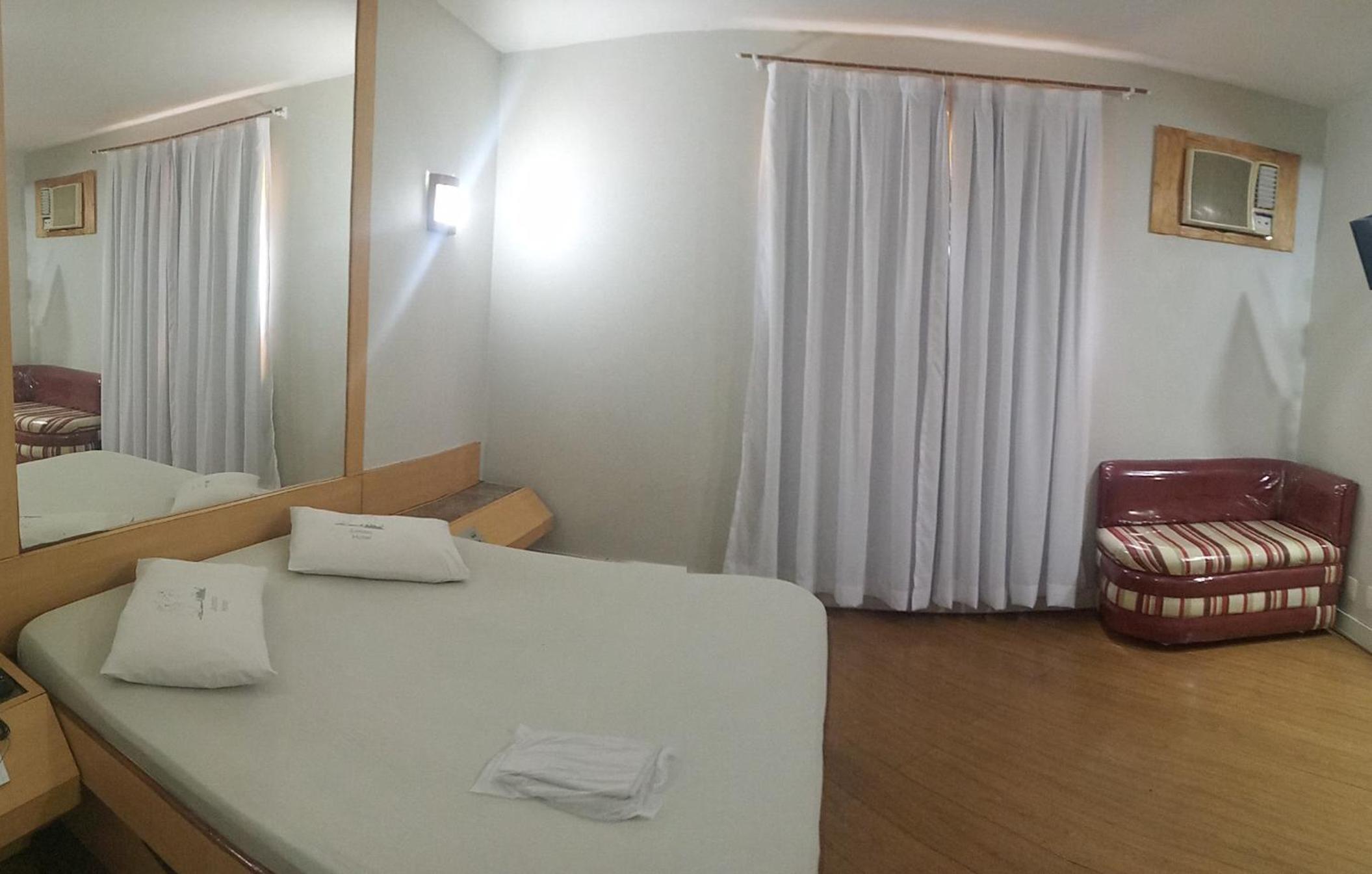 Banheiro imundo, mofado, acrílico da porta quebrado , paredes e rejuntes manchados e muito mal cuidado, lençol rasgado, garçon tentou cobrar a diária dobrado , enfim não recomendo a parte hotel