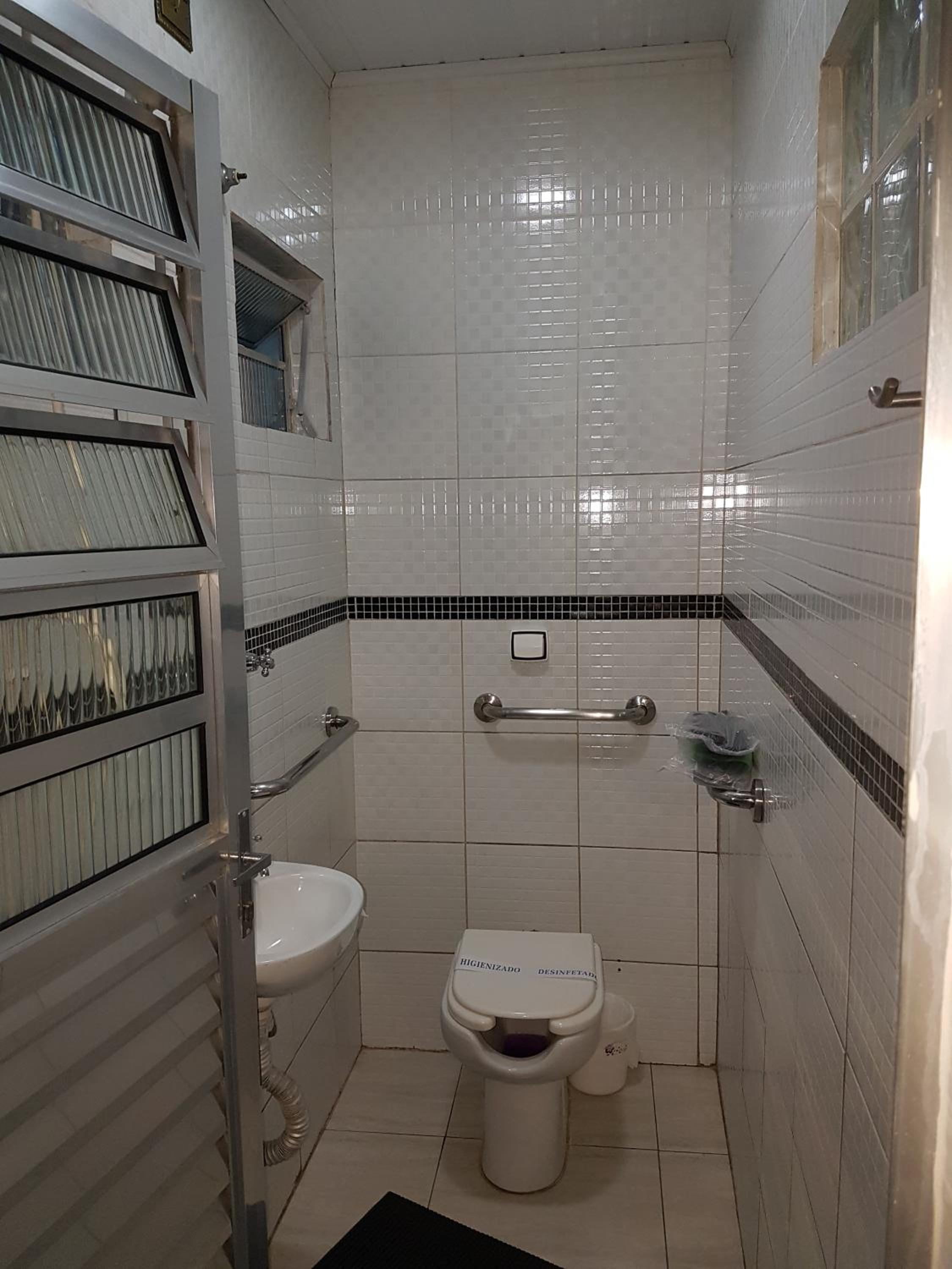 Quando chegamos o banheiro estava molhado bem na entrada, o que parecia ser um vazamento.