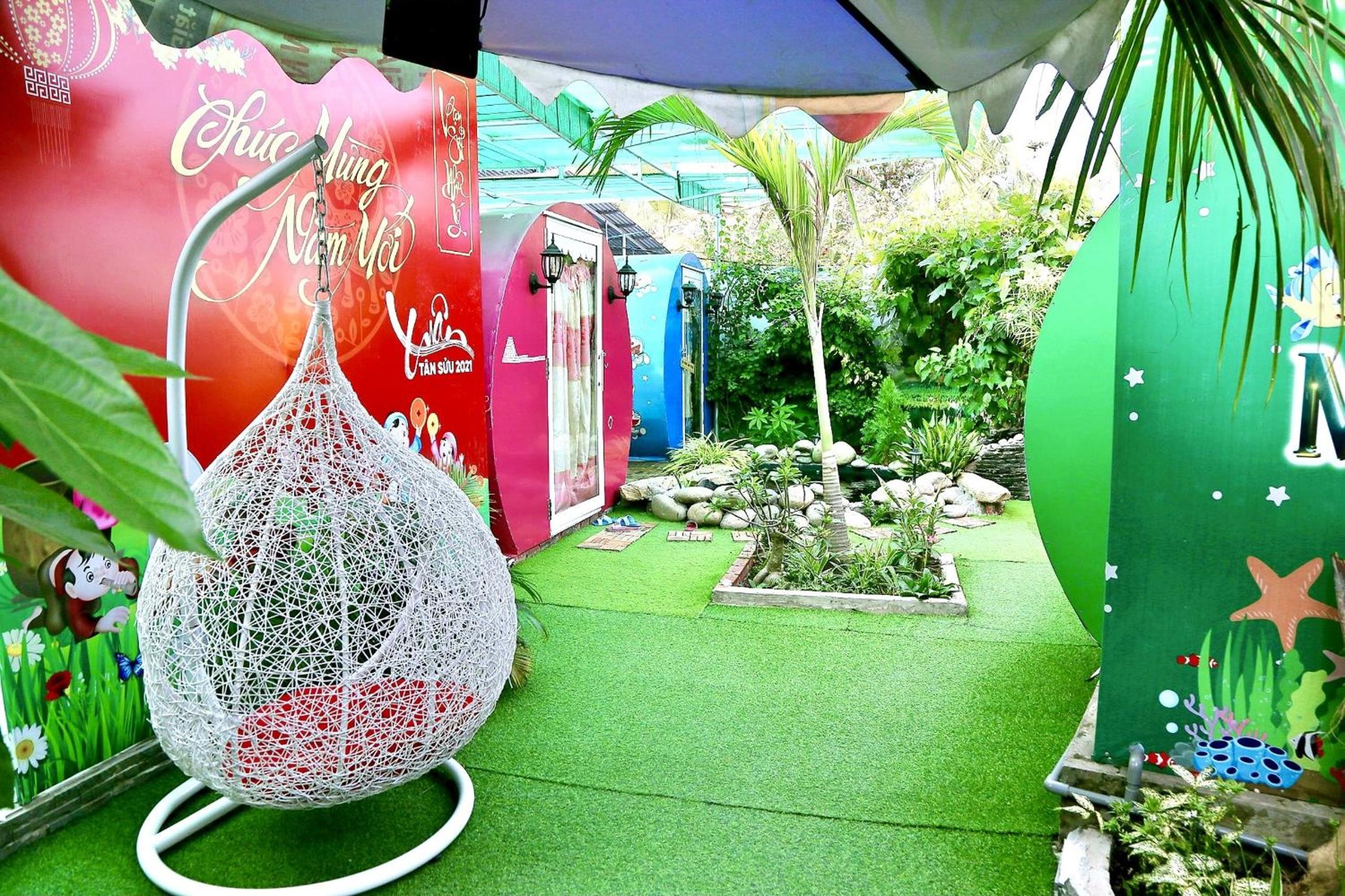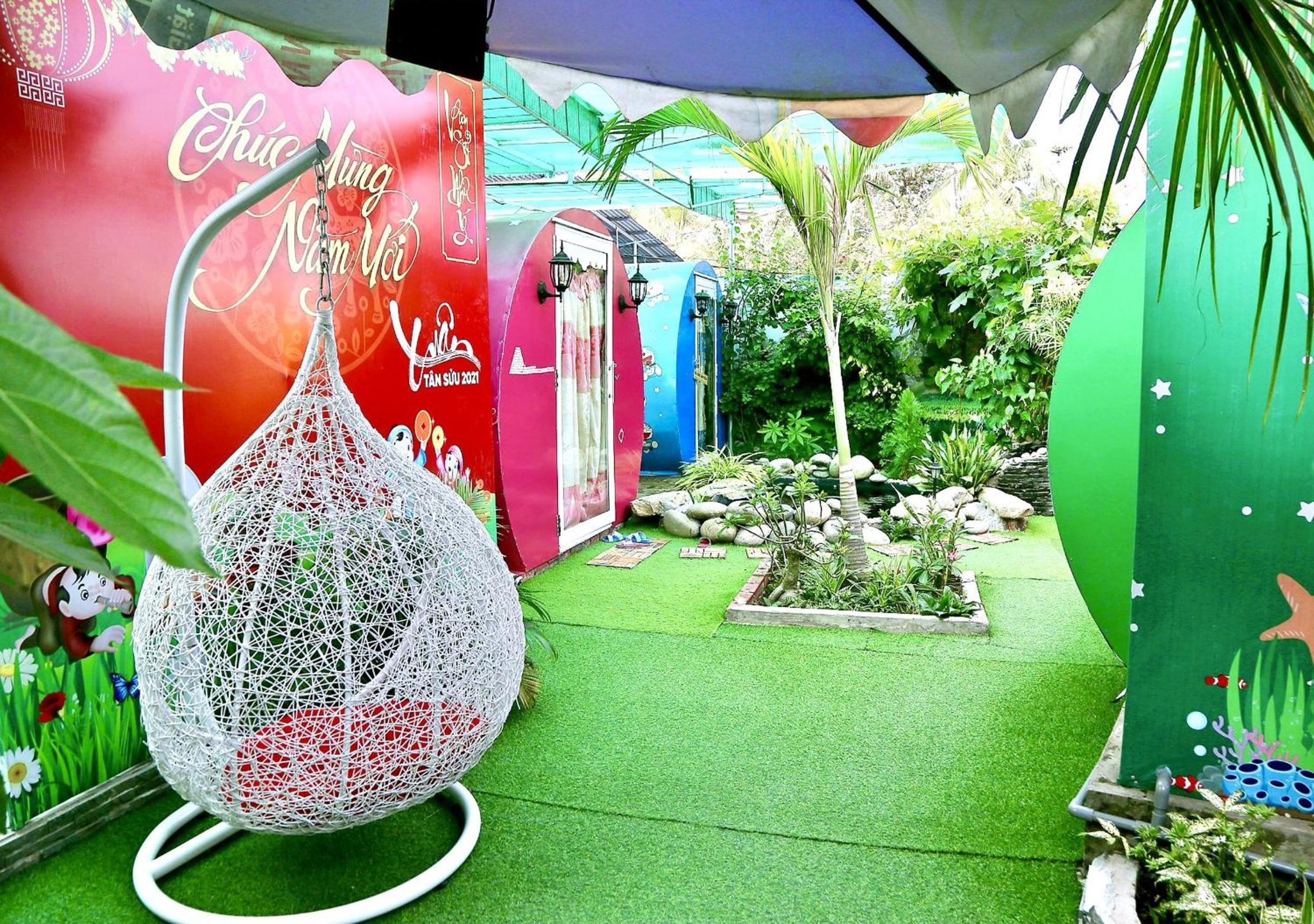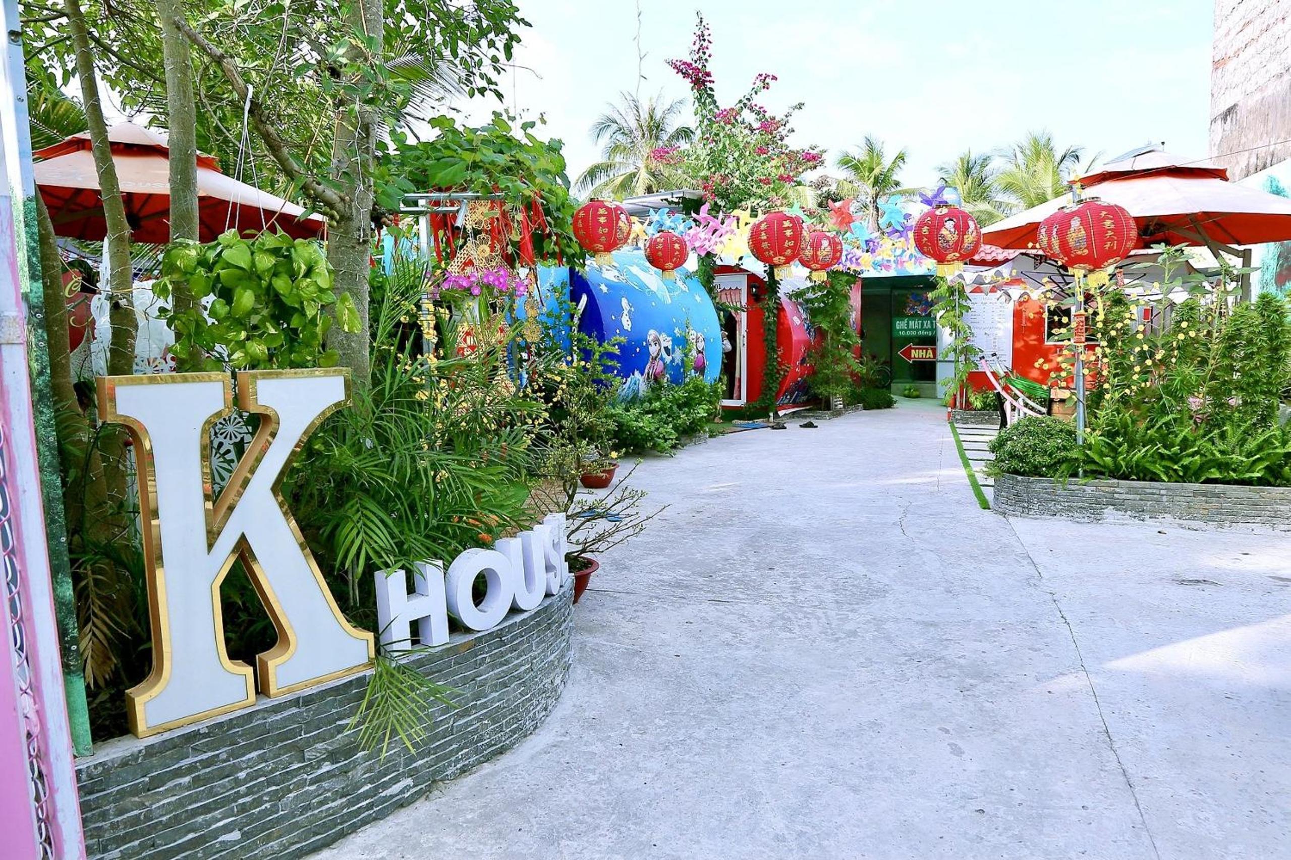 NHÀ NGHỈ K house, located in Ben Tre, boasts a modern building dating from 2020 with a charming garden, offering a serene atmosphere for guests to relax and unwind.