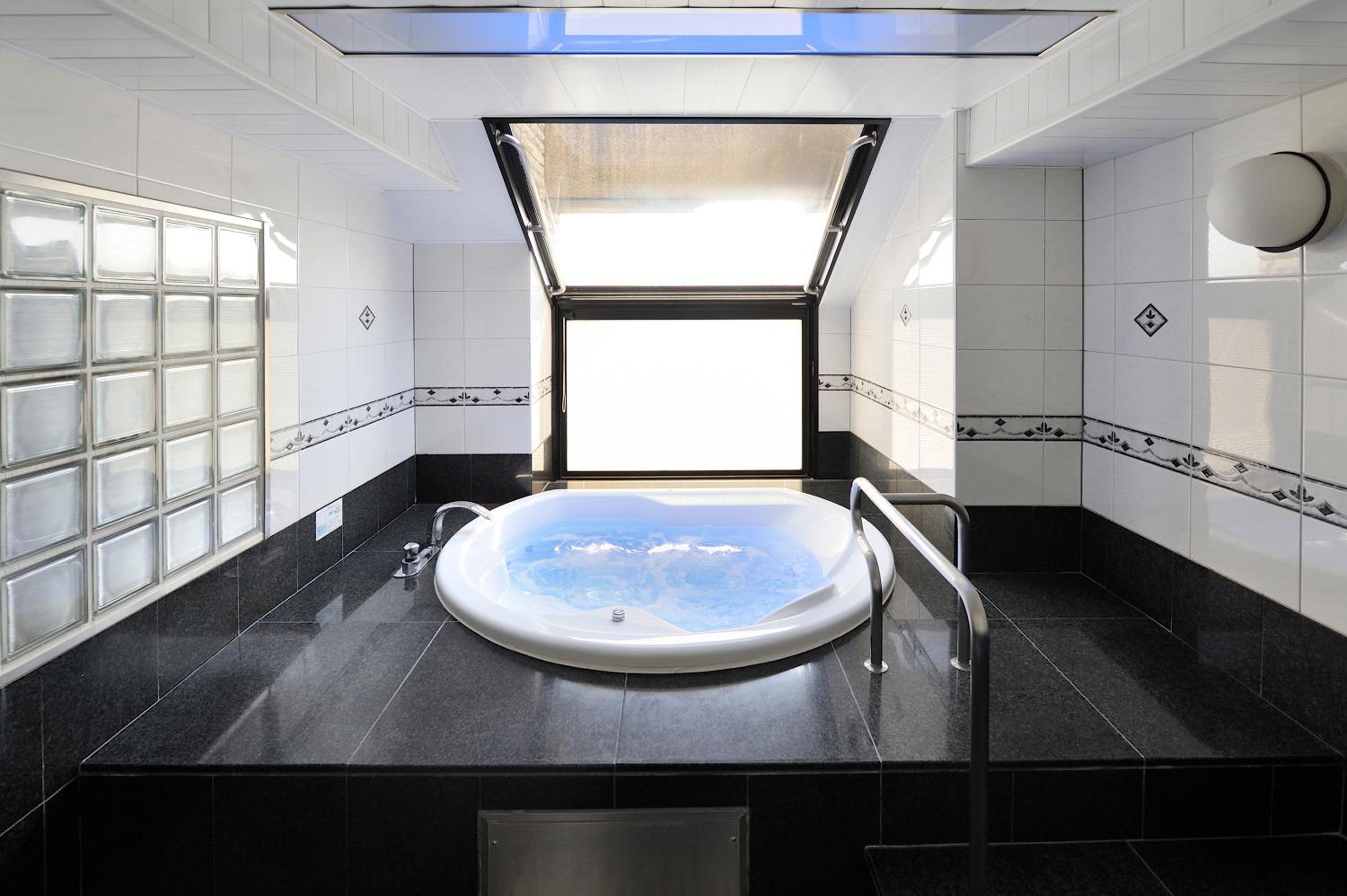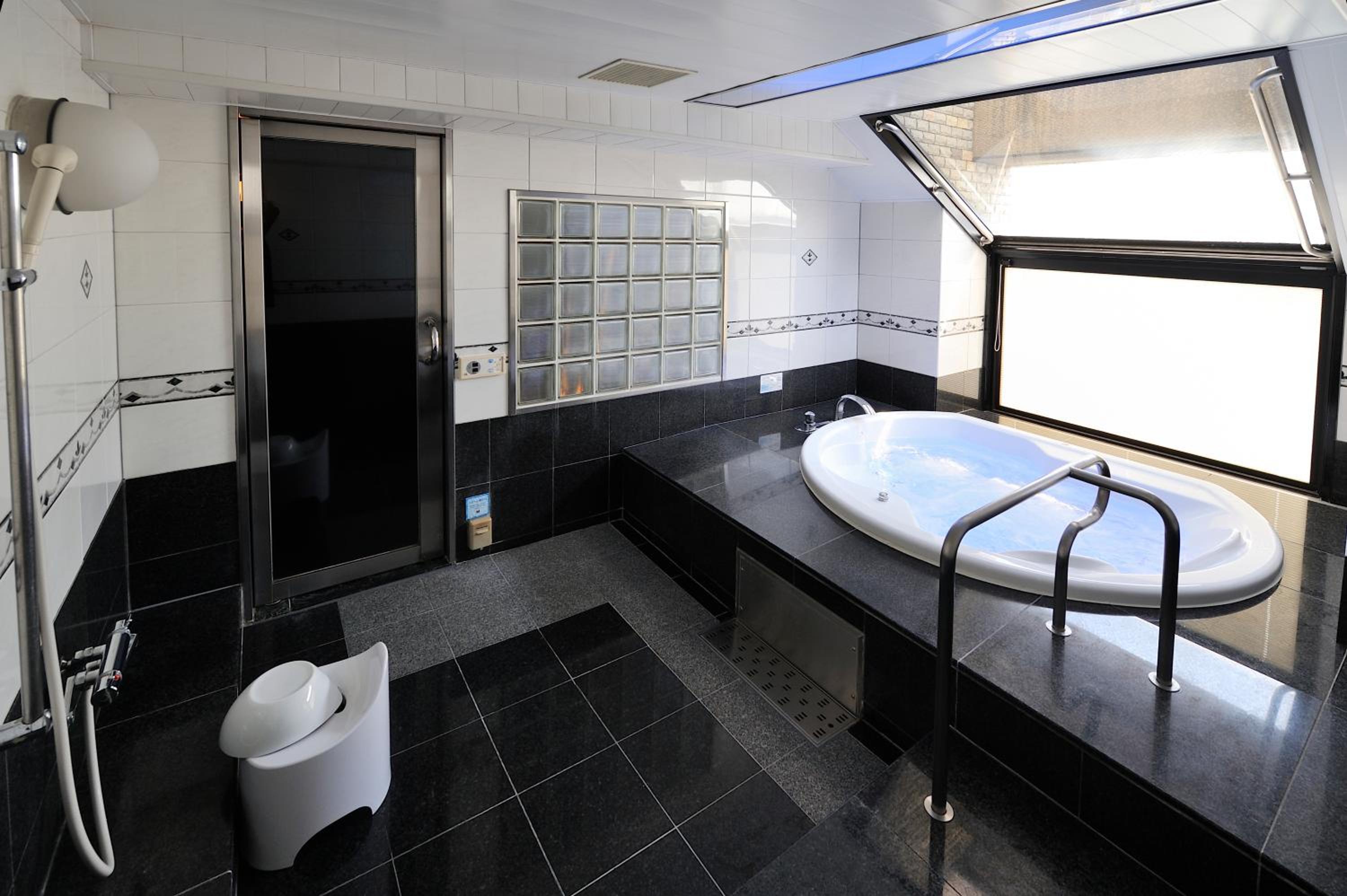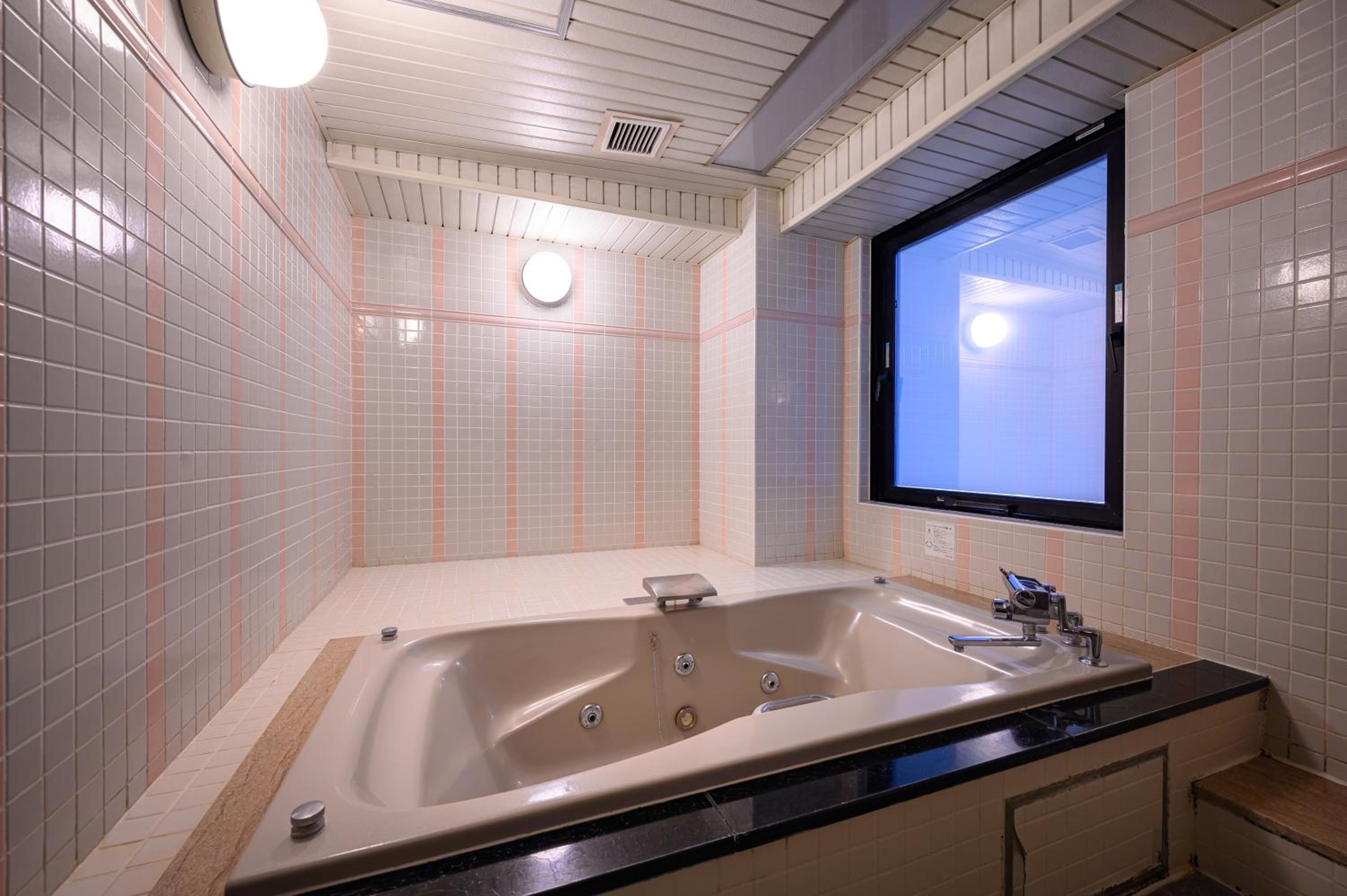 Water Hotel Mw (Love Hotel) in Saitama offers elegant units with modern amenities including air conditioning, flat-screen TV, and hot tubs in the private bathrooms.