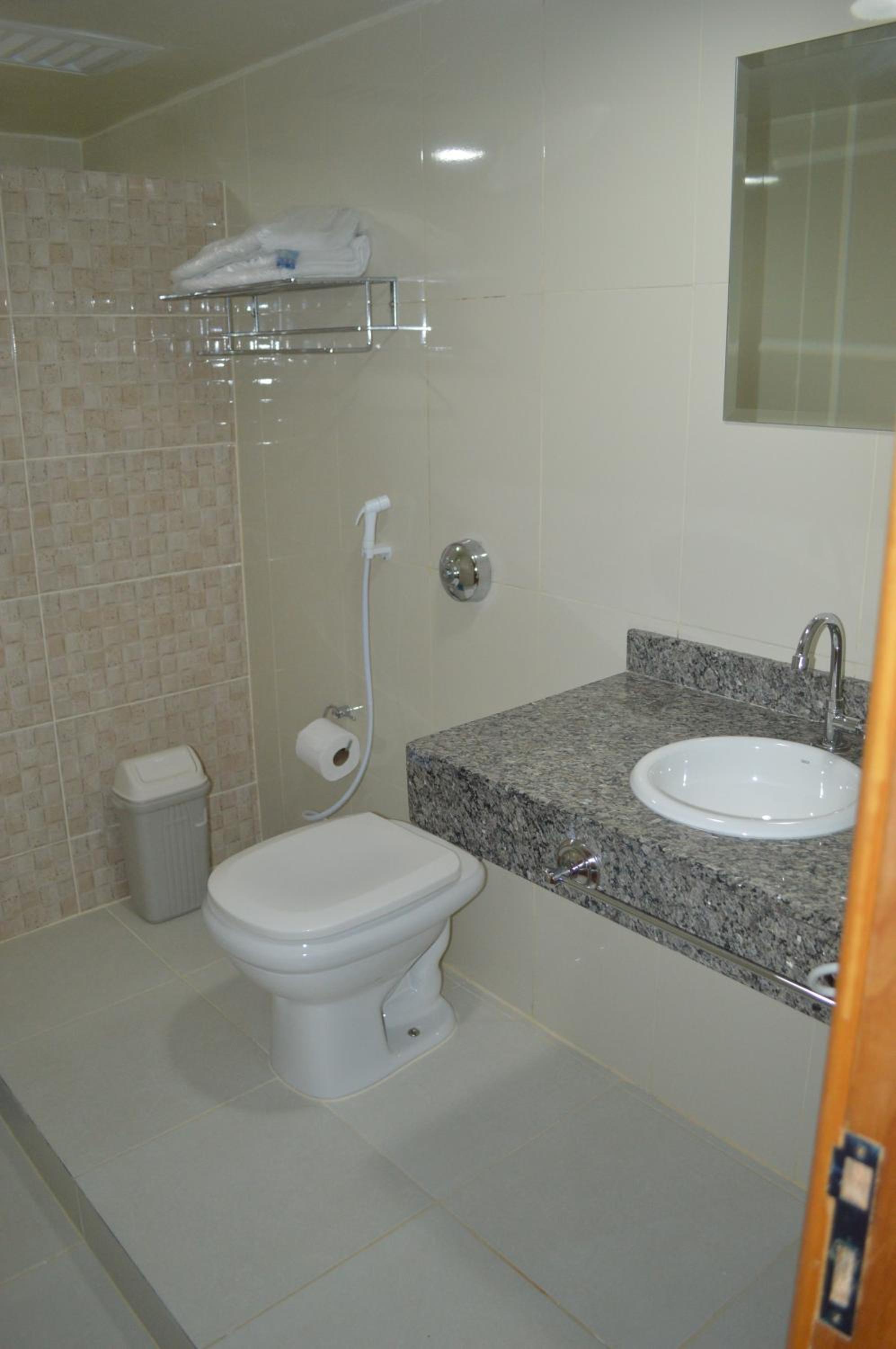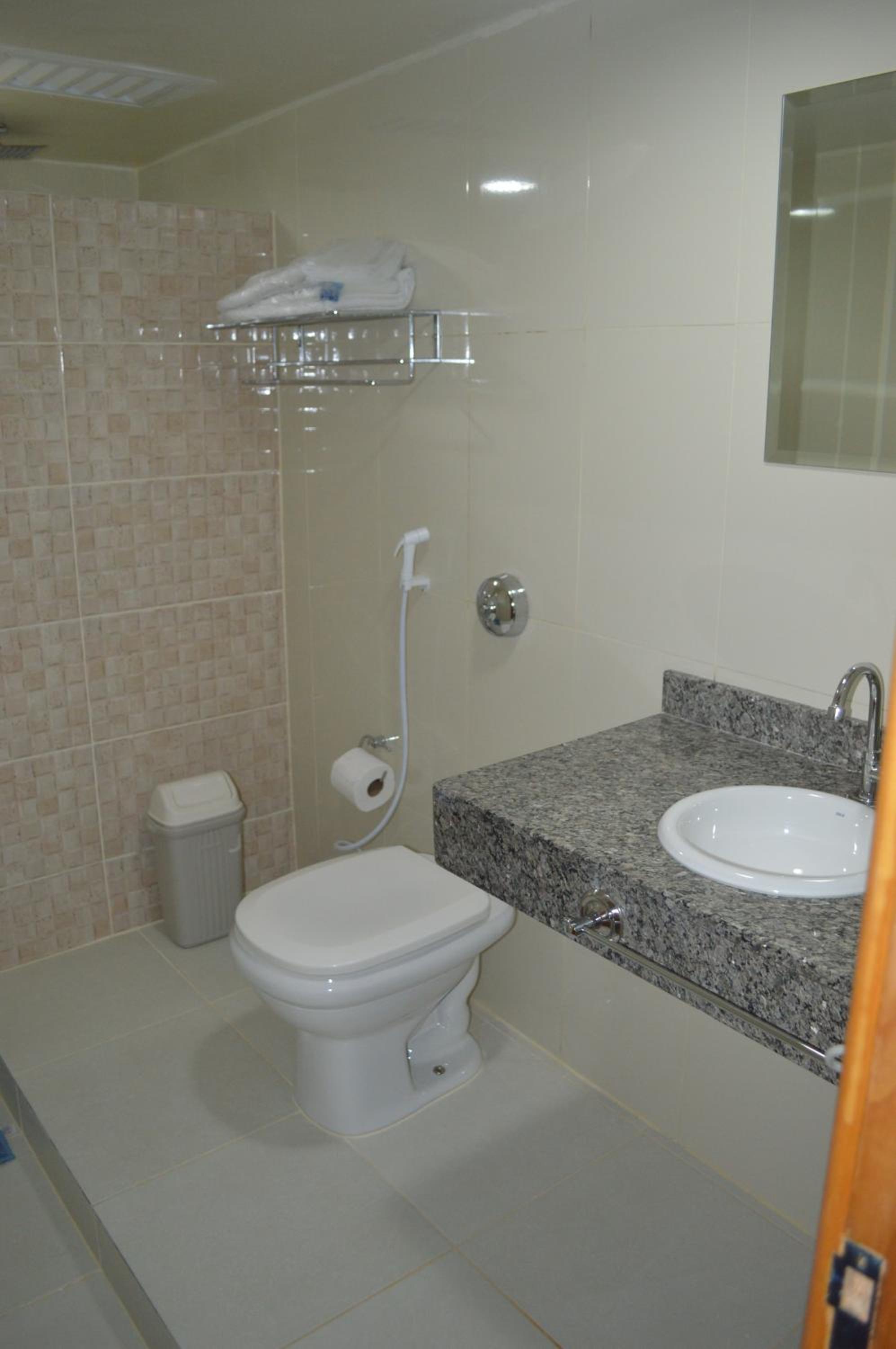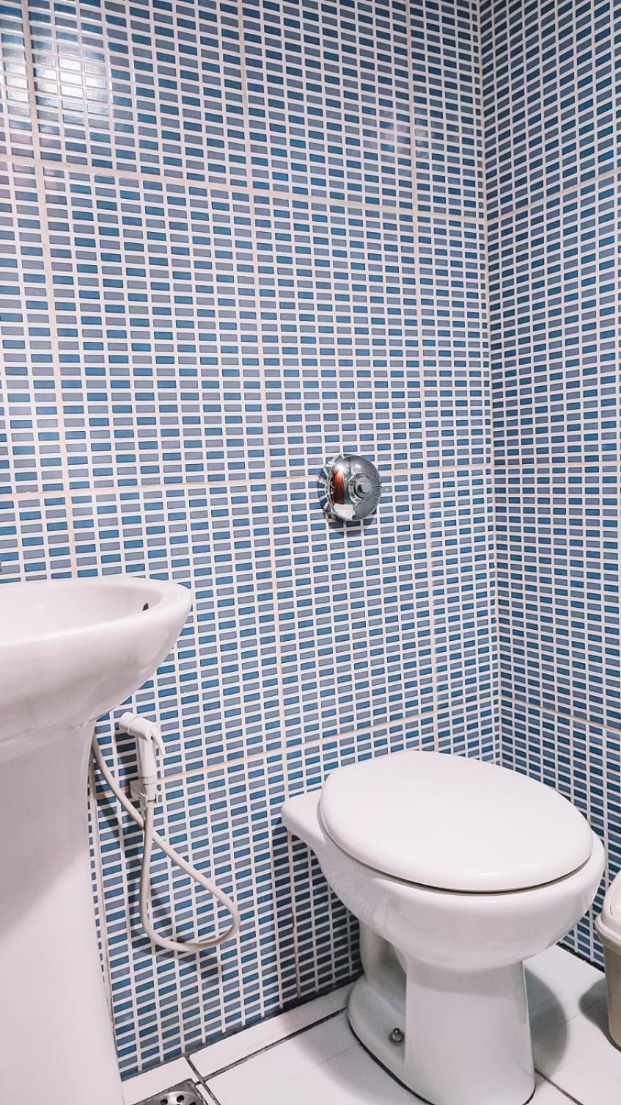 O banheiro muito pequeno onde o vaso fica bem perto do chuveiro por falta de espaço. Papel higiênico menos da metade do rolo. Quarto bem empoeirado. Travesseiros mais duros que tijolos.