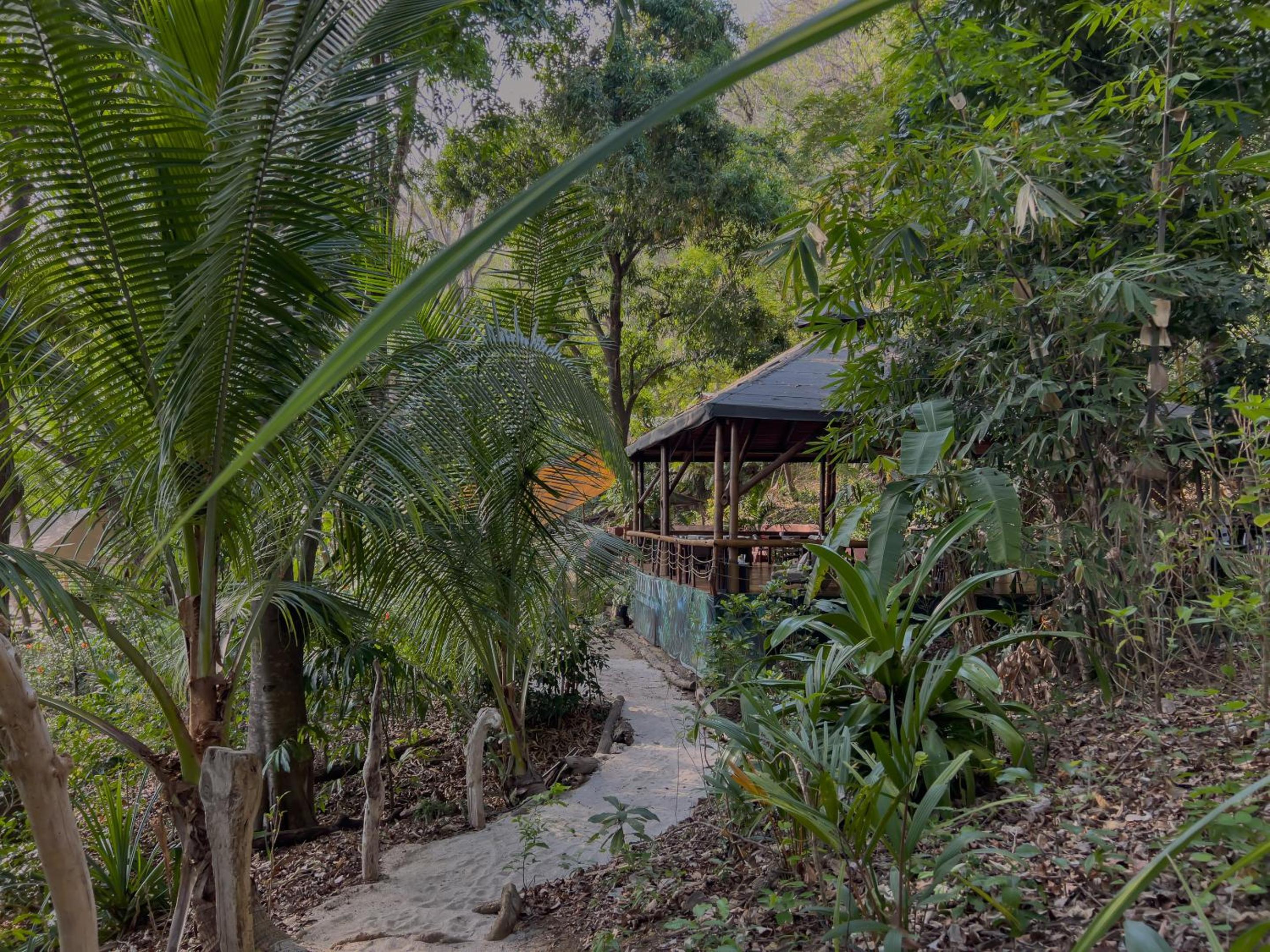 Der Bungalow war gemütlich mit einem sehr bequemen Bett, schöner Terrasse und einem gegen den Dschungel offenen Badezimmer - mit Blick in die Bäume.