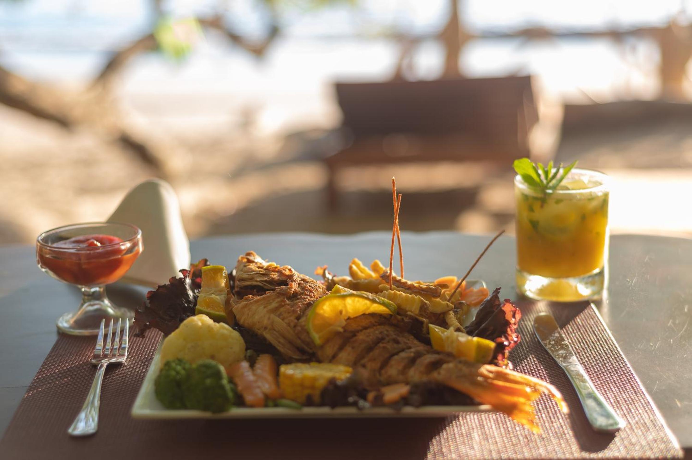 Beautiful beach, nice cabins, nice food and a Kids corner with toys