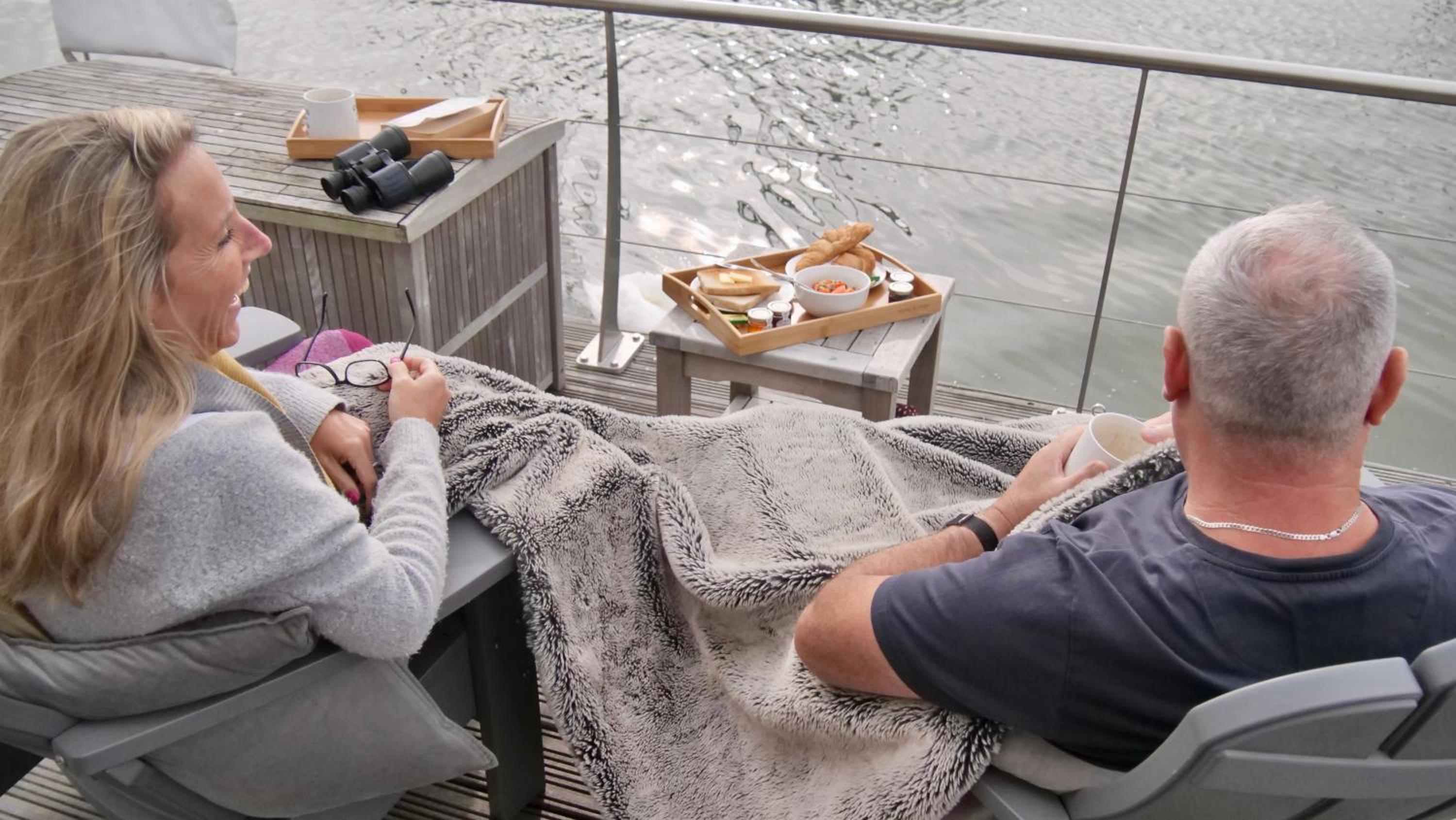 The setting was perfect for relaxation and reflection and the sun chairs comfortable to sit and watch the tide ebb and flow; snuggly blankets provided which allow you to sit and watch the marina views into the evening.