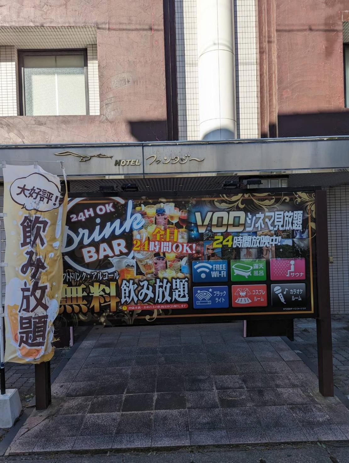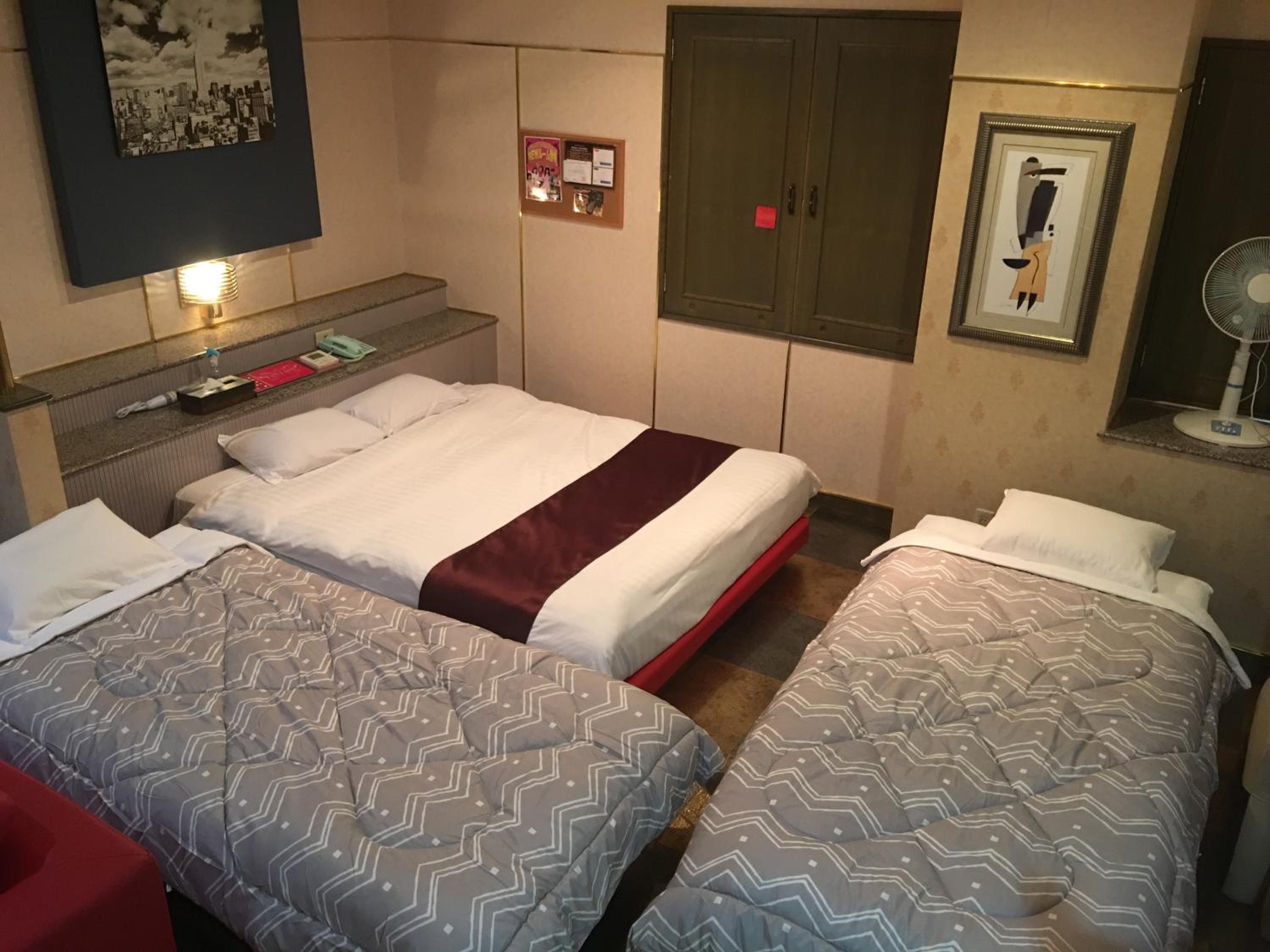 It's a love hotel. But incredible value for money. Don't be alarmed about it being primarily for sex. It's good all you can drink booze, karaoke and massage chairs in each room. It's a great place to stay with friends or as a couple.