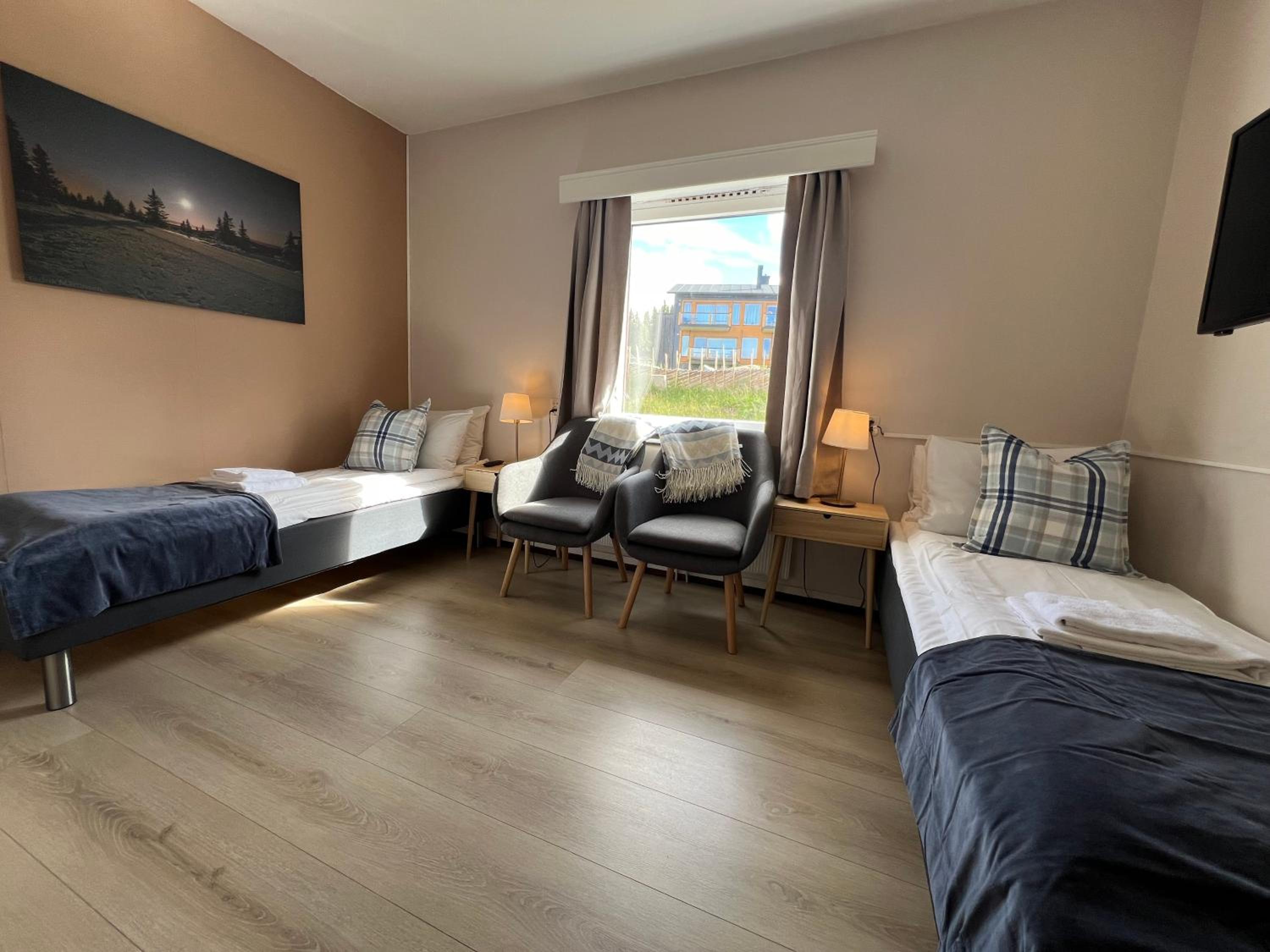 Enkelt men fullt tillräckligt boende om man vill ägna sig åt turskidåkning. Frukost och middagsbufferena var mycket bra.