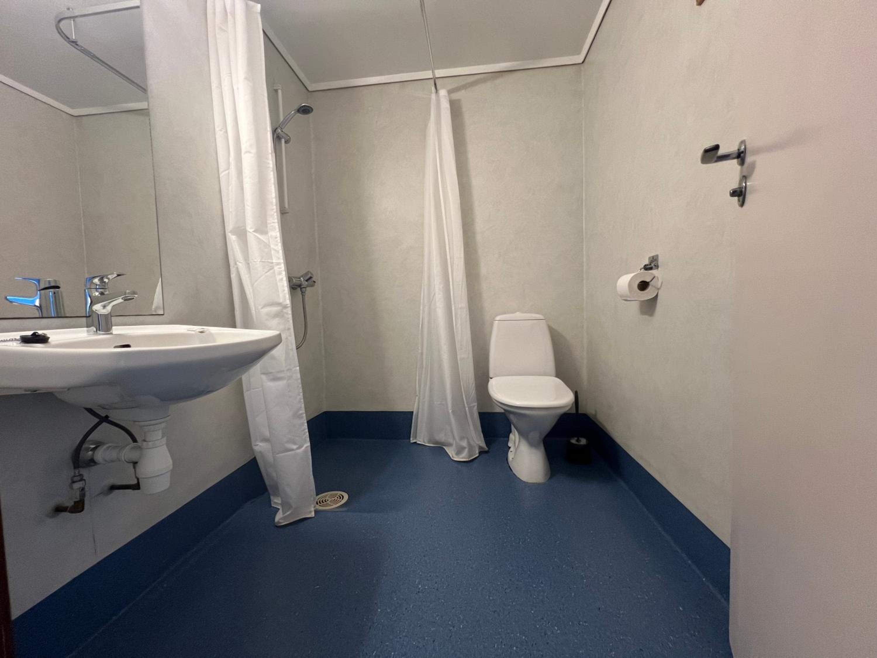 Bastun var inte uppvärmd alla dagar. Varmvattnet i det gemensamma duschutrymmet kunde haft lite högre temperatur.