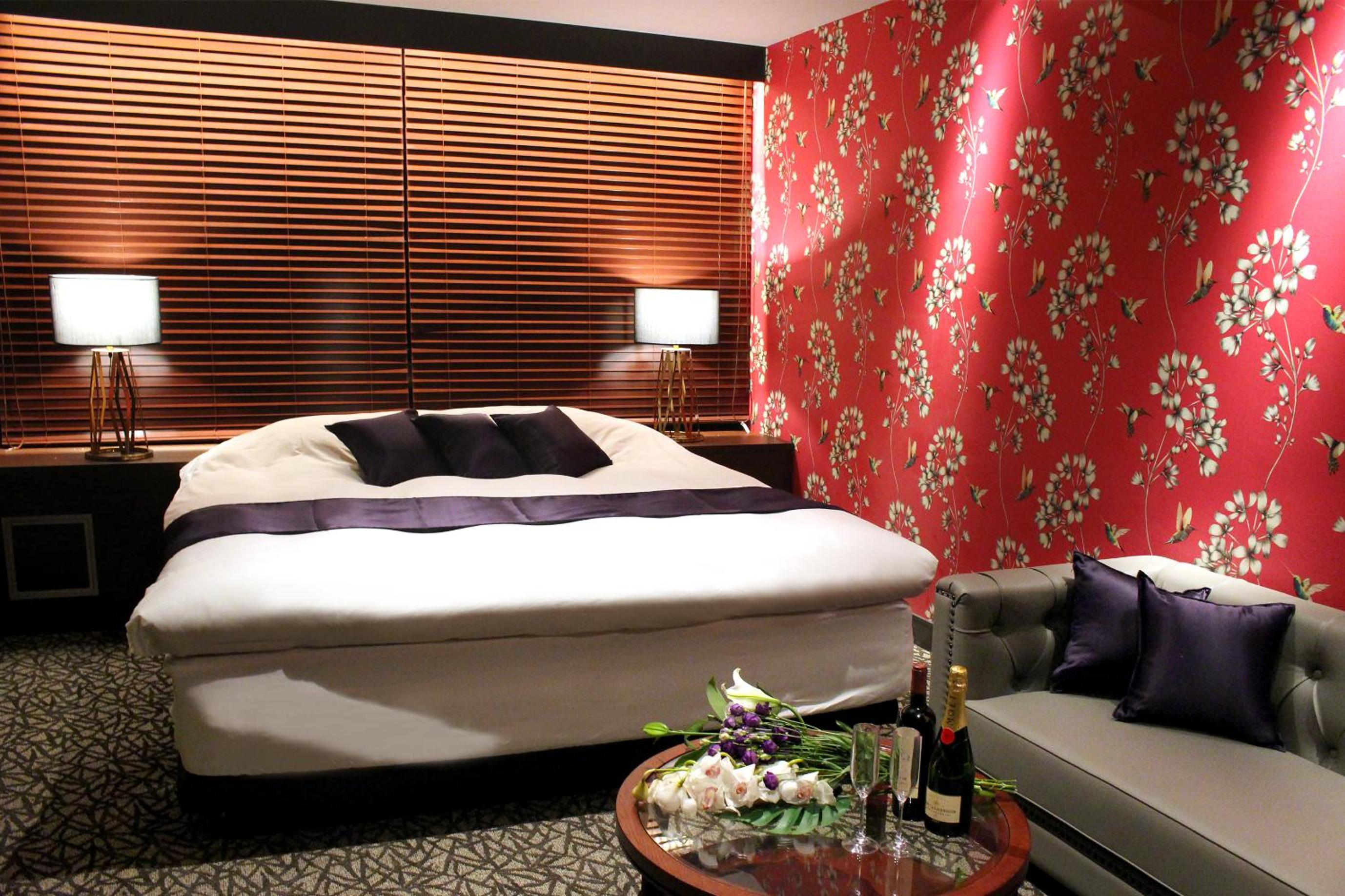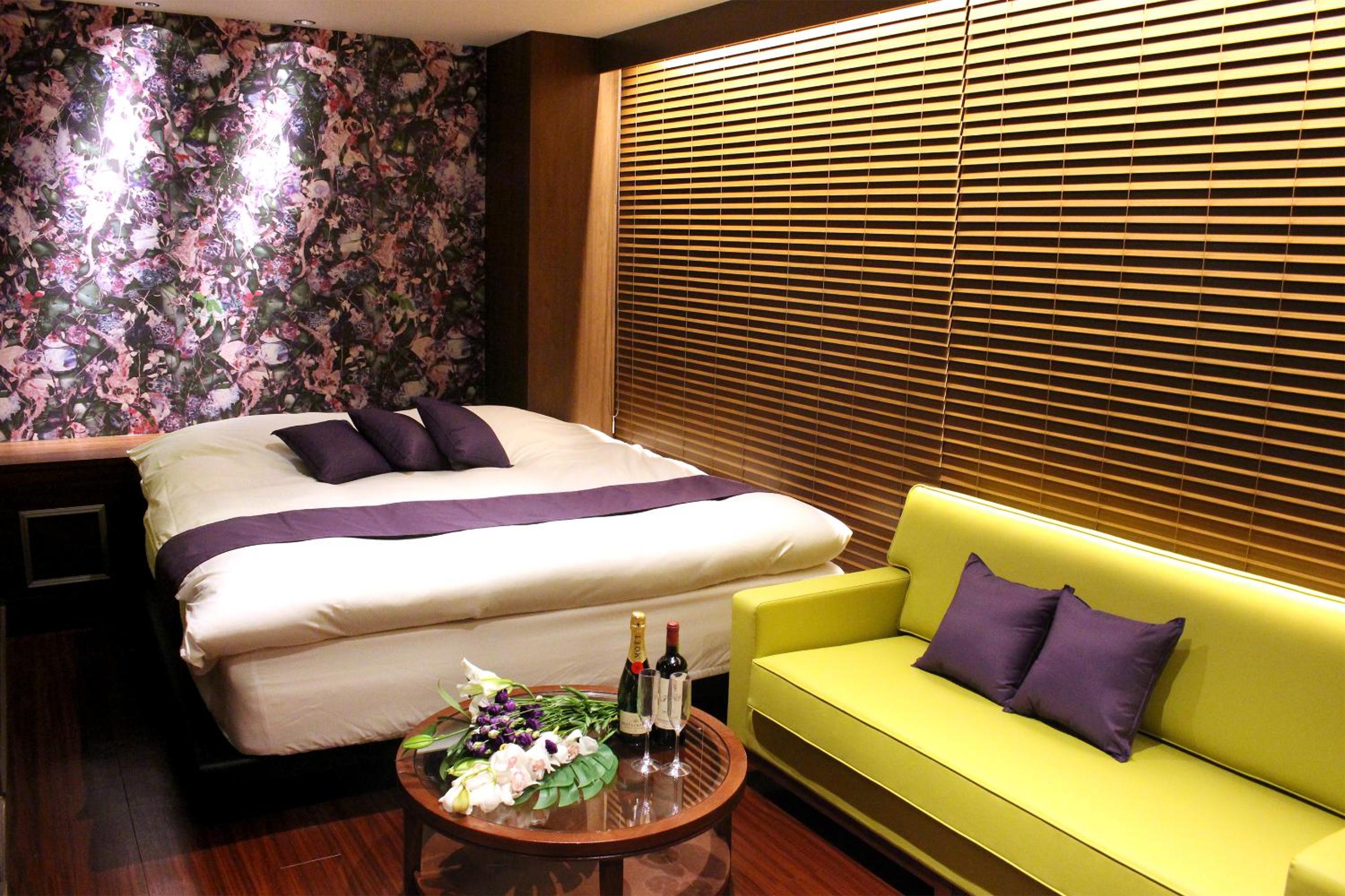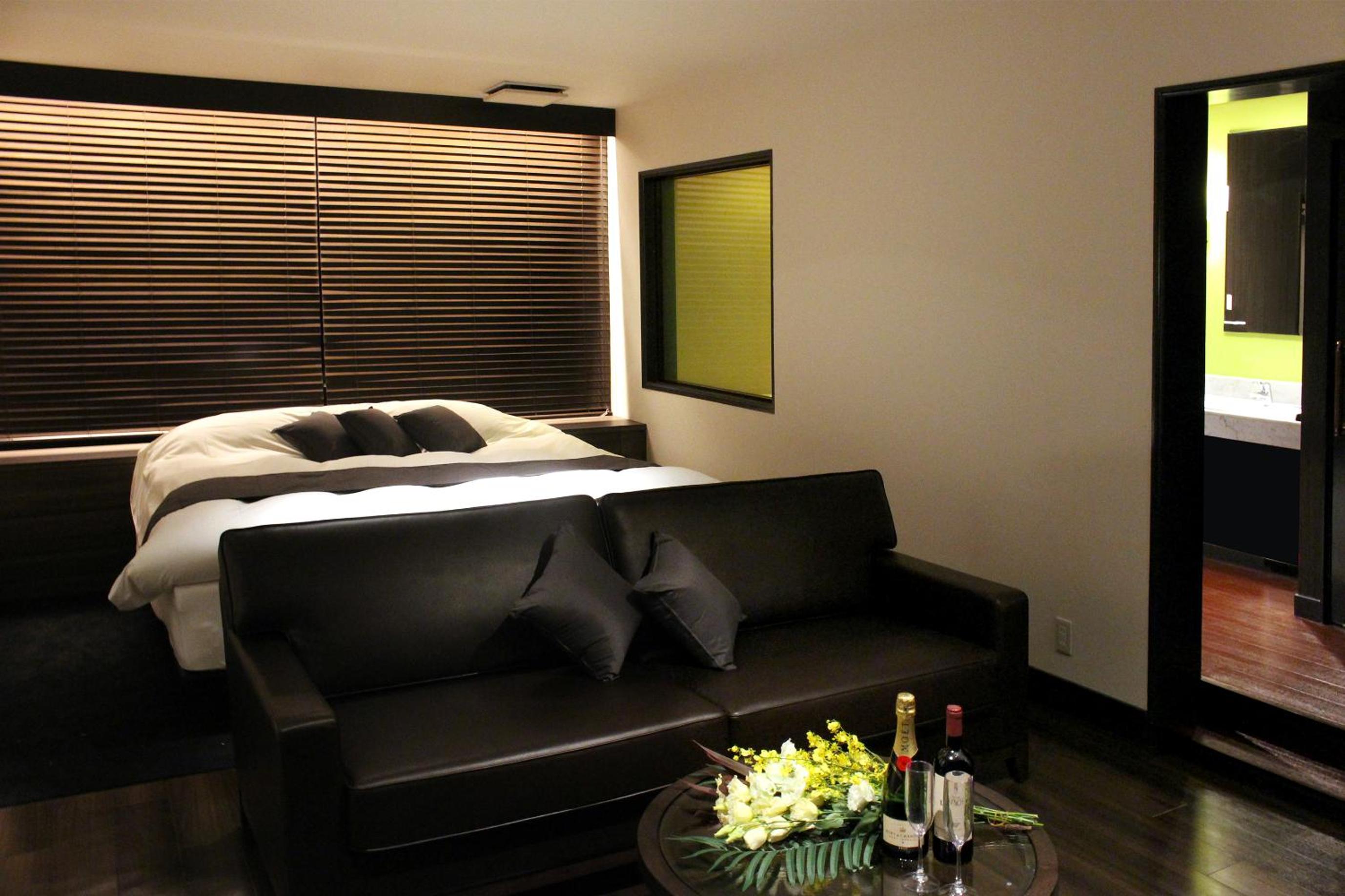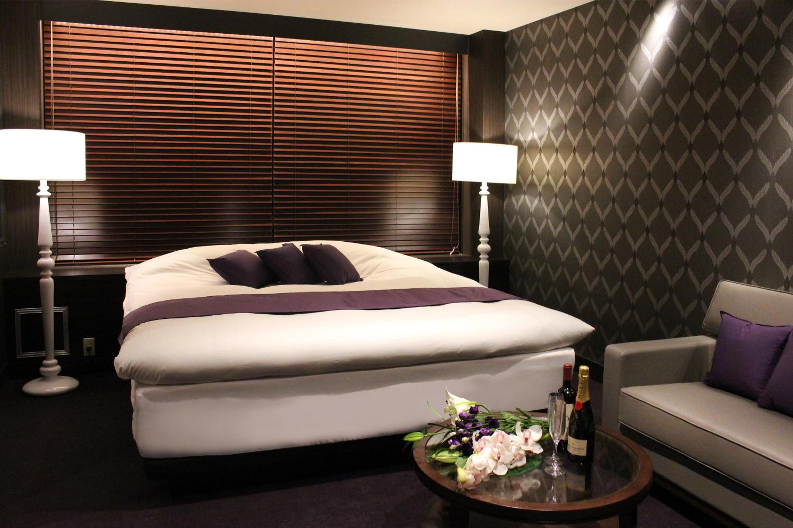 Luxurious Rooms with Stunning Views - Hotel LOVE MODERN, nestled near Kitakyushu Municipal Cultural Commemoration Park and Myoken-gu Shrine, offers beautifully appointed rooms with modern amenities including free WiFi and room service. Each room boasts a mountain view and is equipped with air conditioning, a fridge, and a microwave for your comfort.