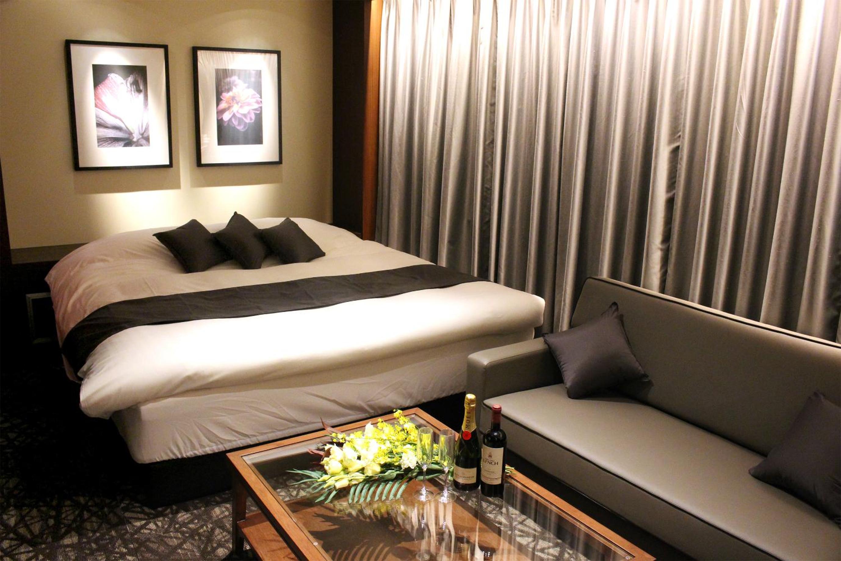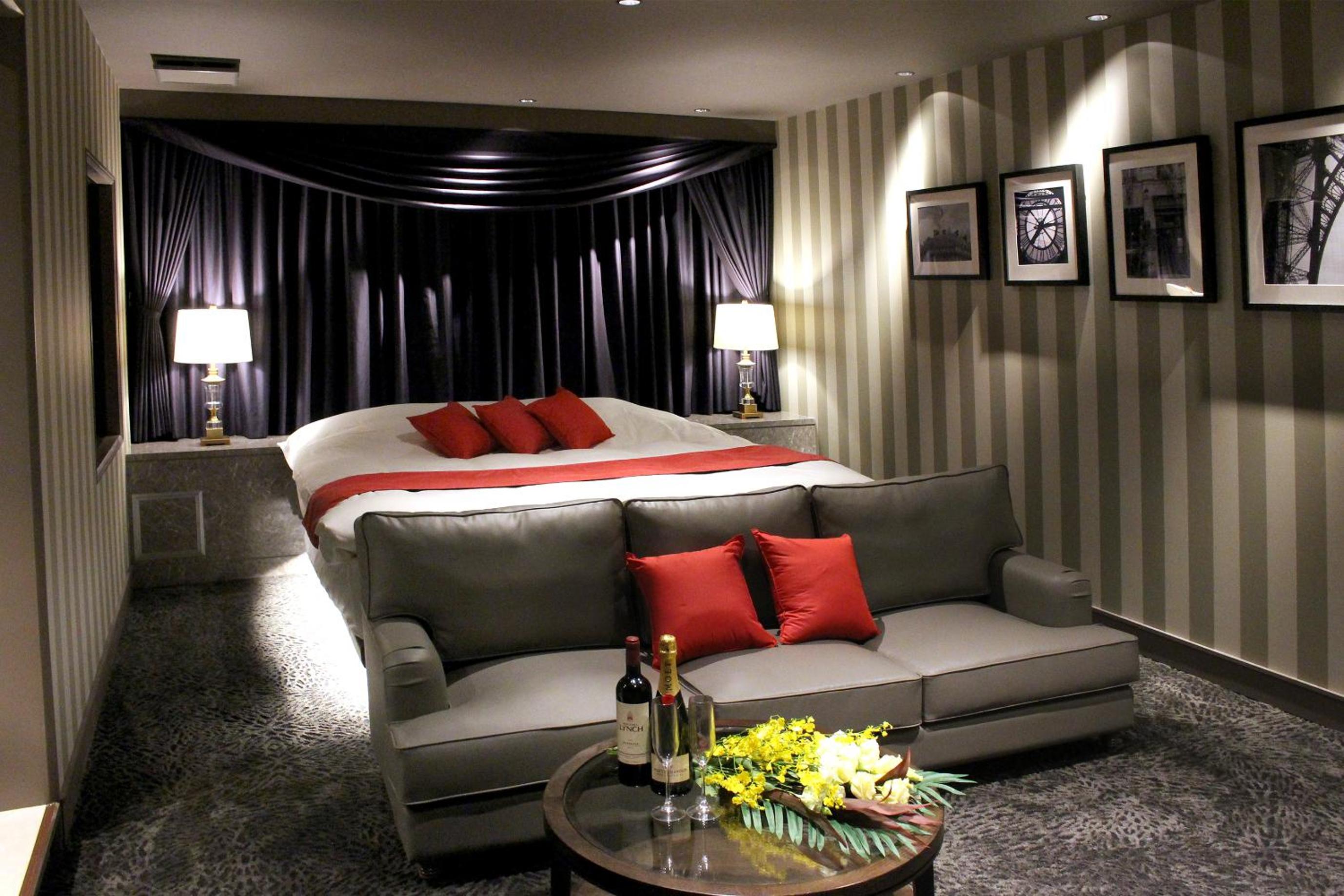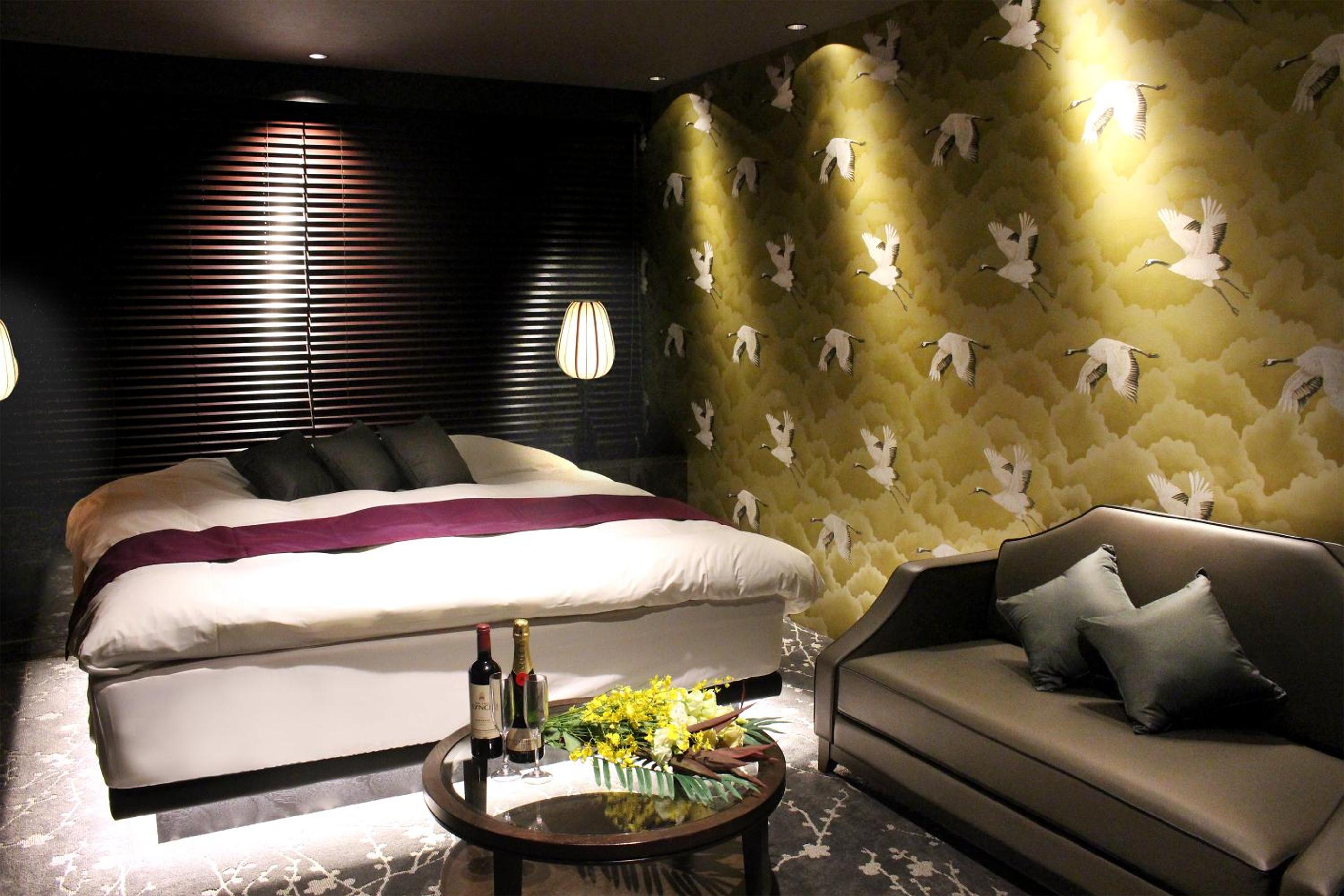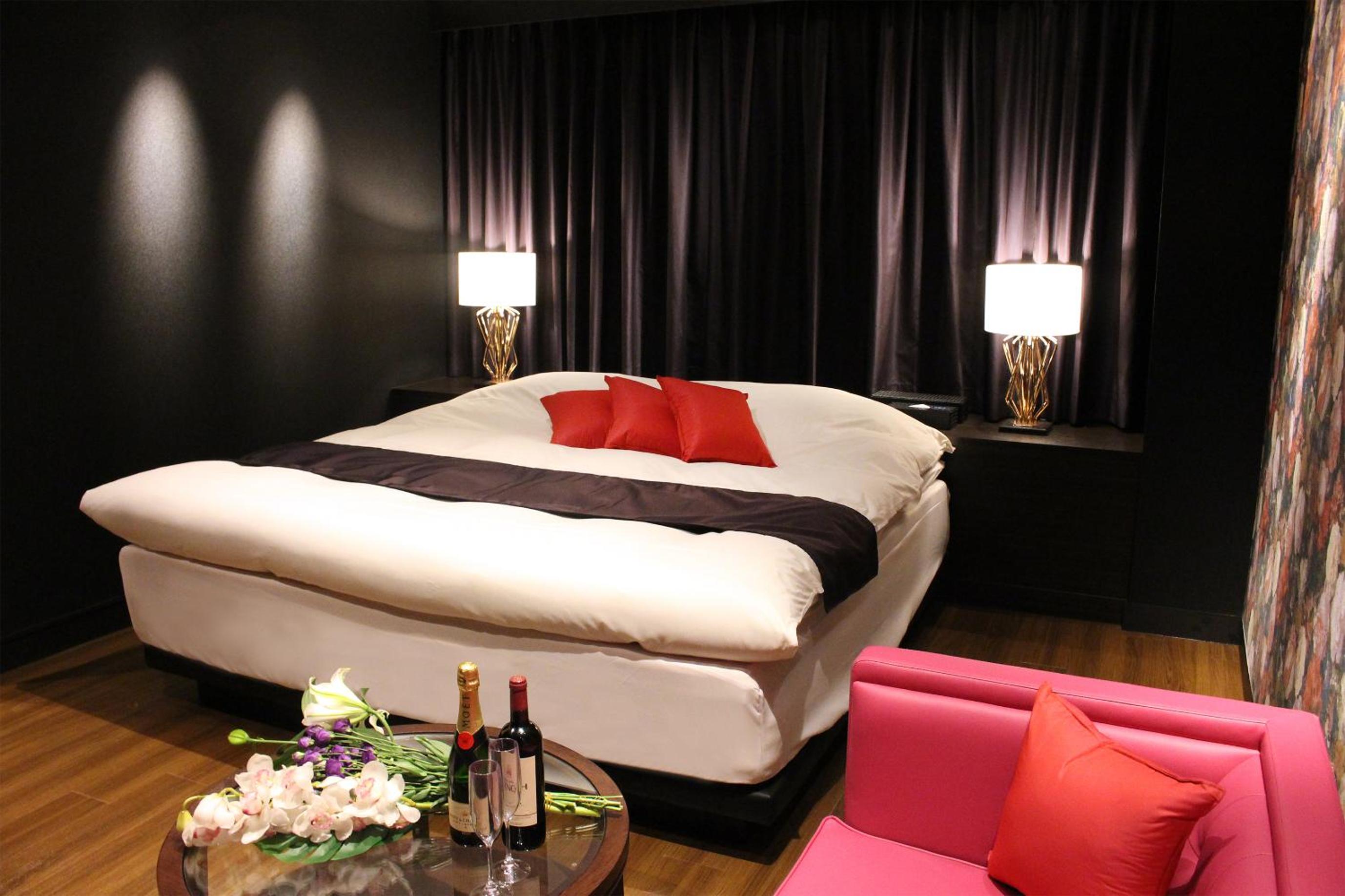 Luxurious Rooms with Stunning Views - Hotel LOVE MODERN, nestled near Kitakyushu Municipal Cultural Commemoration Park and Myoken-gu Shrine, offers beautifully appointed rooms with modern amenities including free WiFi and room service. Each room boasts a mountain view and is equipped with air conditioning, a fridge, and a microwave for your comfort.