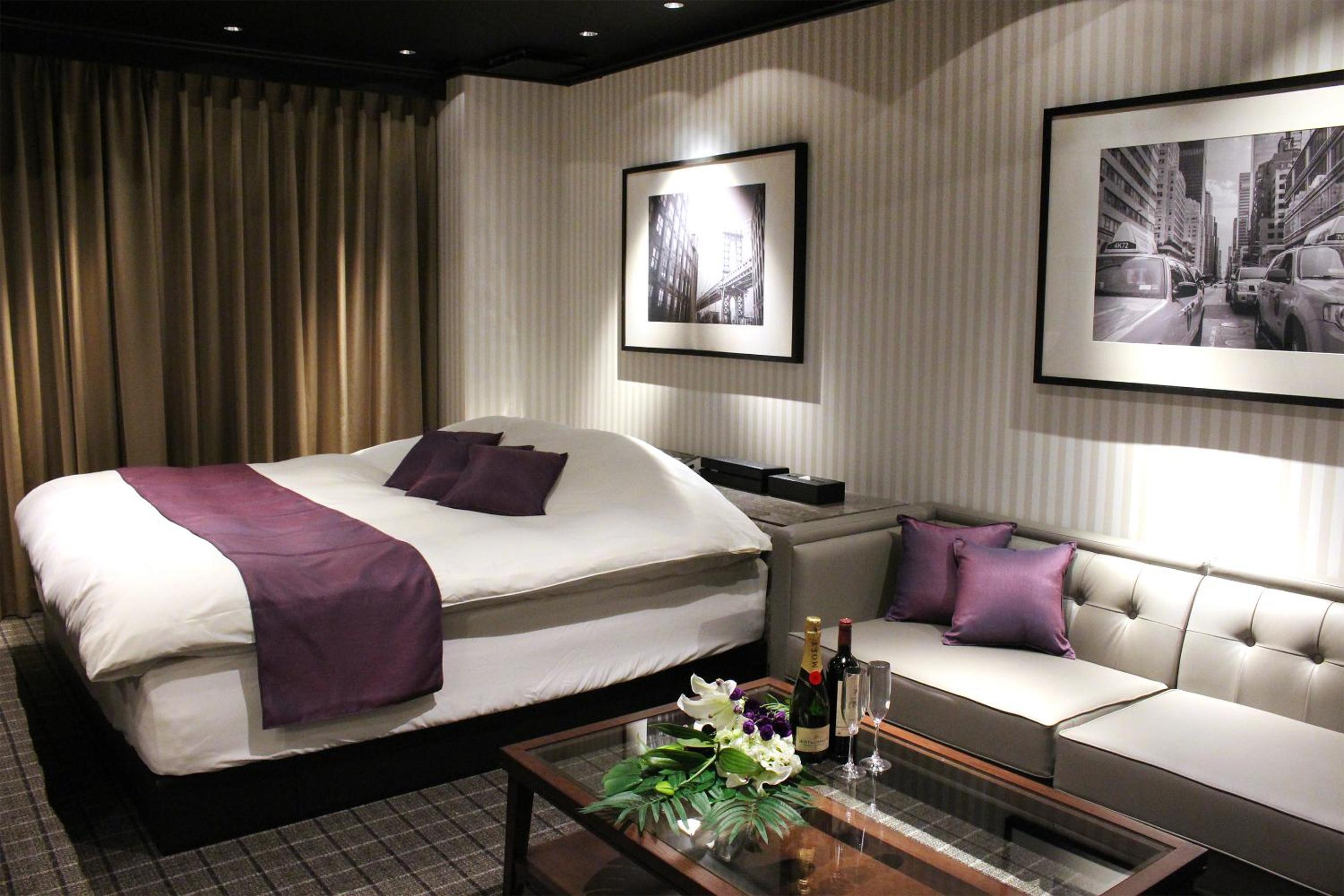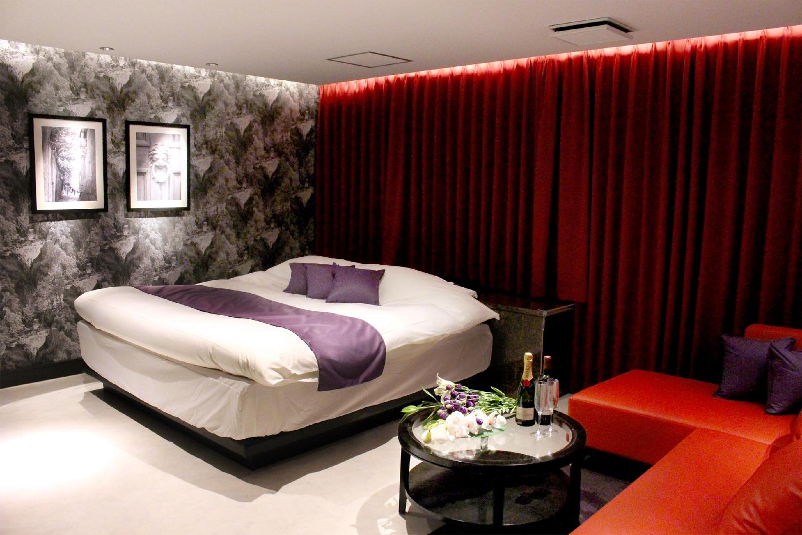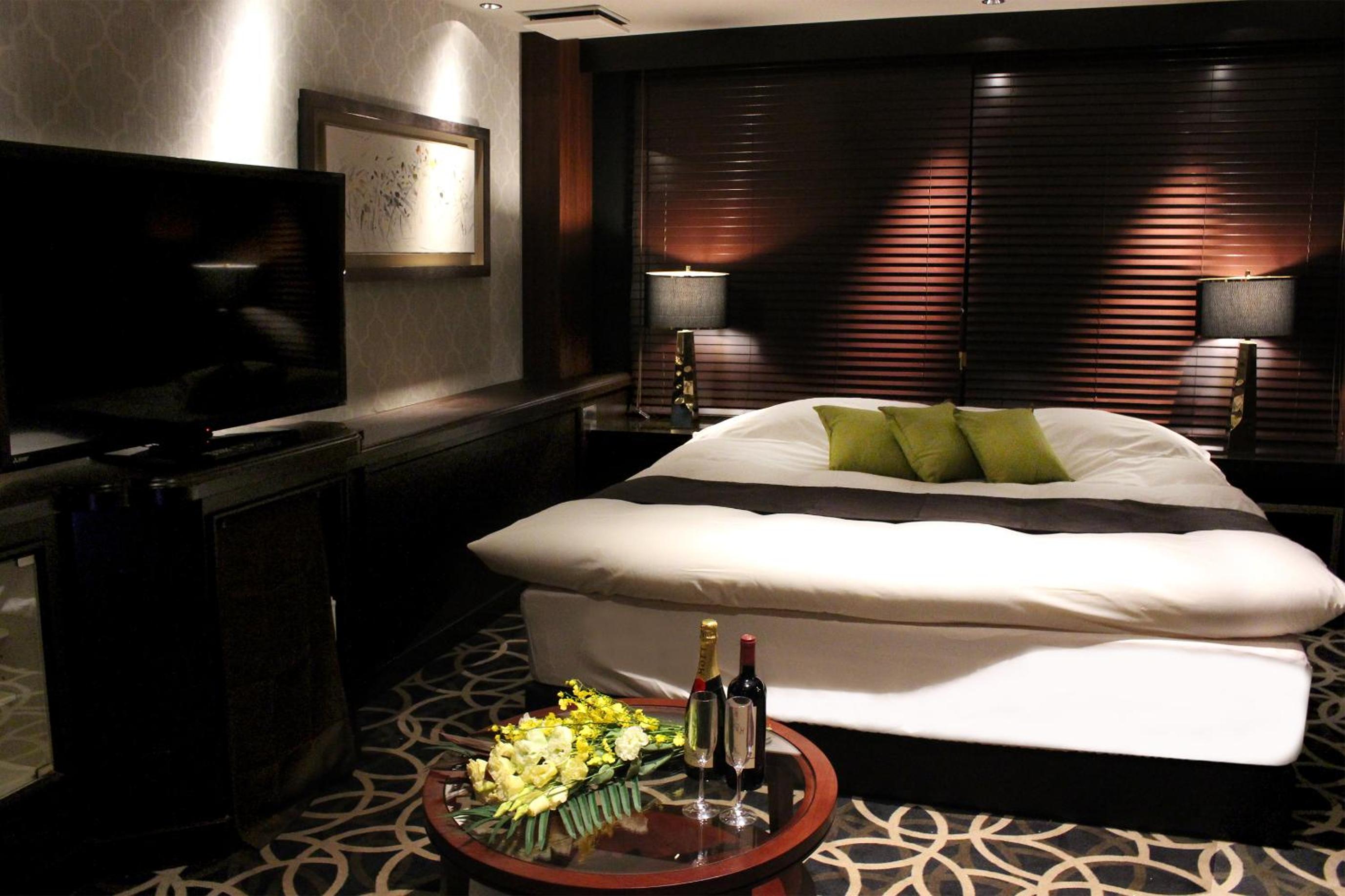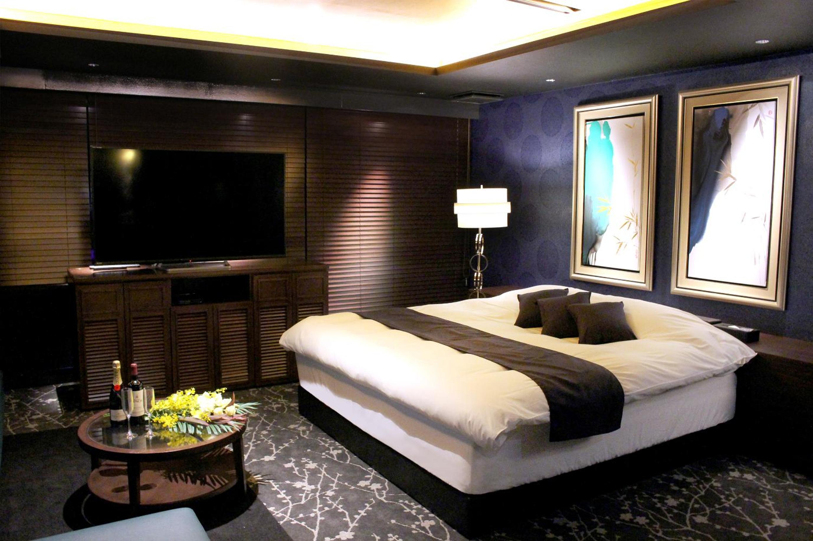 Luxurious Rooms with Stunning Views - Hotel LOVE MODERN, nestled near Kitakyushu Municipal Cultural Commemoration Park and Myoken-gu Shrine, offers beautifully appointed rooms with modern amenities including free WiFi and room service. Each room boasts a mountain view and is equipped with air conditioning, a fridge, and a microwave for your comfort.