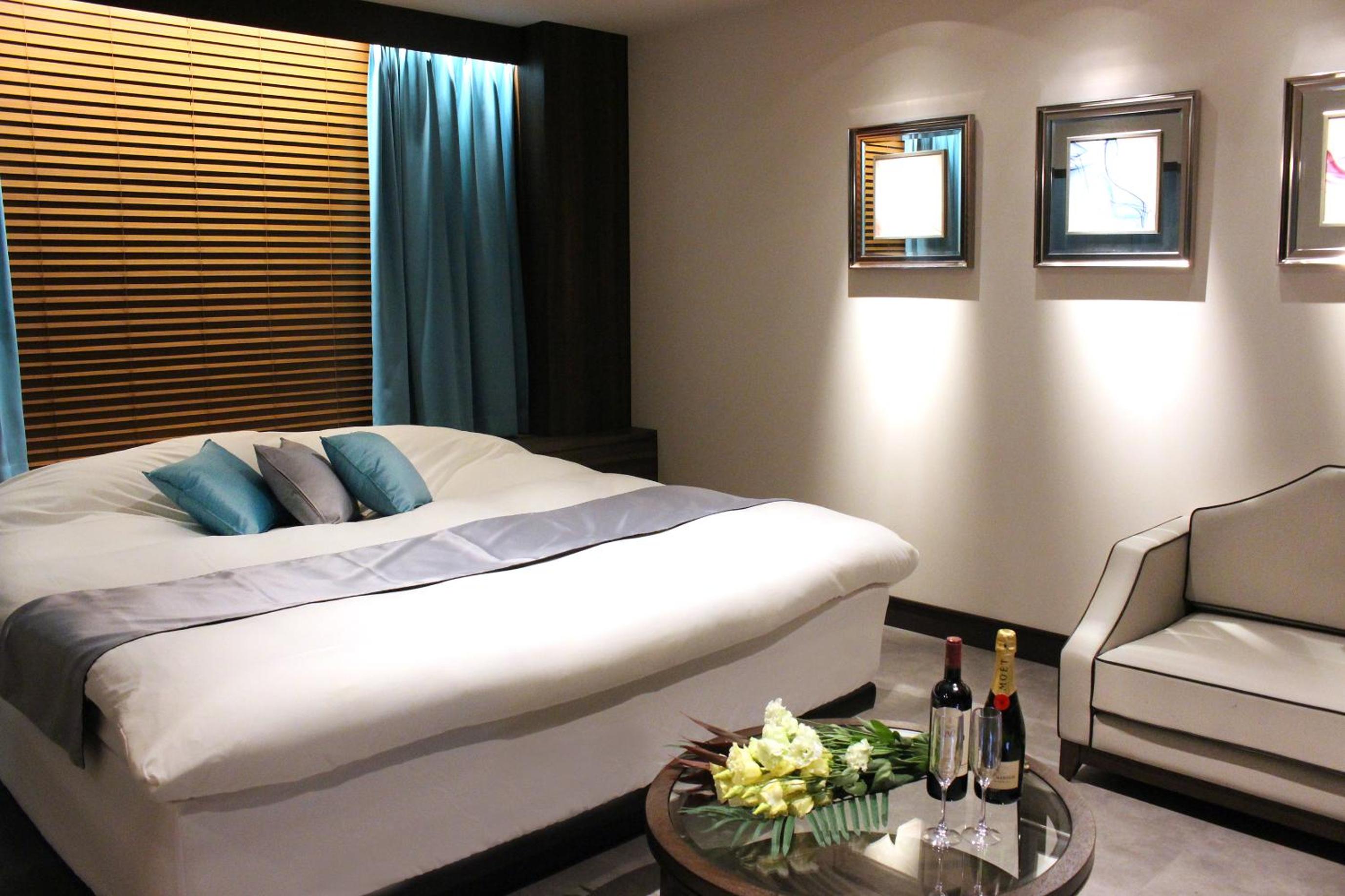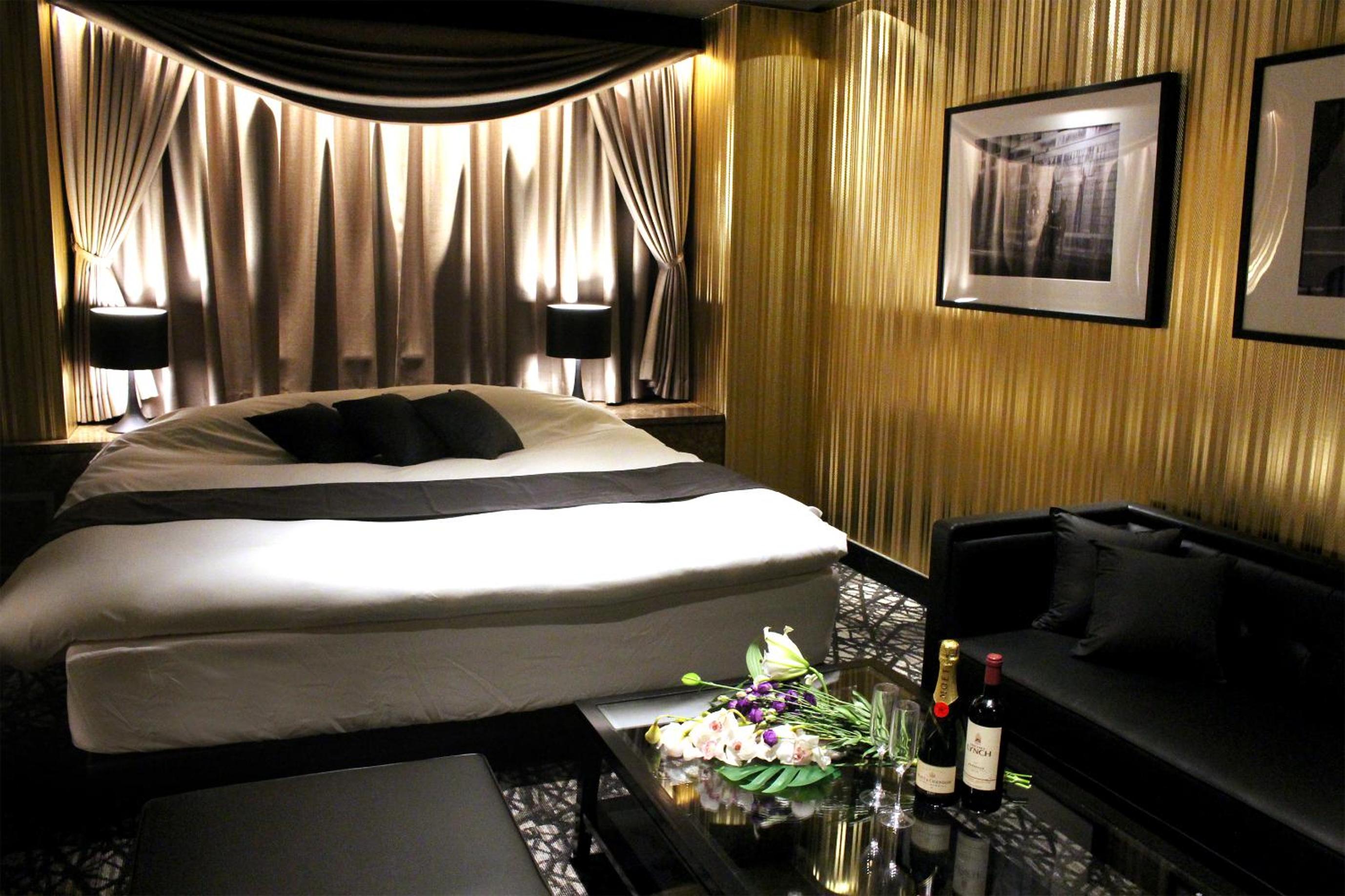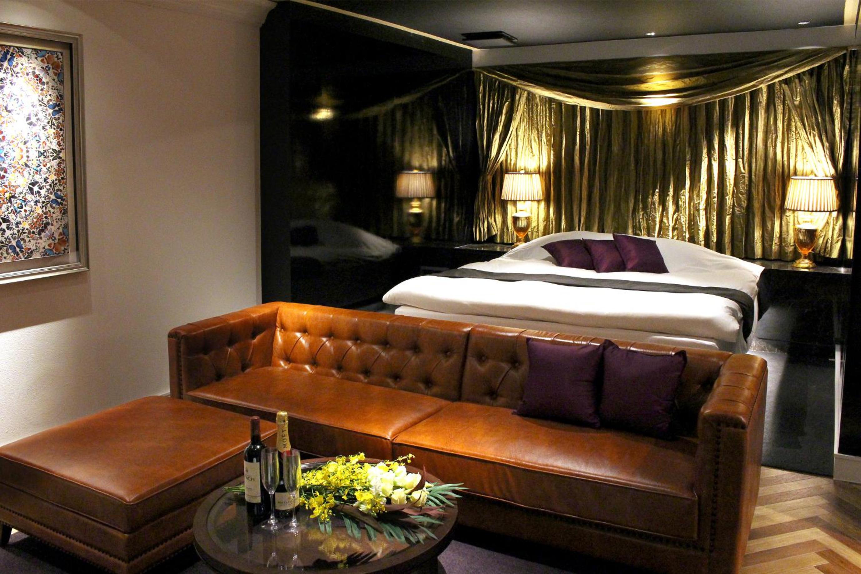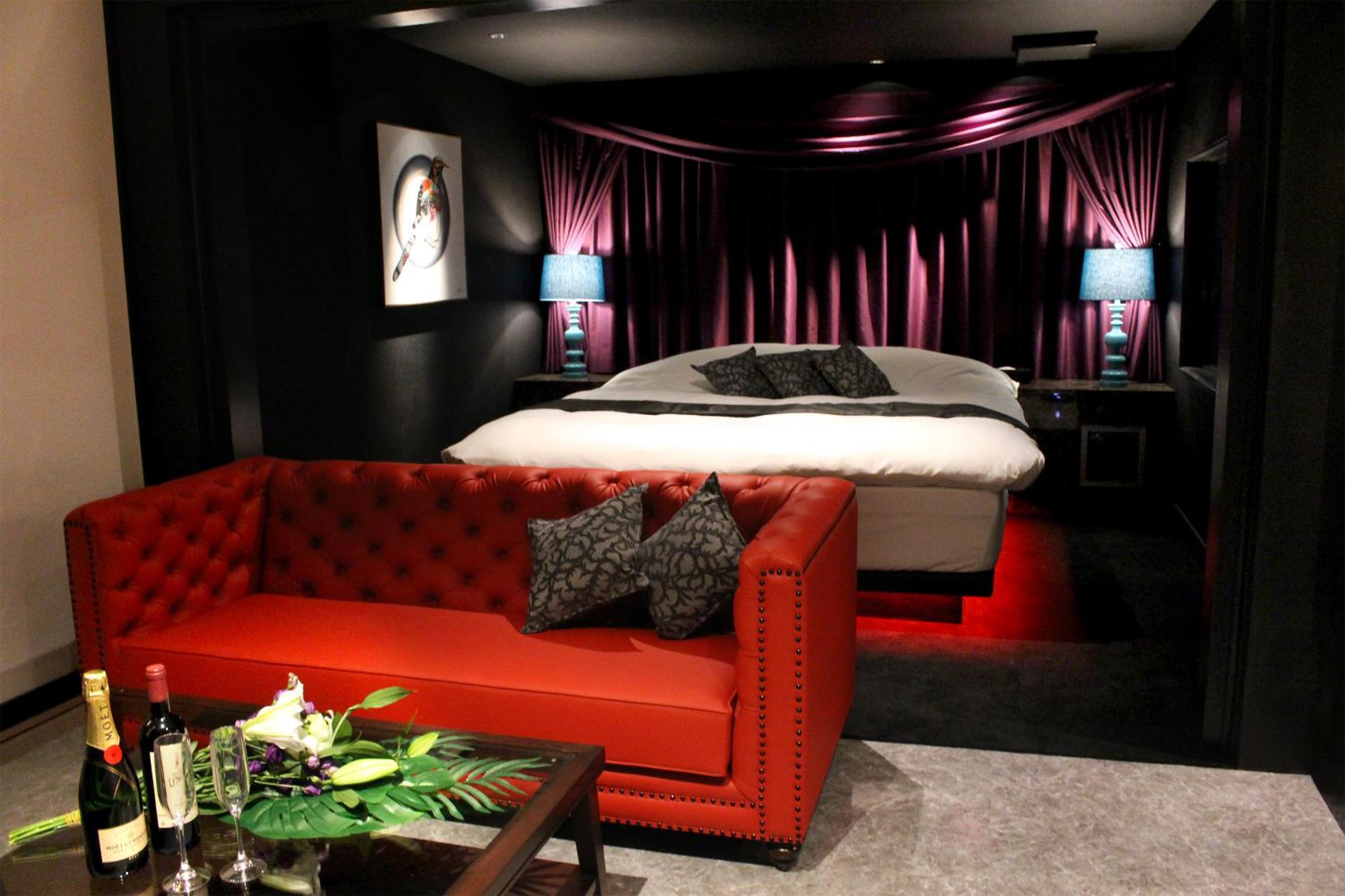 Luxurious Rooms with Stunning Views - Hotel LOVE MODERN, nestled near Kitakyushu Municipal Cultural Commemoration Park and Myoken-gu Shrine, offers beautifully appointed rooms with modern amenities including free WiFi and room service. Each room boasts a mountain view and is equipped with air conditioning, a fridge, and a microwave for your comfort.