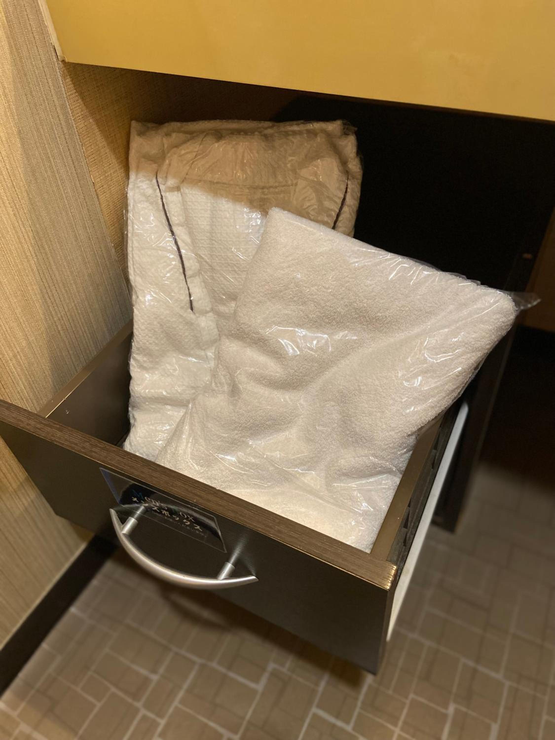 タオルや、バスローブの充実。サウナ。外出可能。洗面所の椅子。