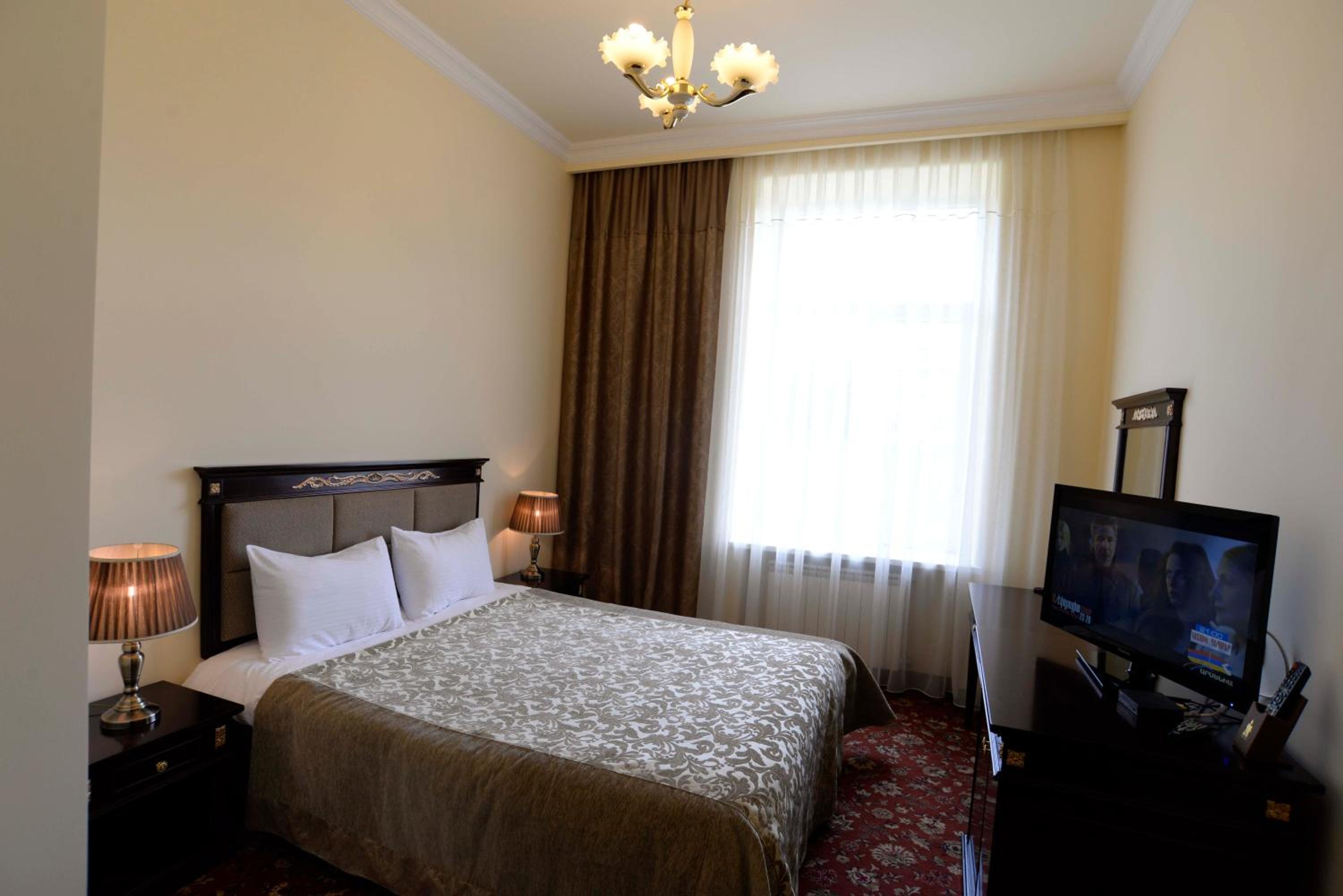 Из небольших минусов можно указать только отсутствие утренний зарядки на свежем воздухе и вечерней развлекательной программы. Поэтому продолжу писать в этом разделе о плюсах, т.к. Booking com ограничивает размер текста в каждом разделе отзыва. Во всех помещениях санатория идеальная чистота. Уборка номера и замена полотенец - каждый день, постельного белья - на третий день. Можно отдать в стирку свою одежду, отлично постирают и погладят в этот же день или на следующий день за очень небольшую цену. Шведский стол в ресторане на пять с плюсом. Каждый день в меню рыба (сиг или горбуша), нормальное мясо нескольких видов (не котлеты!), три вида супов, много свежих овощей и фруктов, хороший выбор десертов, очень вкусные компоты и чаи с травами. В санатории есть хорошая игровая комната с бильярдом, столом для настольного тенниса, настольными играми, все хорошего качества и входит в стоимость проживания. Хороший WI-FI. Бассейн - супер, большой, чистый с огромными панорамными окнами, но находится в другом санатории этого же собственника на расстоянии 800 м. Работает бассейн каждый день с 10-00 до 20-00 (пон. - с 17-00), посещение для всех отдыхающих безлимитное. "Олимпия" ведет строительство собственного бассейна. Санаторий расположен в центральной части Джермука, до бювета и пруда идти 5 минут по красивому парку. И еще несколько слов о самом городе Джермук. Это курортный городок, который получил свое развитие в советские времена. В 90-е годы прошлого века и в нулевые годы этого столетия был в упадке, но сейчас активно возрождается. Отреставрированы многие санатории и построены новые санатории и отели. Центральная часть города с прудом приведена в идеальное состояние. Очень красивый бювет, минеральная вода вкусная без привкуса сероводорода, состав воды похож на воду в Карловых Варах. Хорошо оборудован терренкур, который ведет мимо красивейших скал к прекрасному водопаду! Это очень уютный город в горах, в который хочется обязательно вернуться!