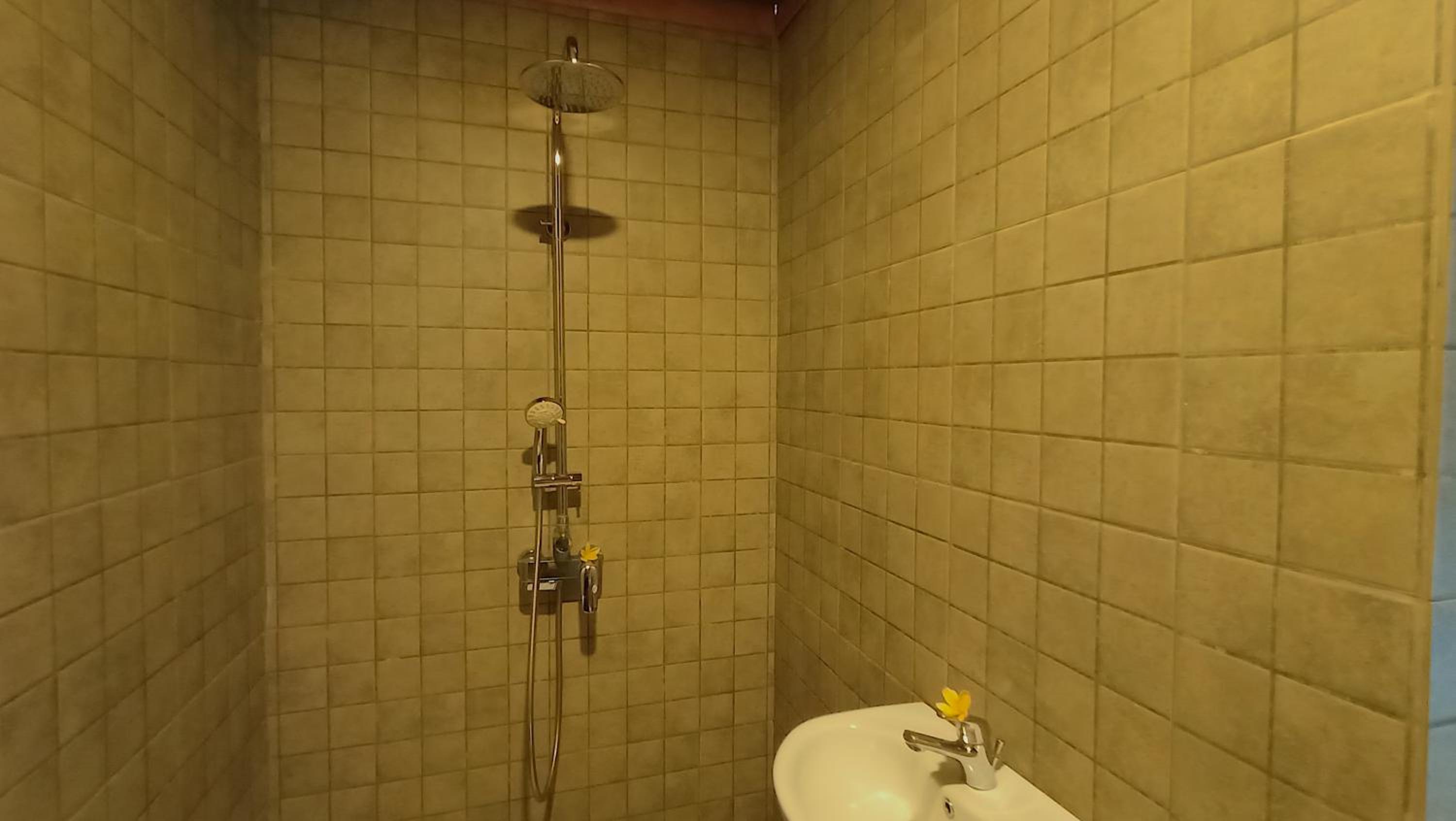 Air panas tidak stabil. Banyak serangga, karena ruang tengah terbuka. Kolam renang berbayar tidak incl. Harga kamar