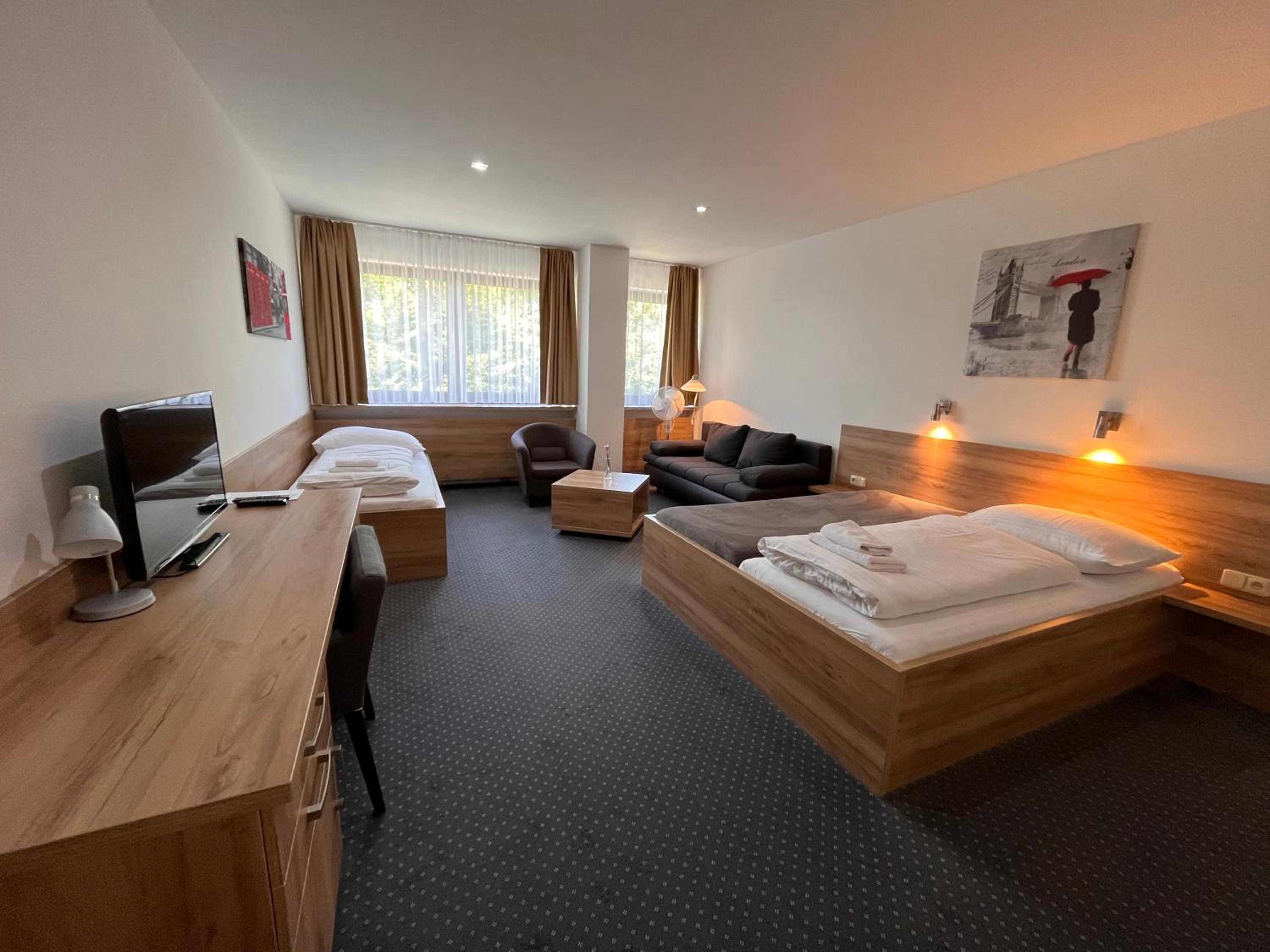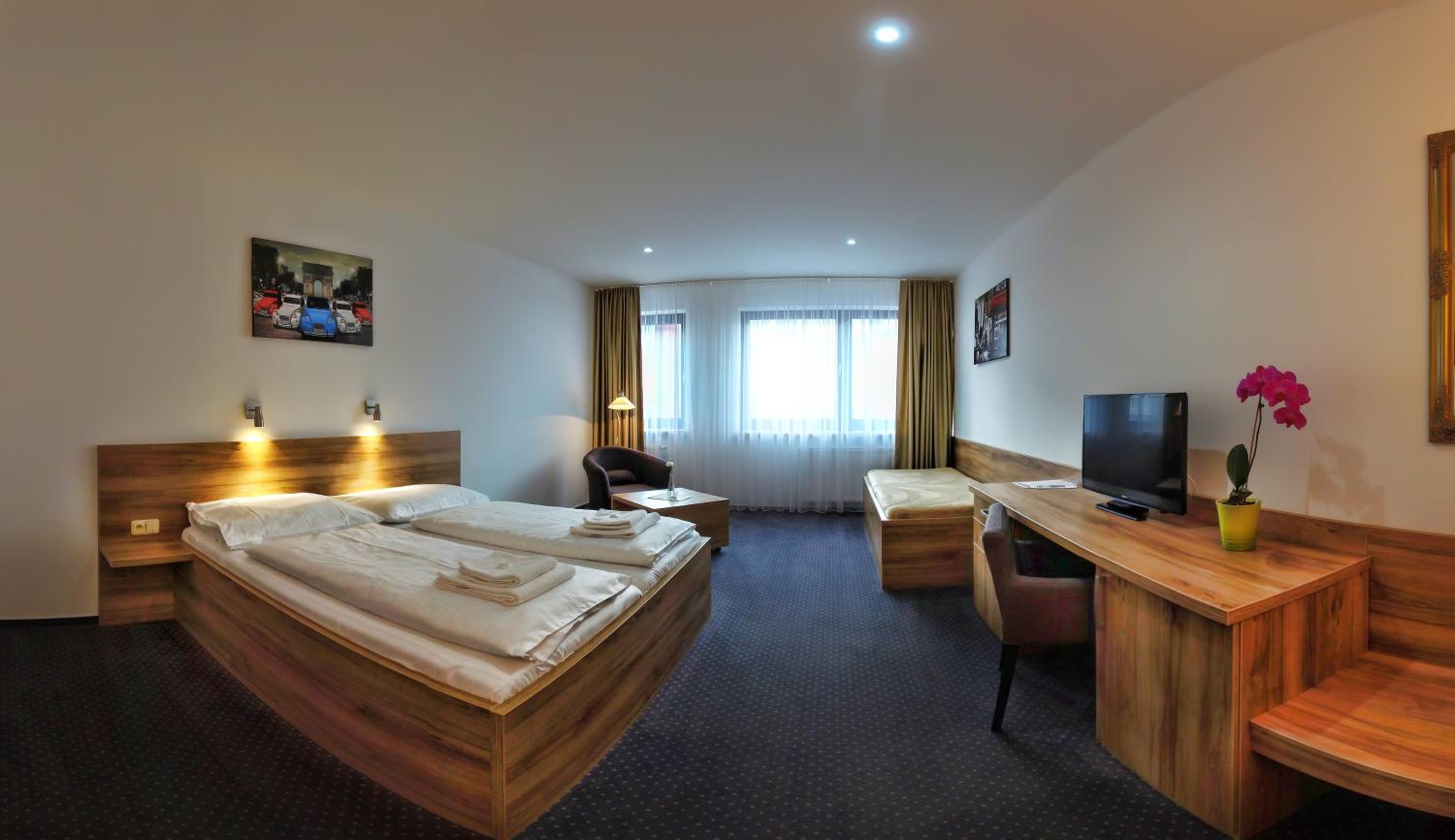 Matrace super nebolí z nich záda. Velký prostor pokoje. Snídaně skvělé. Závěsy jsou zatemňovací.