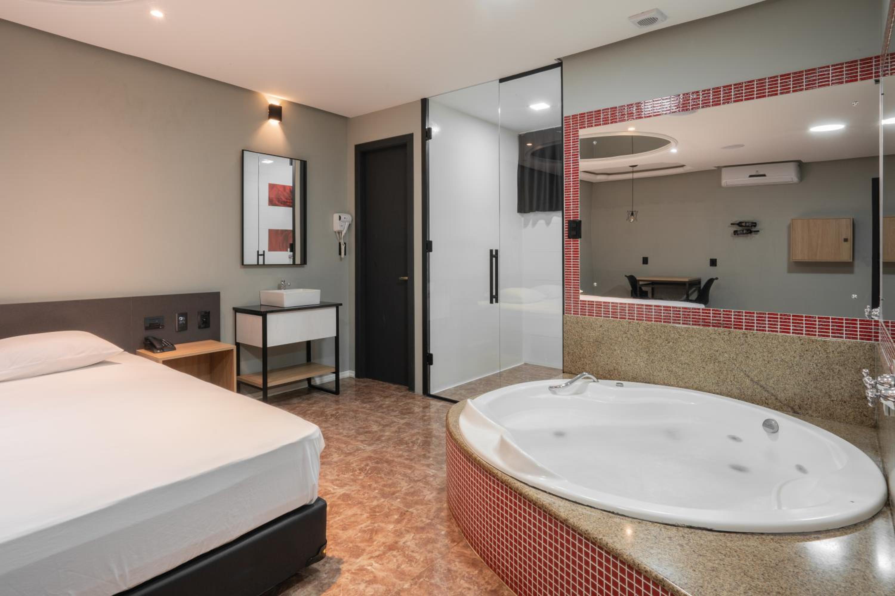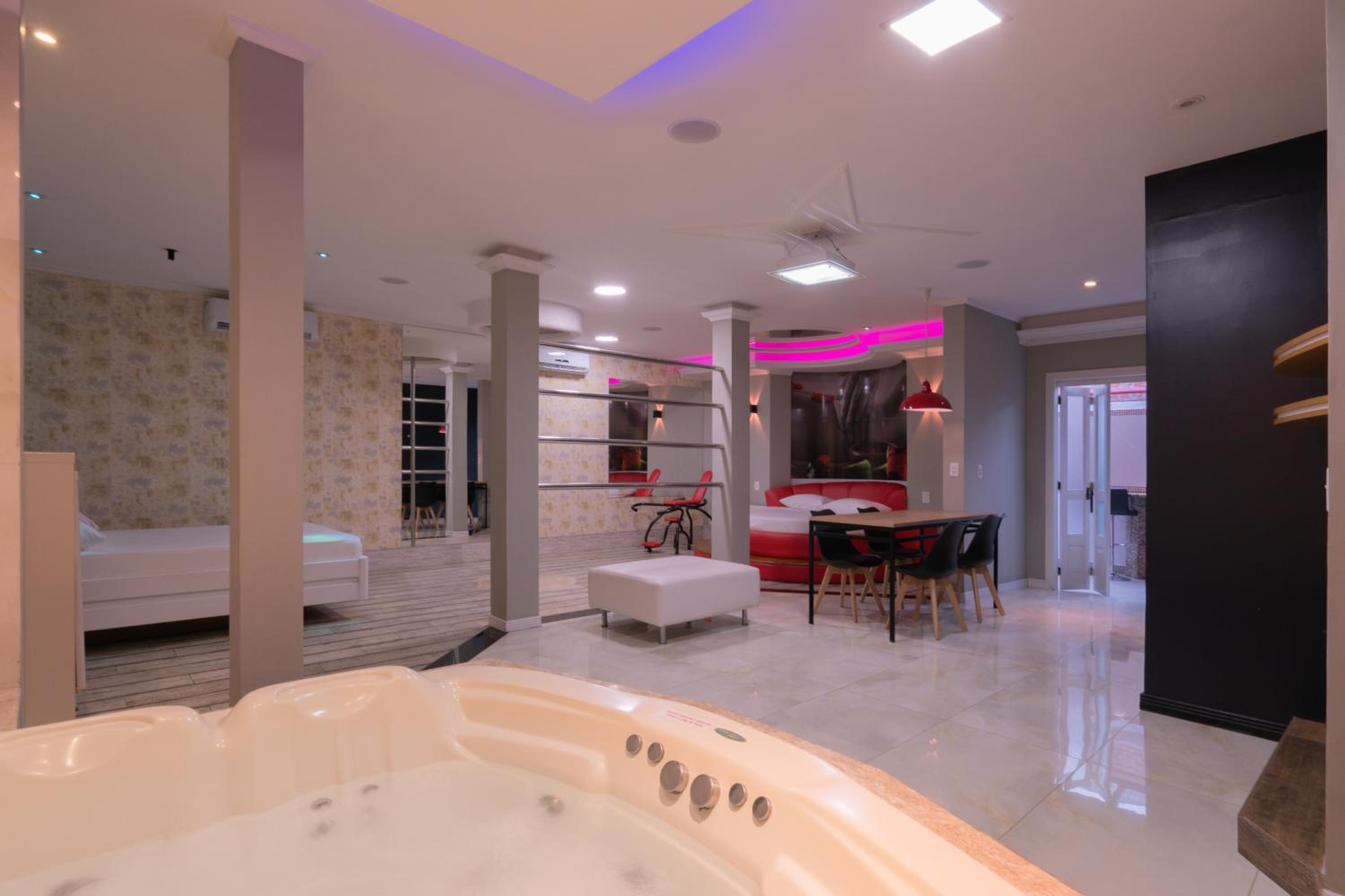 Drops Vale dos Sinos, nestled in Ararica, offers a luxurious stay just a short distance from key attractions. The love hotel boasts a hot tub, room service, and complimentary WiFi, ensuring a comfortable and convenient experience for guests.